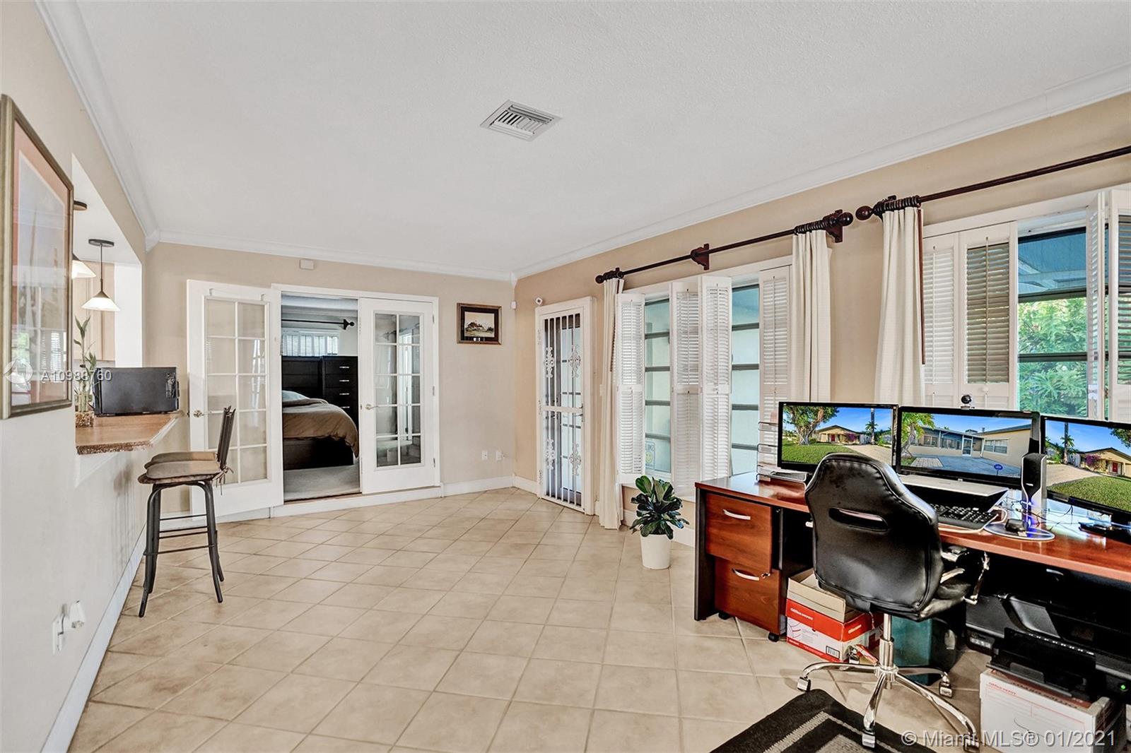 Move in ready! Owner Motivated! Welcome to PRIME EAST HOLLYWOOD, with this tastefully renovated home in the heart of Hollywood Lakes. This 2bed (easily converted back to a 3 bed) with a den, 2 bath, 2 car garage features newer roof, AC, 40 gal water heater, hurricane shutters, Florida room, and fenced in yard. 3 large closets could easily be converted to a bedroom, and the 2 car garage into additional beds for a total of 5-6 bedrooms. The backyard and patio (29' x 49') can fit your pool. Features a rear alley with separate access to a private door - perfect for an AirBnB. Minutes away from Hollywood Beach and Boardwalk, shopping, dining, and supporting areas, with Aventura Mall, Gulfstream, and two international airports and 2 two cruise ports close by.