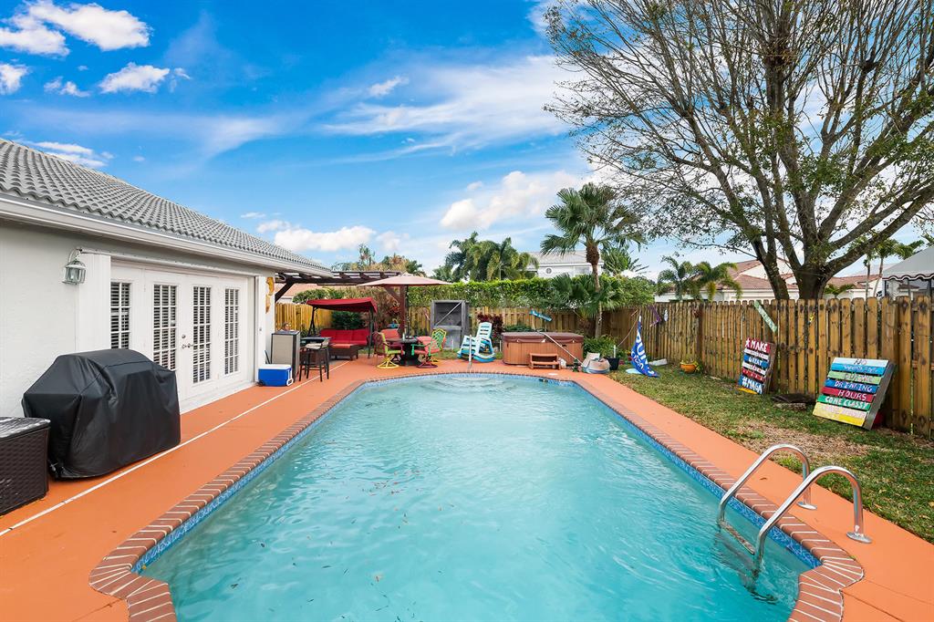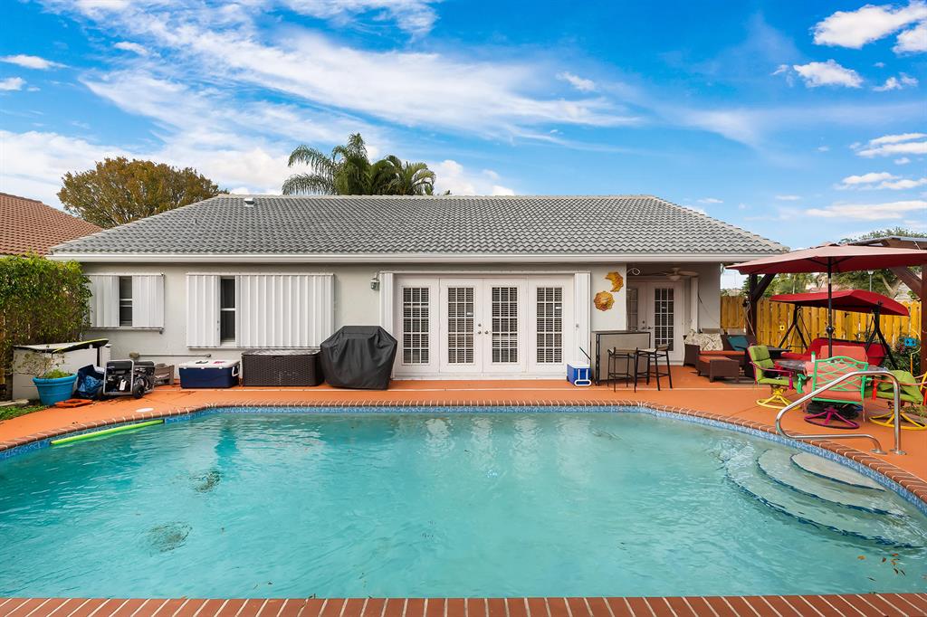 Take advantage of this rare opportunity to own an updated home in the lovely community of Lakeside Green. This 3-bedroom 2-bath CBS home with a pool has a brand-new roof and AC. It's hurricane proof features include accordion shutters, and a hurricane garage door. Check the attached list of upgrades and improvements the current owners have made over the years. The spacious living room and the dining room open to the pool and backyard through French doors. A new fence provides privacy and security around the backyard pool and hot tub. Small HOA fee, but tons of amenities: tennis, racquetball, community pool, playground, clubhouse, fitness room, billiards, etc. Live the suburb lifestyle while remaining within easy commute of great shopping areas, fine dining and many entertainment options.