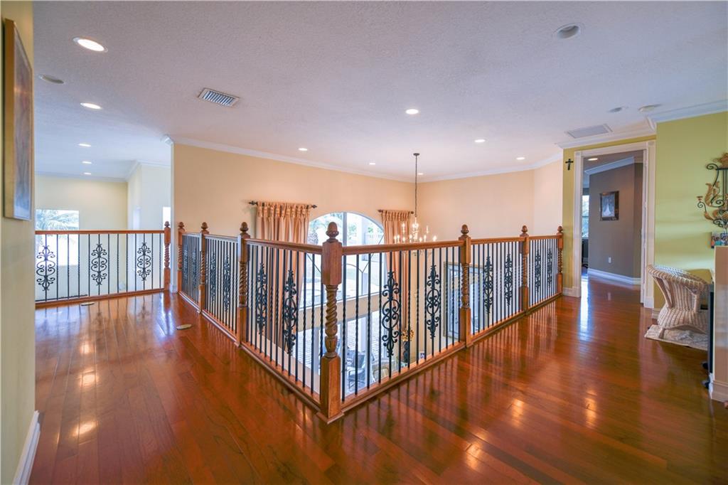 Amazing home in impeccable condition with spectacular 22,050 SF oversize lot and 120 degree breathtaking lake views on this cul-de-sac. This house features 4bed/3.5baths + office + big loft that can be converted into a 5th bedroom. Office and mini suite with its own private bathroom downstairs. Upgraded kitchen with granite countertops SS appliances and real wood cabinetry, tile on the first floor and wood upstairs. Freshly painted outside, pre-wired surround sound. Enjoy every day the spectacular sunsets, salt water pool & spa and the backyard overlooking the peaceful lake views of the lake. Covid attire enforced.