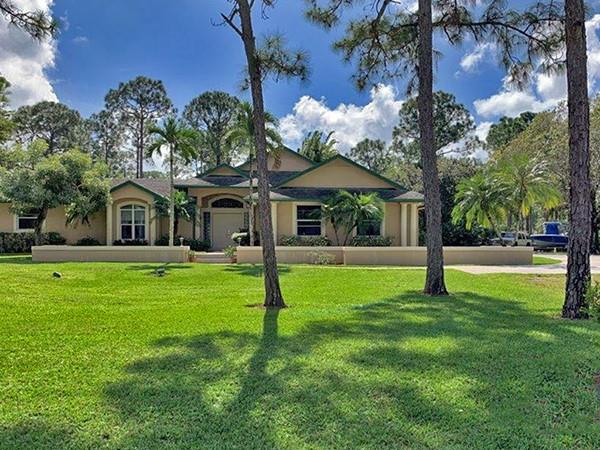 One of a kind, 4,005 architecturally designed home on 1.15 acres in NW Palm Beach County, Fl. The space: private courtyard 35x36, spa house 15x17.6, garden room 7x12, 2.5 car garage with custom steel cabinets/work-bench and file storage. MB 14.6x15.6 with wood floors, walk-in closet, BR with block glass accents, jacuzzi tub & standalone shower. LR 18.6x23, wood floors, tray ceiling and courtyard view. Open custom kitchen/cabinets/work station, tiled floor, block glass accents; adjoining granite counter bar and dining/sitting area 23x24 with courtyard view. GBR 12x13 with full bath, built-in cabinets, walk-in closet and courtyard access. Home office 12x14 with commercial internet & phone system, walk-in closet, full bath near Pantry 6x6 and Laundry room 7x6 off the garage hallway.