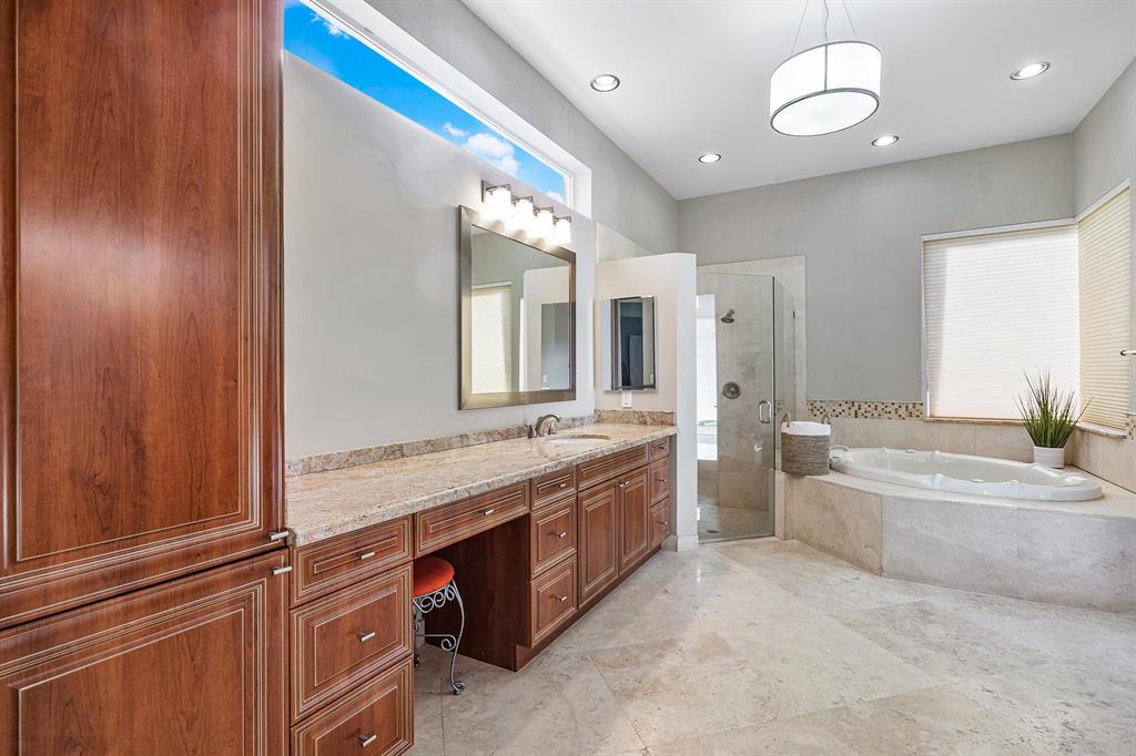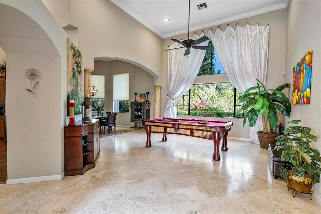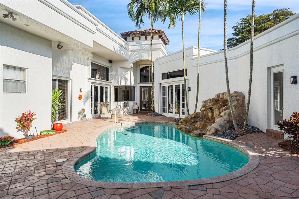 Fabulous one story, 5/4 with separate guest cottage that has outdoor sitting area with TV all overlooking the tropical courtyard, pool & waterfall PLUS an additional office/den also overlooking the pool. Two private offices! Nestled in a cul-de-sac, this home is the perfect retreat. Gourmet kitchen w open island, beautiful granite & beautiful hardwood floors, marble floors living area, soaring ceilings, crown molding, natural light. Master bath has granite vanities, whirlpool tub, frameless glass. Full house generator, shutters, roof replace. 24-hr manned gate, Clubhouse has catering kitchen, gym, 8 tennis courts, basketball, tot lot, child's pool & Resort style pool. A-rated schools, NonEquity. Near Beaches, Golf, Restaurants, Town Center, Atlantic Ave & Mizner Park Boca Lifestyle!