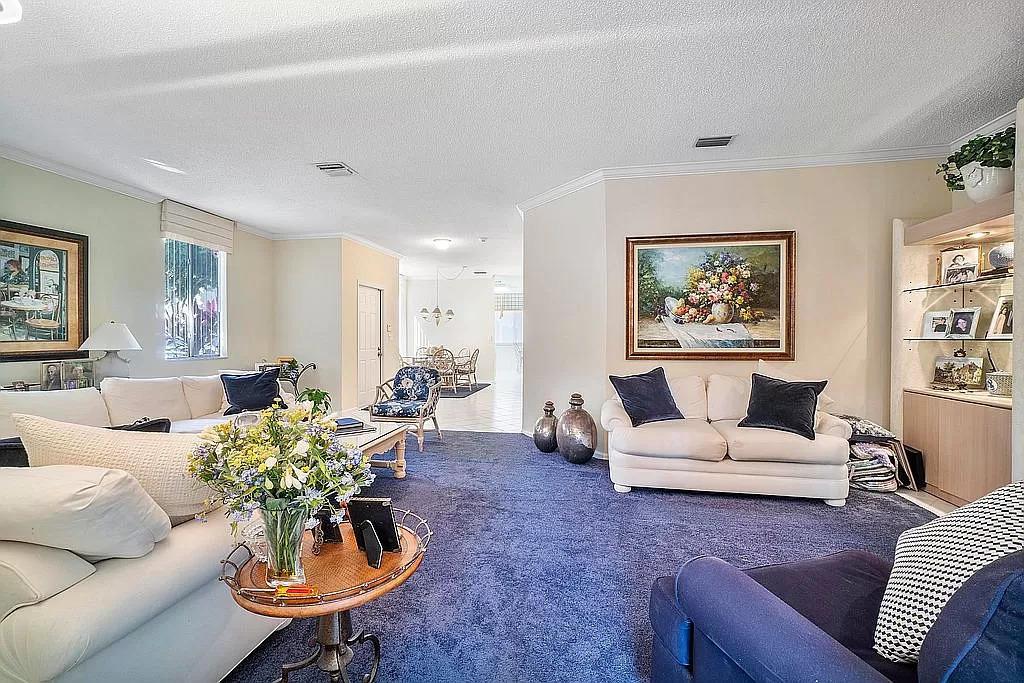 Rarely available spacious END unit town home in the manned gated community of Boca Pointe! Live the Florida lifestyle in this town home that lives like a single family home in an ideal location near the community pool. It is light and bright with an extra large outdoor screened patio, grass area behind and a 1 car garage. The entire first floor is tiled with a spacious main living space, dining room that opens to the living room and an ample eat in kitchen with loads of cabinets. There is an indoor laundry room, huge main bedroom, gorgeous updated master bath with dual sinks, large walk in closet and large guest bedrooms. Beautiful and very well maintained home! Club memberships available but not mandatory. 1 pet under 25 pounds permitted.