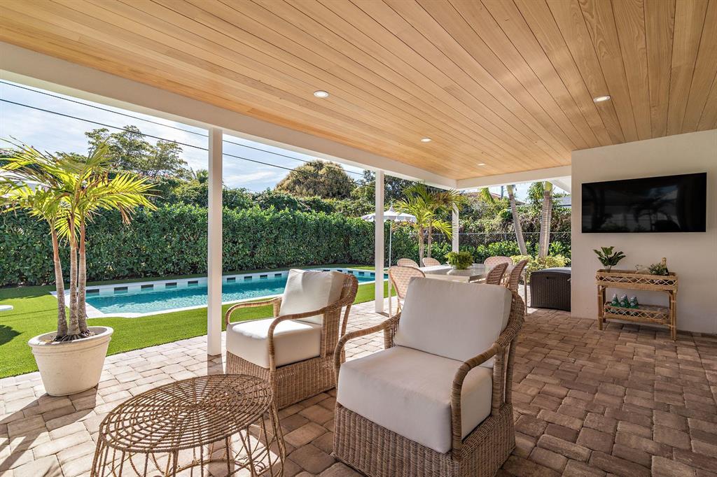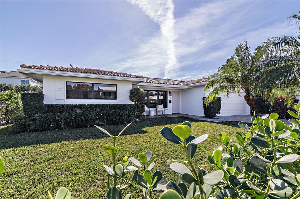 Beautifully renovated (completed Jan. 2021) and move-in ready, this East of Olive home sits on an Intracoastal block in highly sought-after ''SOSO'' neighborhood. Stepping inside, the open floorplan creates great entertaining space with a high-end kitchen opening to living and dining. All on one level, the split layout of bedrooms sets master bedroom on one side and guest rooms on the other. Both bathrooms were fully remodeled. Impact windows and doors throughout. A newly constructed laundry and mud room connects you to the 2-car garage. Outside, a captivating, covered loggia overlooks the updated pool and garden with lush privacy hedges. Impeccably designed, all furnishings are available at an additional cost. This turn-key property is minutes from beaches, restaurants, Worth Avenue,