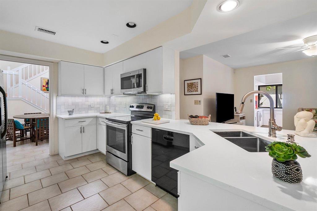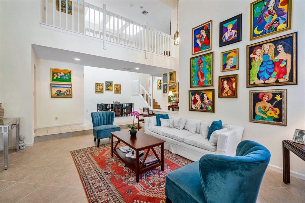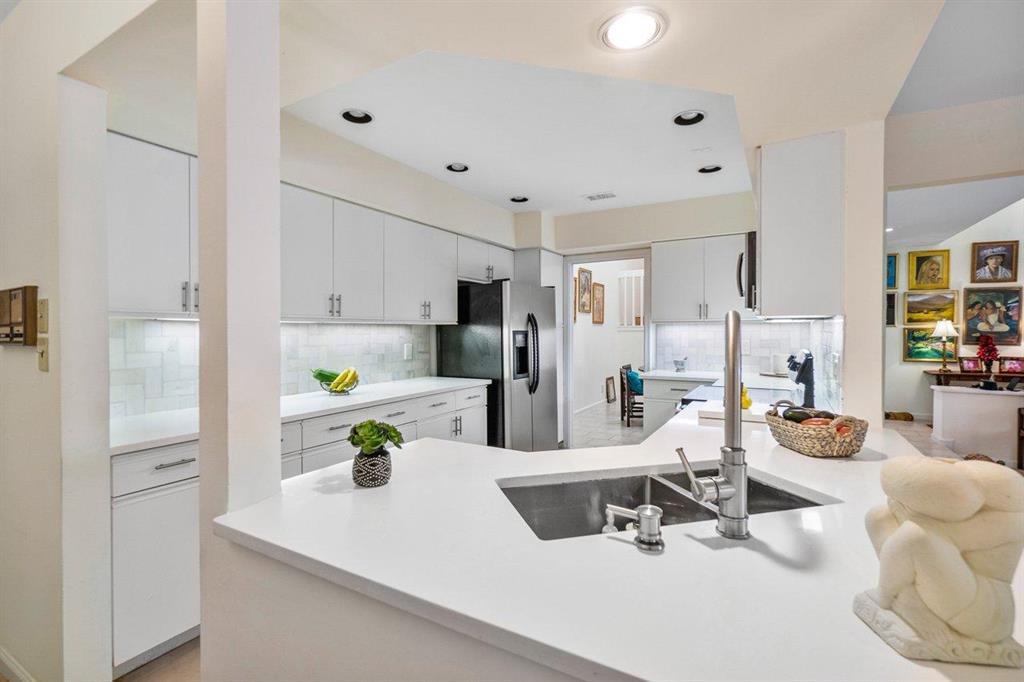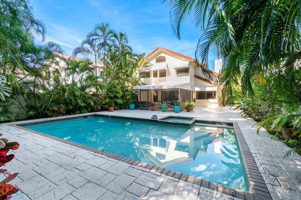 Charming two story Dominica model situated on one of the largest private lots in Club Villas. Lushly landscaped tropical courtyard entry & backyard. Abundance of outdoor living space offers a sparkling pool, screened patio plus open patio perfect for dining al fresco & entertaining. Bright open floor plan boasts soaring ceilings, full bedroom/bath down and family room. Formal living room with floor to ceiling fireplace. Wet bar with quartz tops opens to patio area. Spacious kitchen with breakfast room, stainless steel appliances and quartz tops. Master suite offers high ceilings, walk in closet. Master bath with dual vanities, separate tub and shower. Two guest bedrooms up with partial lake views.