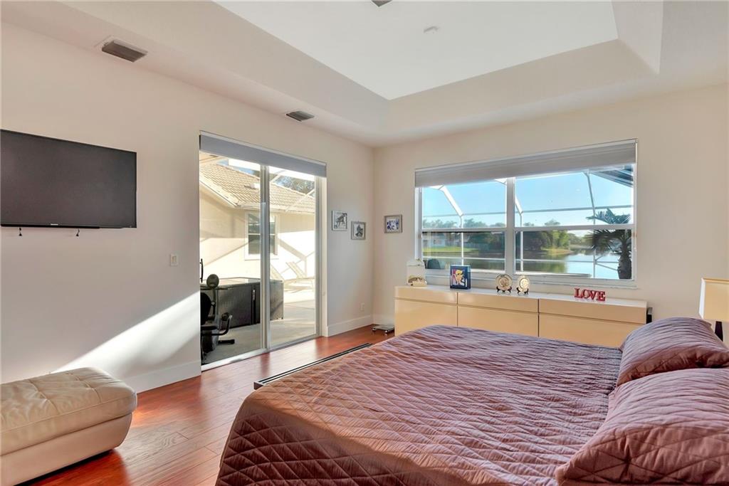 A MUST SEE!. Breath taking view from Pool and Lake. 5 Bedrooms 3 Baths, 5th bedroom used as office it can be converted into bedroom. Split layout w/screened pool, 3 car garage, large laundry room w/sink and storage shelves. Abundant windows & beautiful natural light. Very spacious Master Suite with 2 large custom built walk in closets, renovated bath with stand alone tub. Tiled in the main living areas, new flooring in the master bed and office, updated baths w/new calacatta quartz kitchen island. Great gated community with low HOA, tot lot and tennis court. Walk or bike to A rated elementary. Top rated middle and high school as well. Gated community, convenient to everywhere but in a secluded setting. ***MUST FOLLOW COVID PROTOCOLS DURING SHOWINGS. MASKS ARE REQUIRED***