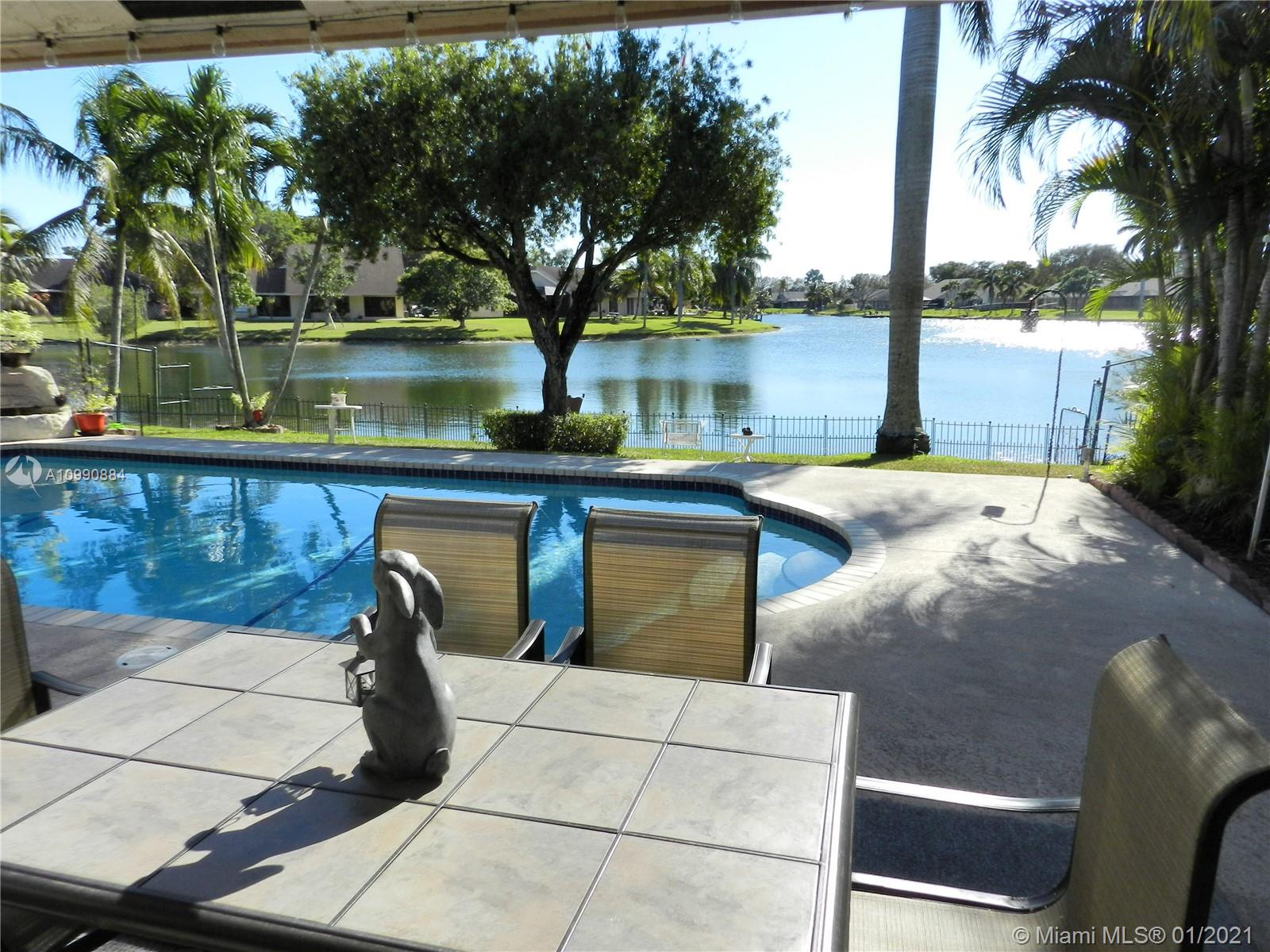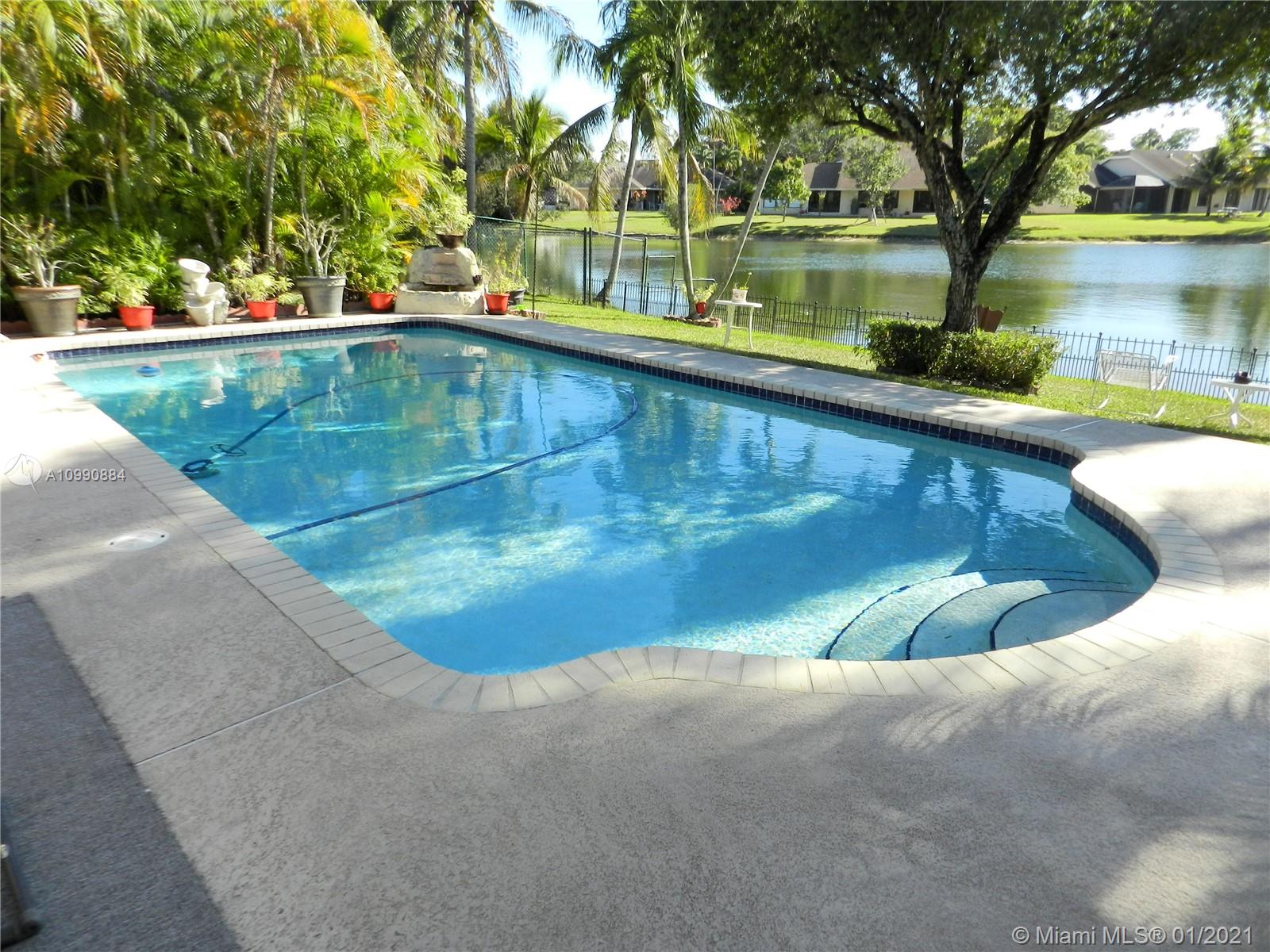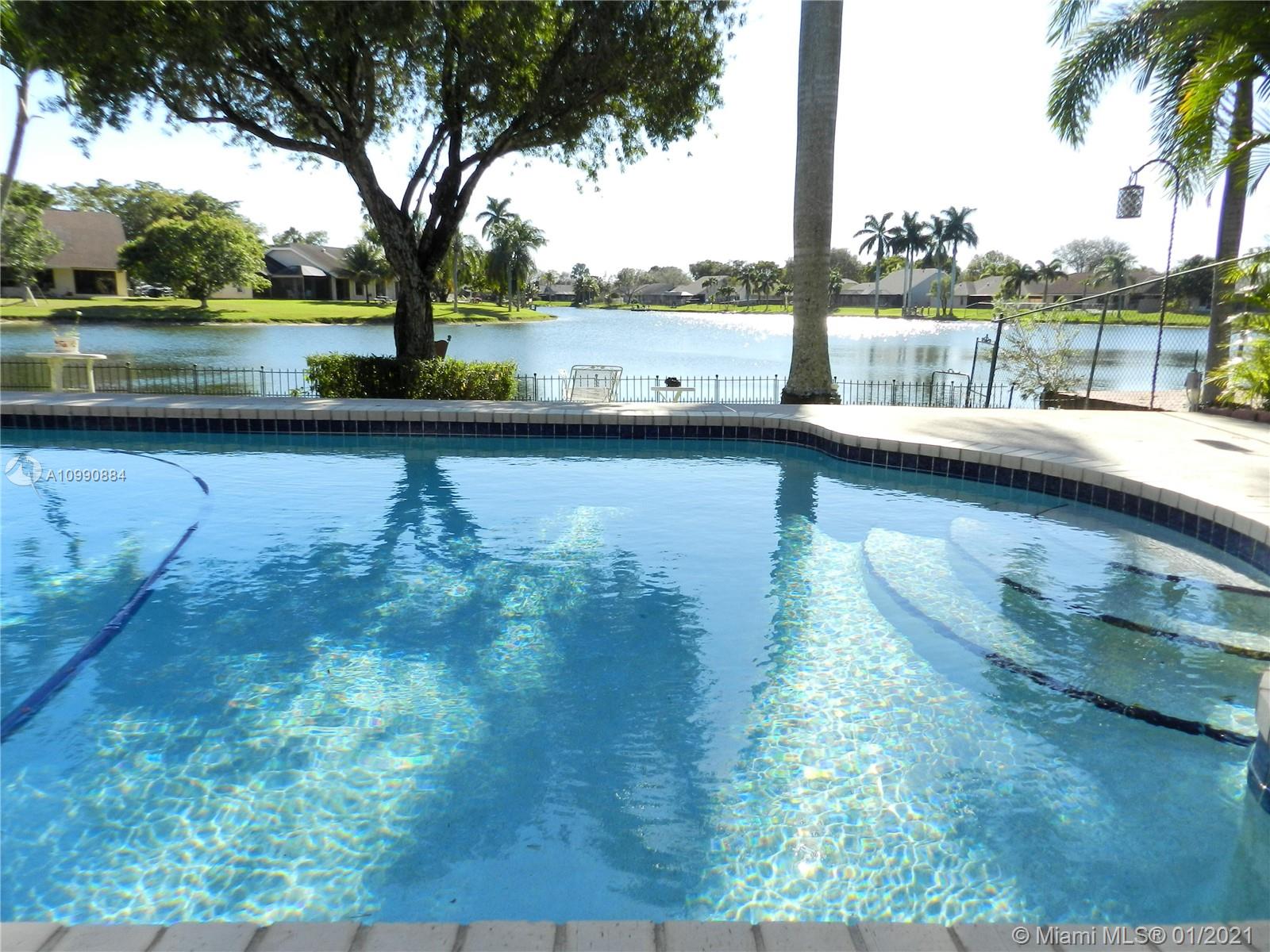 Stunning wide lake views greet you as you enter this gorgeous home! A true 4 bedroom home in the heart of Cooper City, this home has it all with a spacious floor plan, huge fenced yard, lakefront, & close proximity to A rated Cooper City schools. *Kitchen remodeled with solid wood cabinetry & granite counters *Breakfast nook *Tile throughout living areas & waterproof vinyl or wood laminate in all bedrooms *Vaulted ceilings *Full interior laundry room *Master bedroom walk-in closet *Incredible water views from most rooms *Expansive patio & pool deck perfect for entertaining *Gazebo stays *AC 2015 *Roof 2006 *Small boats, kayaks, & paddleboats permitted on lake with electric trolling motor *Walking distance (.2 mile) to playground & exercise pavilion at Ellie Kozak park *Voluntary HOA