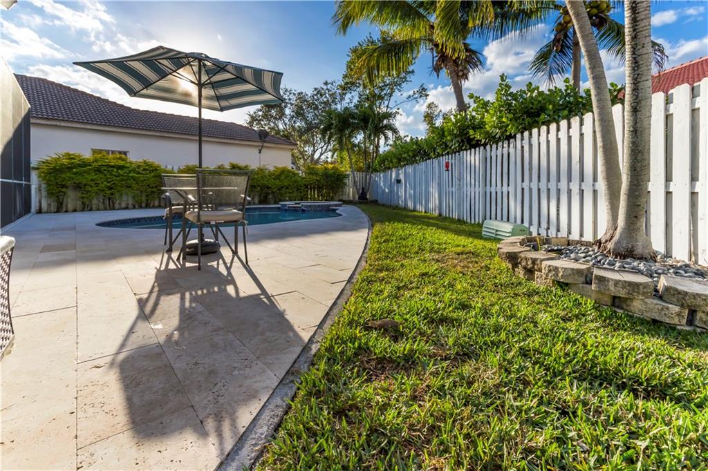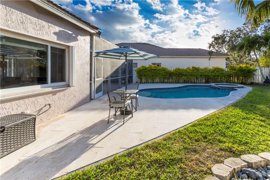 STUNNING 4 BEDROOM HOME ON A QUIET CUL-DE-SAC IN WESTON! THIS HOME FEATURES IMPACT WINDOWS THROUGHOUT AND ACCORDION SHUTTERS. OVERSIZED FENCED-IN BACKYARD WITH A HUGE GRASSY YARD, SCREENED IN PATIO & SALT WATER POOL. THE INSIDE FEATURES, BEAUTIFUL FLOORING IN THE MAIN LIVING AREAS, AND WOOD LAMINATE IN ALL BEDROOMS. SPACIOUS KITCHEN WITH GRANITE COUNTERTOPS, WOOD CABINETRY AND STAINLESS STEEL APPLIANCES. UPGRADED BATHROOMS WITH MARBLE VANITIES. HOME WAS RECENTLY PAINTED!