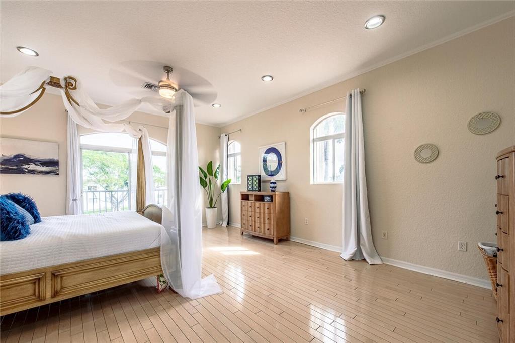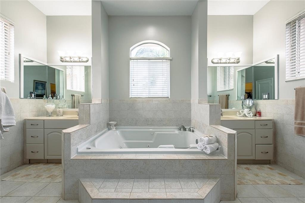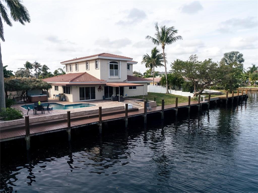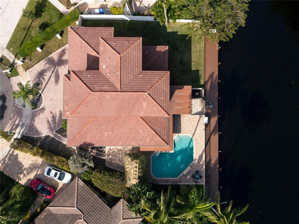 Fabulous cul-de-sac 1999 yr. home with 110 ft on the water 100ft dock w/ preserve&long water views to the N&straight E. You are greeted with a circular paver driveway, 2CG & a double glass door grand entryway with 20ft. ceilings. Light, bright & fresh is the welcoming vibe that you will receive. Formal living and dining, open kitchen suited for a chef, large family room with built in's for your flat screen & full bar that overlooks the tiki hut, jacuzzi, pool, preserve & water! The 1st floor has 1 full suite + 2 additional bedrooms with a cabana bath & 1/2 bath. 2nd level makes up the master & yoga studio. Incredibly spacious! Large walk-in closets, toilet&bidet room, his/her sink areas, spa tub&separate shower. Shutters and impact garage door. PVC plumbing, 2 AC's-2yrs old. Low ins.rate.