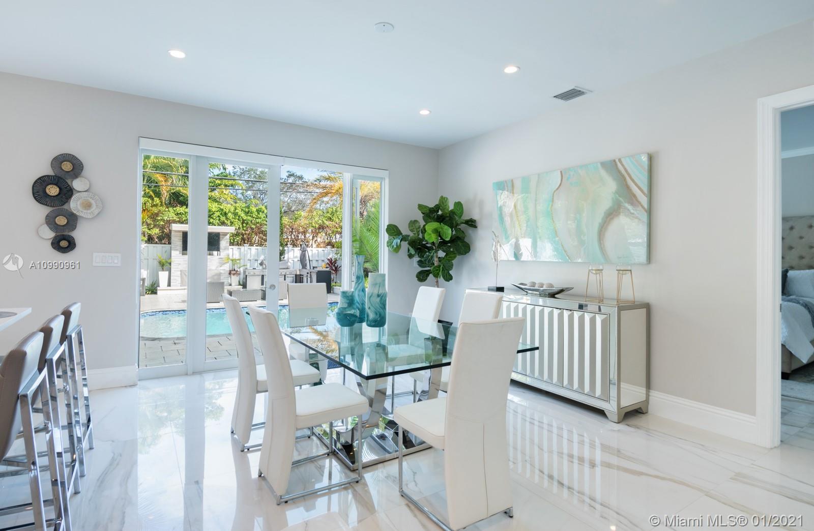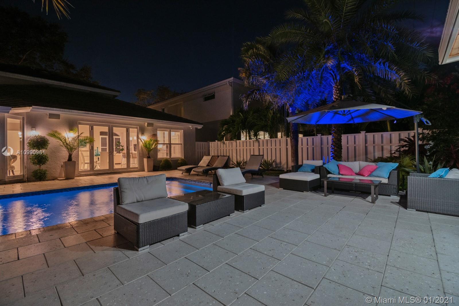 The combination of great location and high standards living. Located 5 min from Las Olas and 10 min from Fort Lauderdale Beach. This property offers immaculate, professionally designed two-story vaulted ceiling, with a beautiful kitchen equipped with Wolf in-wall range and cooktop, Sub-Zero fridge. New roof, brand new A/C unit, paver driveway, PGT impact windows/doors with window treatment, Calacatta porcelain floors, AquaGuard wood floors, custom wood cabinetry, quartz tops, wood closet shelving, full size washer and dryer, epoxy garage floor, landscape lighting, backyard lounge with tv and furniture, pool chairs and more.