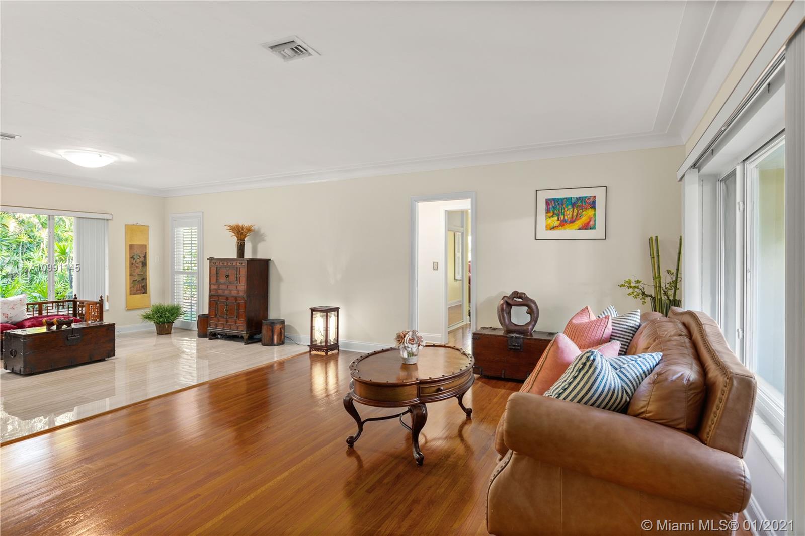Immaculate central Coral Gables gem. 2-bedroom, 2-bath home on a beautiful 10,000 sq ft. corner lot. Spacious open plan, impact windows, hardwood floors surrounded by lush landscaping. Circular driveway and a two car garage. This home is priced to sell and won’t last.