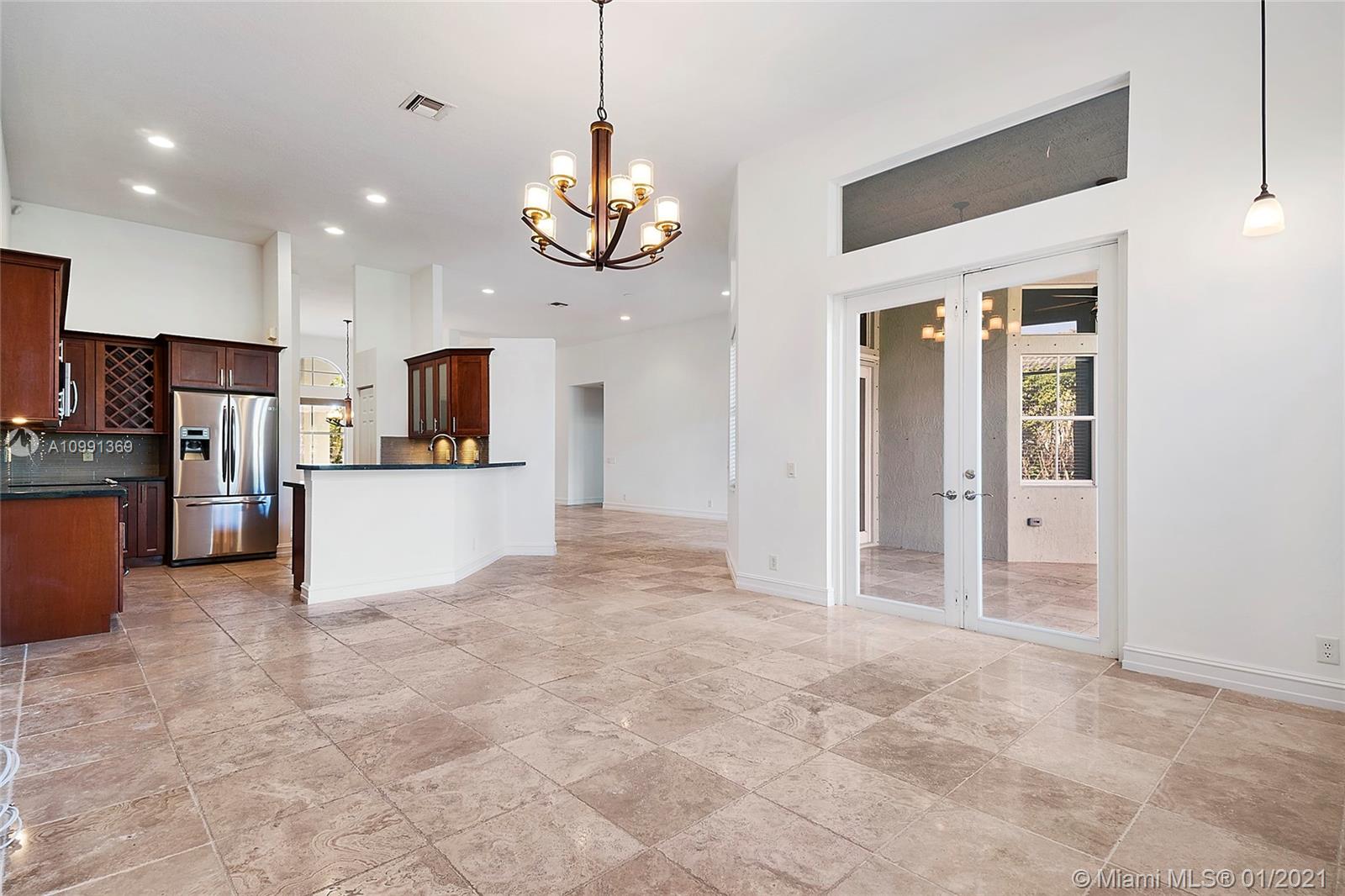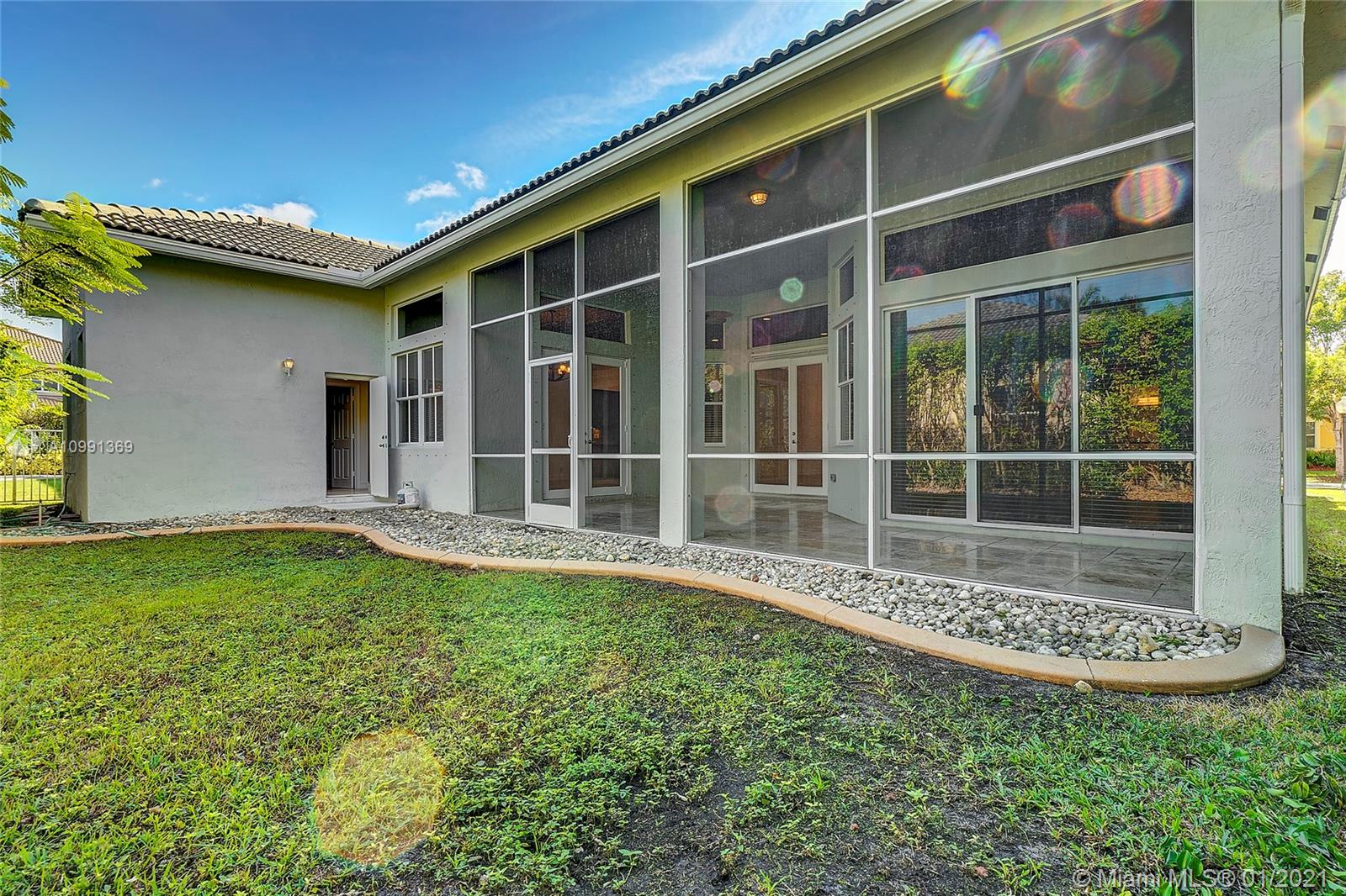 Beautiful Heron model single story, 4 Bedroom, 3.5 Bathroom, Den/Study with 2 Car Garage residence located in the very well sought after gated community of Savanna in the City of Weston. Interior features: travertine marble floors throughout main living area, wood floors in master bedroom & den/study. Kitchen features include: all real maple wood cabinets with glass insert doors, under-mount lighting, black granite counter tops with designer glass backsplash & all stainless steel GE Profile appliances. The French doors located in the living room & family room lead you to your very own private screened in patio. Exterior features: paver driveway, private porch and hurricane shutters throughout. Savanna is an excellent family oriented community with outstanding amenities and schools.