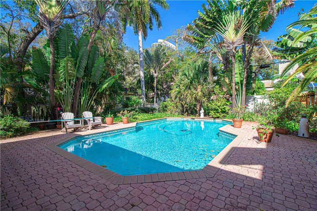 Beautifully maintained home on a double lot in the heart of Rio Vista with a pool/patio that epitomizes Florida living. Move-in ready 4/4 with a workshop easily converted to guest or mother-in-law quarters. Full 2 car garage and huge front yard. Master bedroom upstairs with en-suite bath. Downstairs has a full dining room and Butler's pantry, sitting room with wood-burning fireplace, and living room and eat-in kitchen. Foyer with french doors to Florida room. All wood floors- Oak and Dade ine. Secluded street, yet in the heart of town; Perfect for a growing family. Bring all offers!