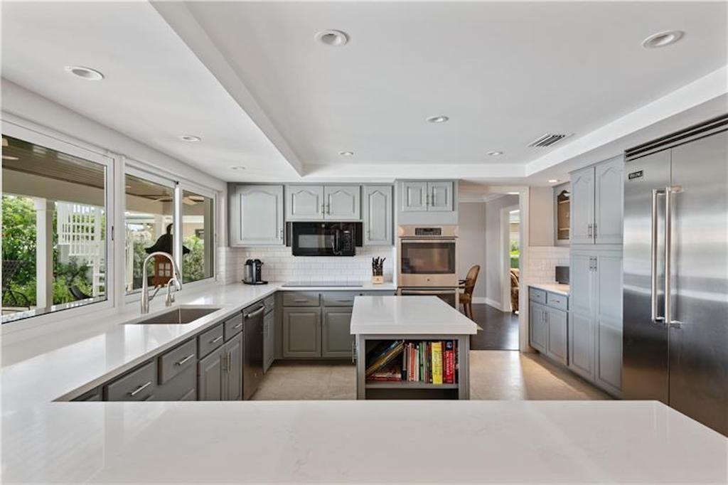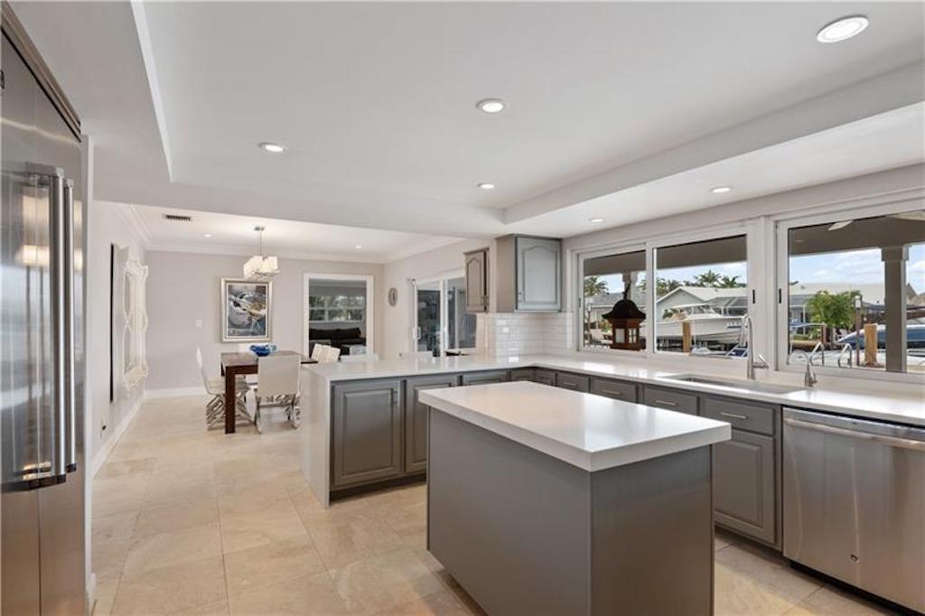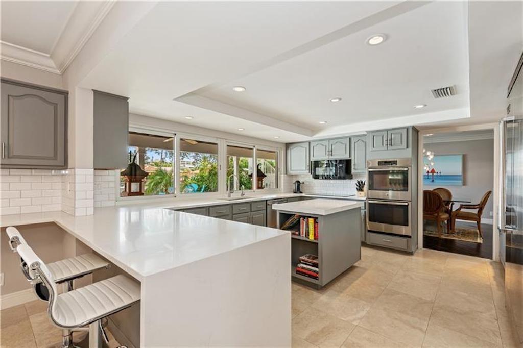 Spacious Country Club waterfront home with 6 true bedrooms. This house has updated modern baths, sleek open kitchen with new Quartz countertops and high end appliances. Formal living and dining room with a breakfast room off the spacious kitchen. HUGE family room off the pool and large covered loggia and patio complete with a cabana bath. Fabulous floor plan finished with marble and wood flooring, hurricane impact windows and doors throughout. The tile roof was redone in 2002 and the flat part of the roof last redone in July 2014. New landscaping in the front being installed. All information deemed accurate but not warranted and all measurements are approximate & should be verified by buyers.