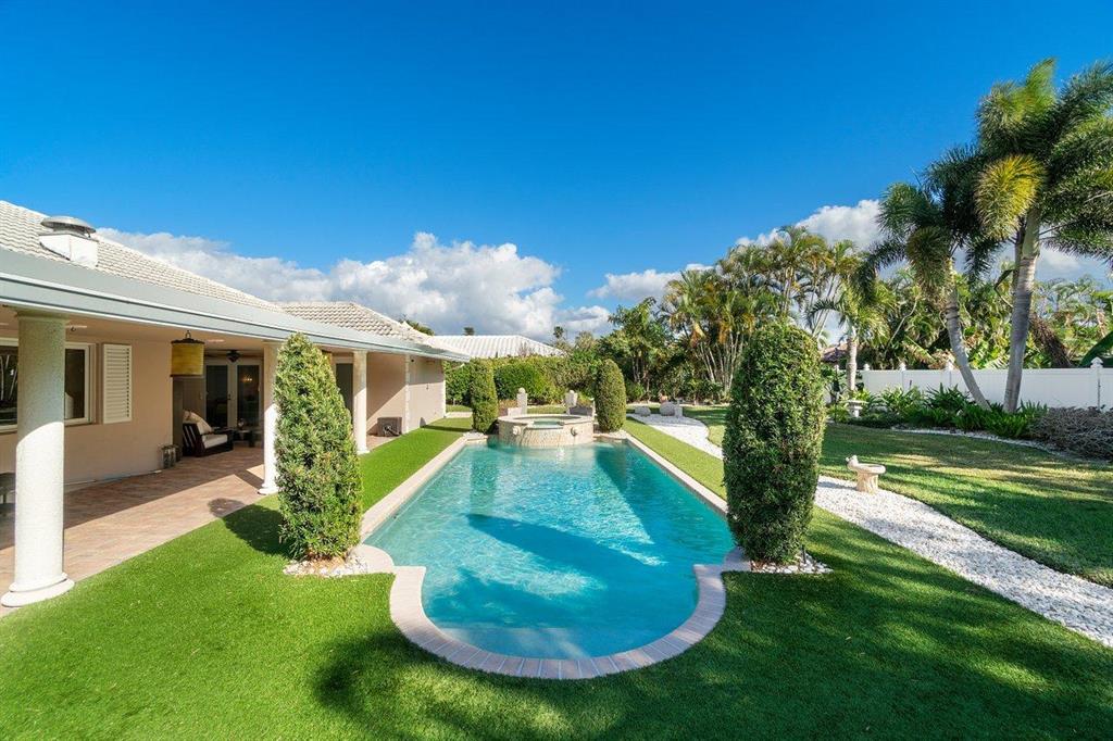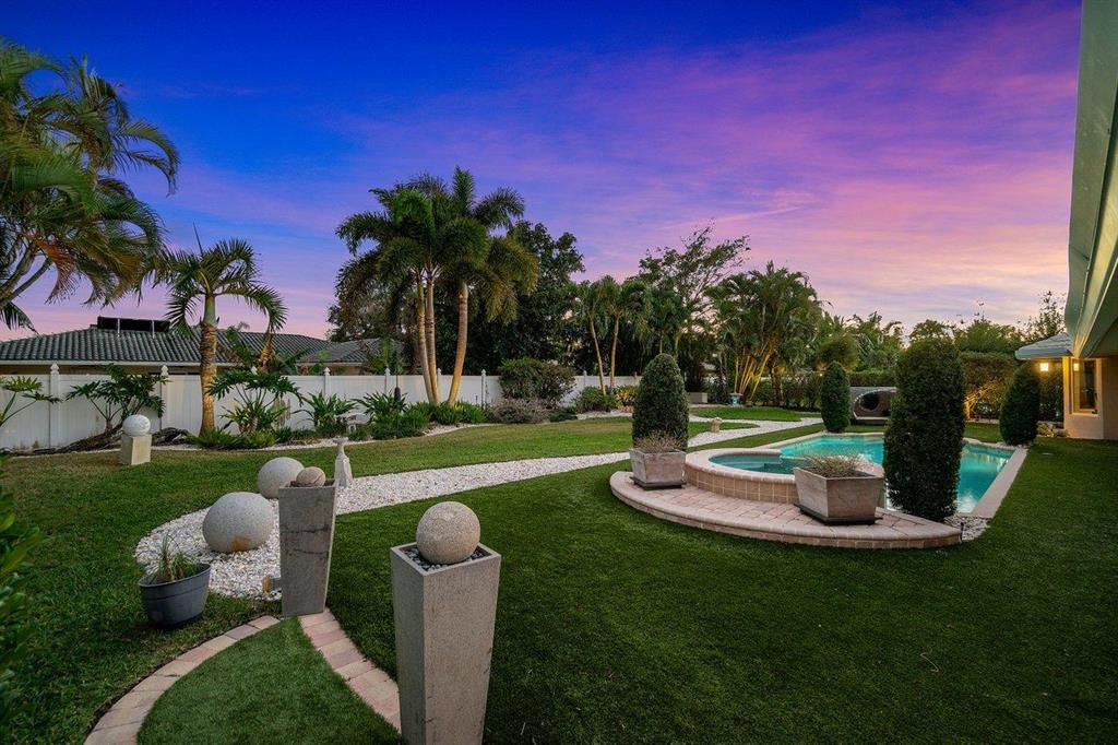 A tropical oasis in the charming neighborhood of Camino Gardens, this single-story home features 3 bedrooms, 2.5 bathrooms, plus an office that can be converted into an additional bedroom space. 638 Elm Tree Lane sits on an oversize, 13,500 sqft lot; ample space for its South-facing, resort-style backyard with underground power lines. This meticulously maintained home boasts 2,500 sqft of interior living space and 300+ sqft of private, covered patio, providing plenty of room for dining and relaxing. The zen-like backyard is privacy fenced and includes a heated salt water pool and spa. The custom landscaping features mature palms, in-ground sprinklers and new lighting.This expanded Eastport model has a flowing floor plan with ample living space plus an office featuring California Closet