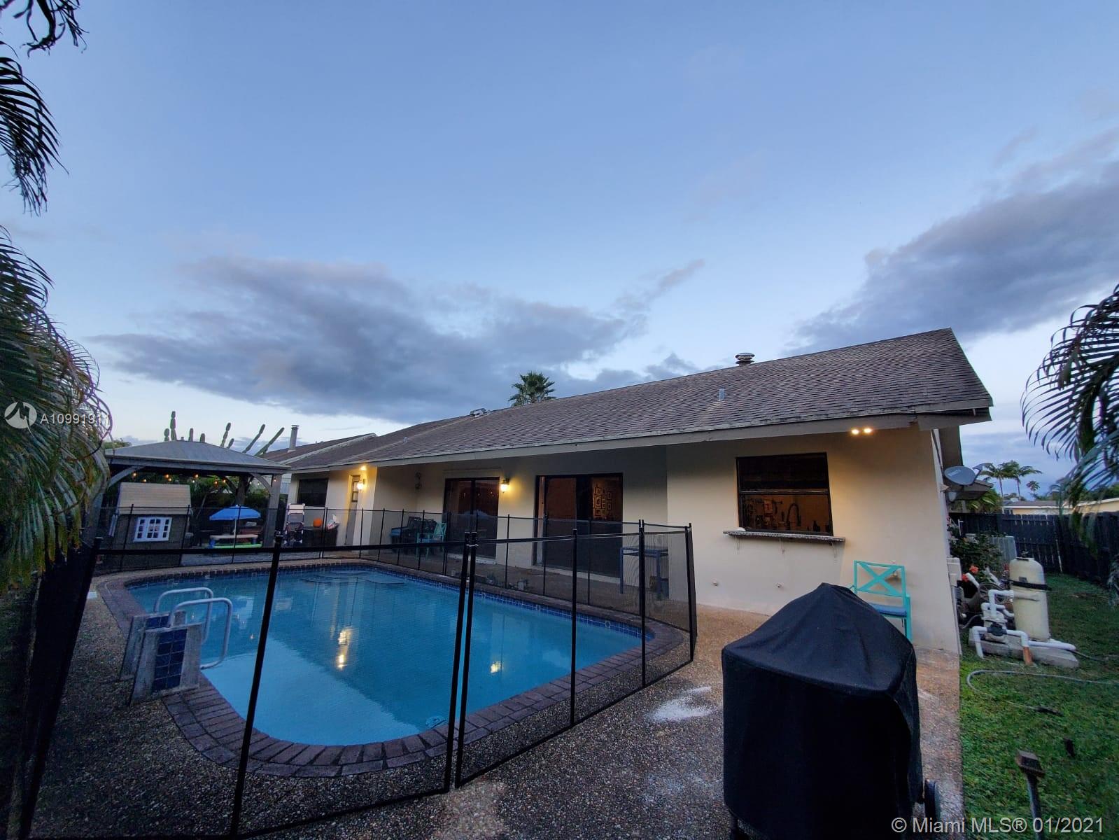 3/2 pool home that has been COMPLETELY updated inside and out from 2013-2016. Great room with high wood beamed vaulted ceiling and cozy stone fireplace are the feature of this home which is also open updated kitchen. Roof replaced in 2006, Electric panel and AC new in 2014, and hurricane windows in 2016. Pool diamond brite 2013, private fence 2016 and stucco/exterior paint 2016. Full two car garage and 1/2 circular drive. Awesome Pembroke Lakes neighborhood with A rated schools and convenient location to shopping and highways.