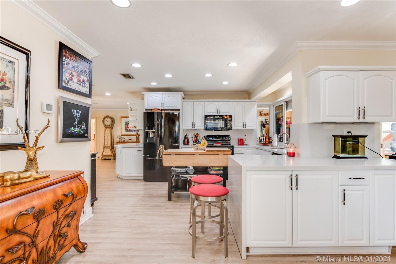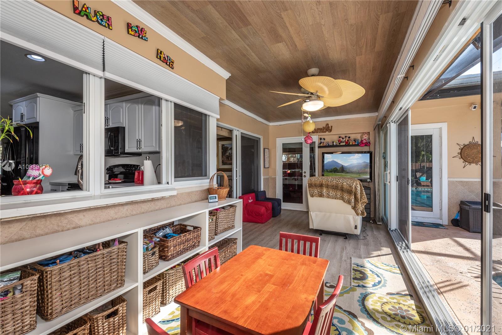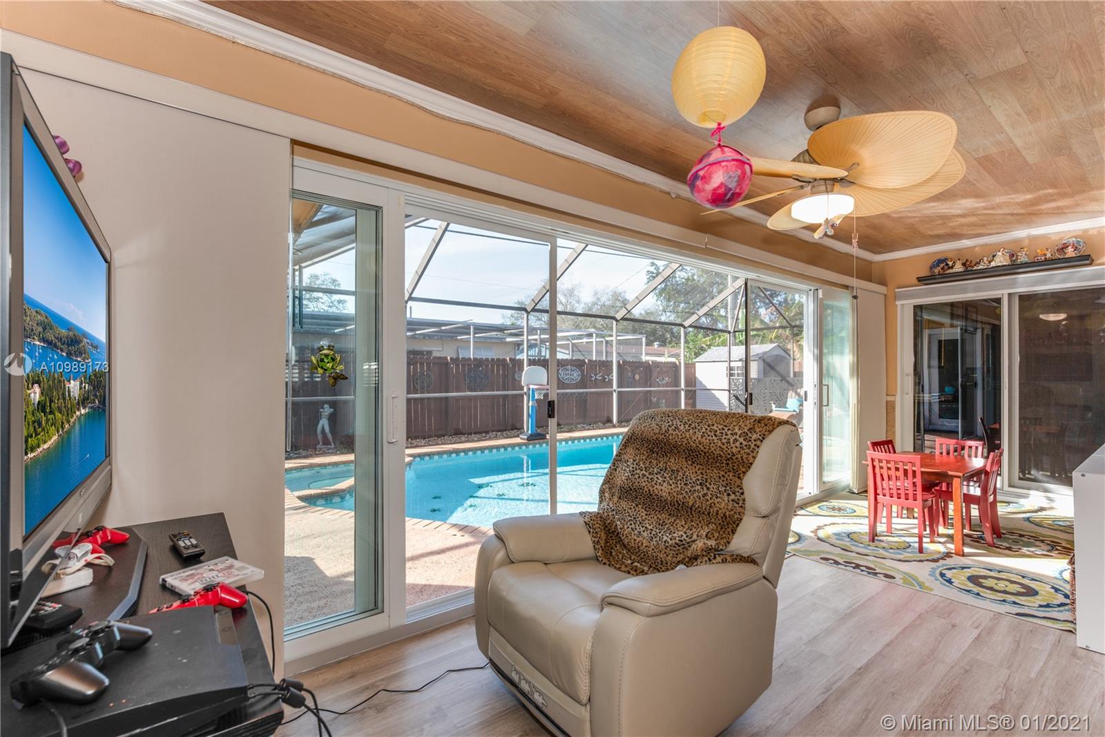 Beautiful Three Bedroom Two Bath Pool Home in Cooper City Completely Updated with Stunning Open Floor Plan * Impact Windows and Doors Throughout the Home * "Waterproof" Wood Laminate Floors * Screened in Solar Heated Pool with Spa and Pool Safety Fence  * Kitchen has Quartz Countertops with Pull Out Drawers in all Cabinets for Easy and Neat Organization of Pots - Pans and Items - Passthrough to enclosed patio and Pool Area * Plantation Shutters on Most Windows  * Bonus Outside Covered Entertaining and Child Play Area * Walking Distance to Cooper City Elementary School - Pioneer Middle School and Cooper City High School *  No HOA * Refrigerator in Garage and Cutting Table in Kitchen Does Not Convey *
