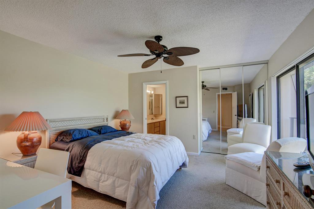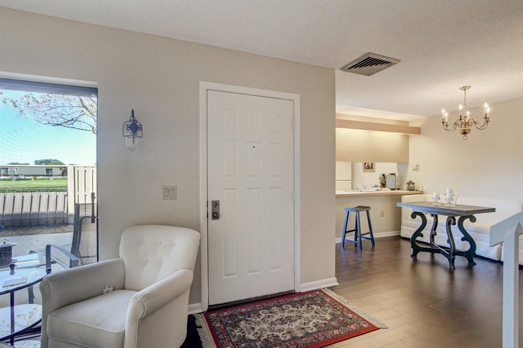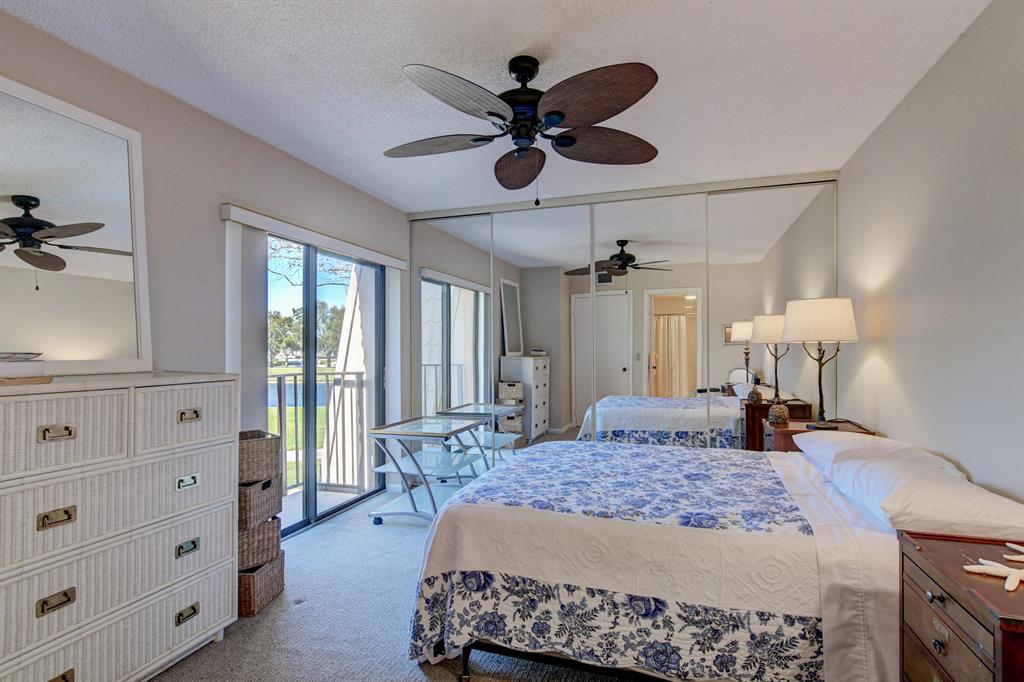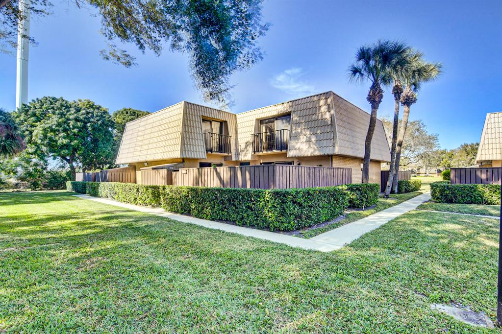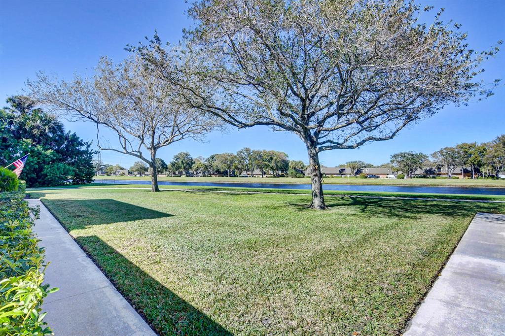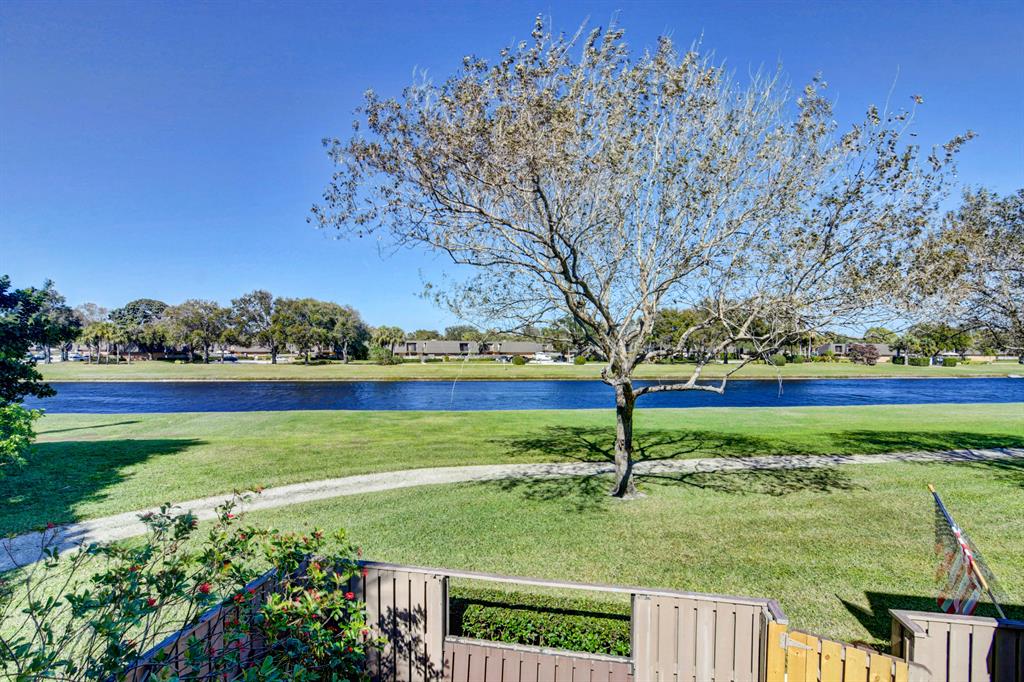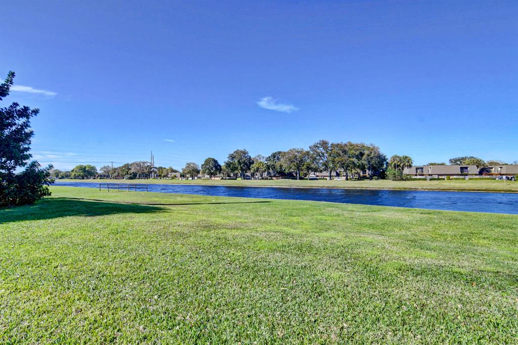 Canal views from both bedrooms, drop down fence from patio, private location, walk to Rec. facilities. Laminate flrs.downstairs, new microwave, stove & g/disposal. Decorator fans, Berber carpet.Ext. bldg. main, includes roof & fence. Bldg. ins. assigned parking, common landscaping, road resurfacing, tree trimming & more. Minutes to main arteries, grocery, banks, restaurants, PBIA airport, Discount mallDiscount mall. Beaches 15-20 minutes.