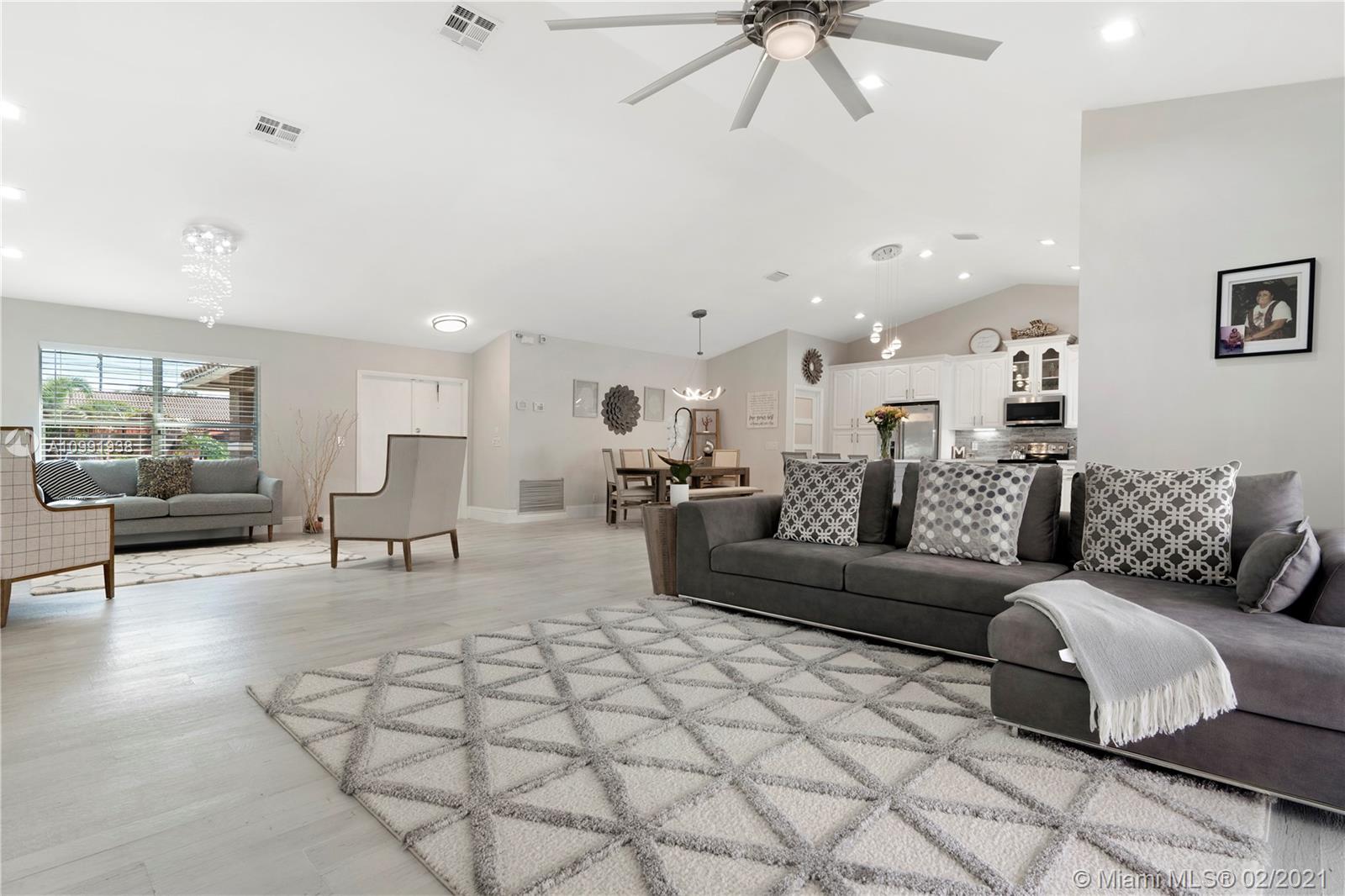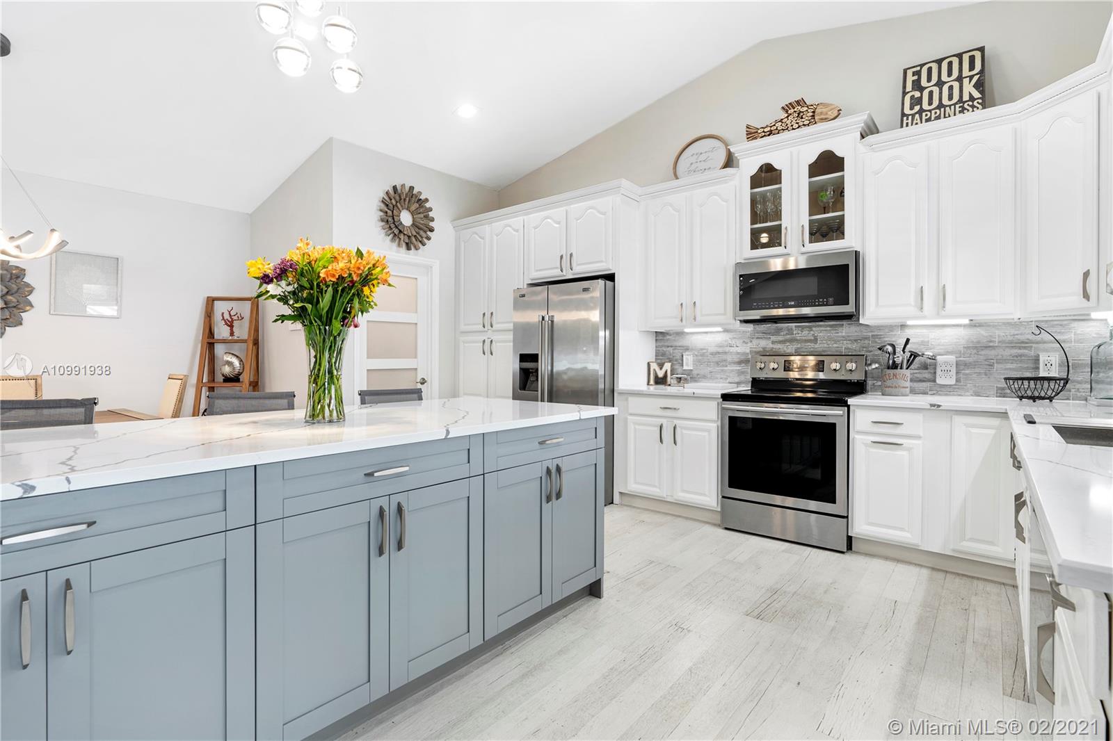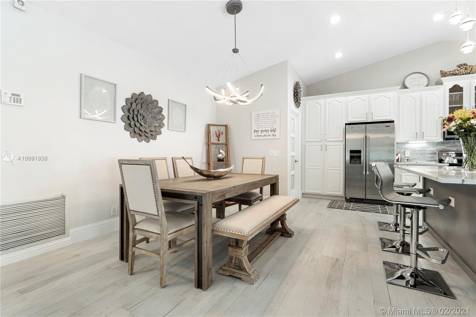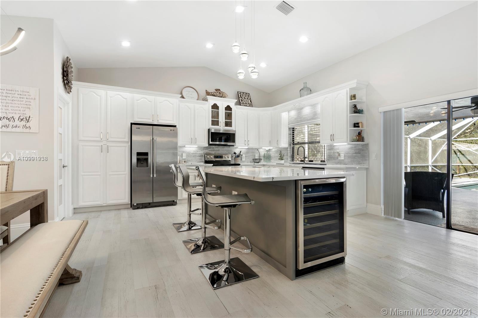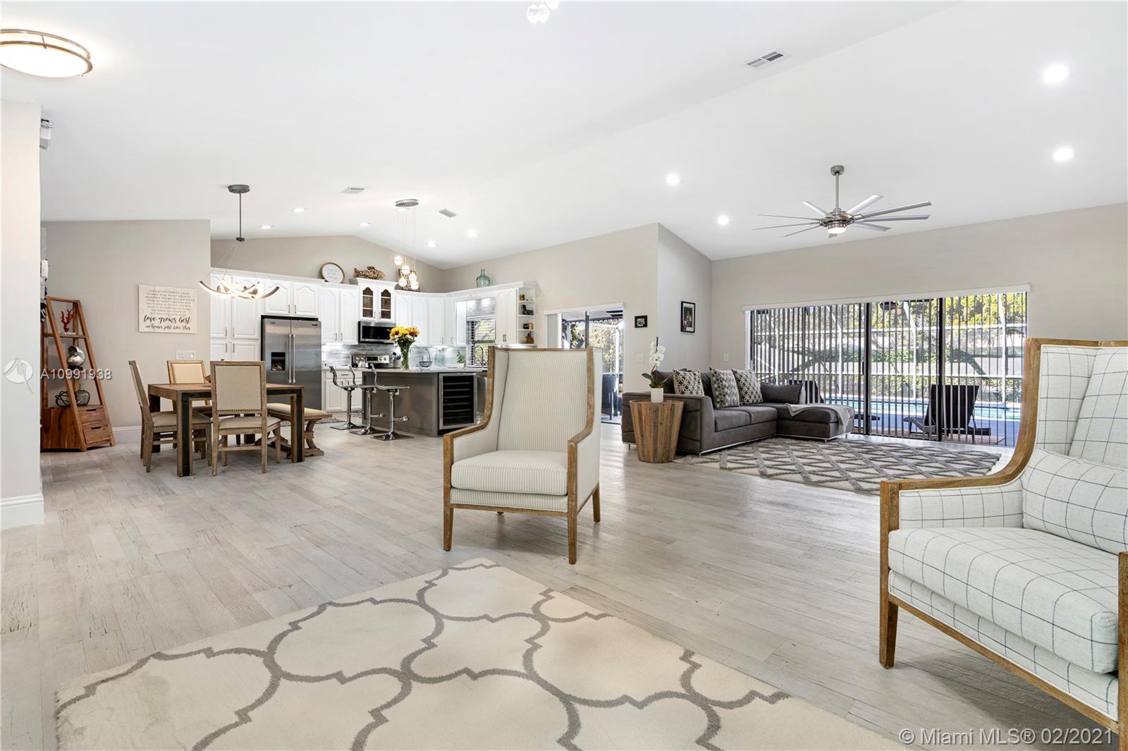 Resting on a quiet tree-lined street in Pine Ridge, this Southern exposed 4 bedroom 2.5 bathroom home was gut renovated from top to bottom. Home features Quartz countertops with large island perfect for entertaining; Samsung appliances including Washer & Dryer; 48 bottle wine cooler; porcelain tiles and LED lighting throughout. Additional flooring upgrades include large baseboards. Touch LED vanity mirror in second bathroom. Open, modern floor-plan accentuated by high ceilings plus large ceiling fans. Home also features a large pool deck and pool with multi-color LED lighting. 5-ton Trane AC unit less than 5 years old and brand new pool pump and equipment. This home is move-in ready!