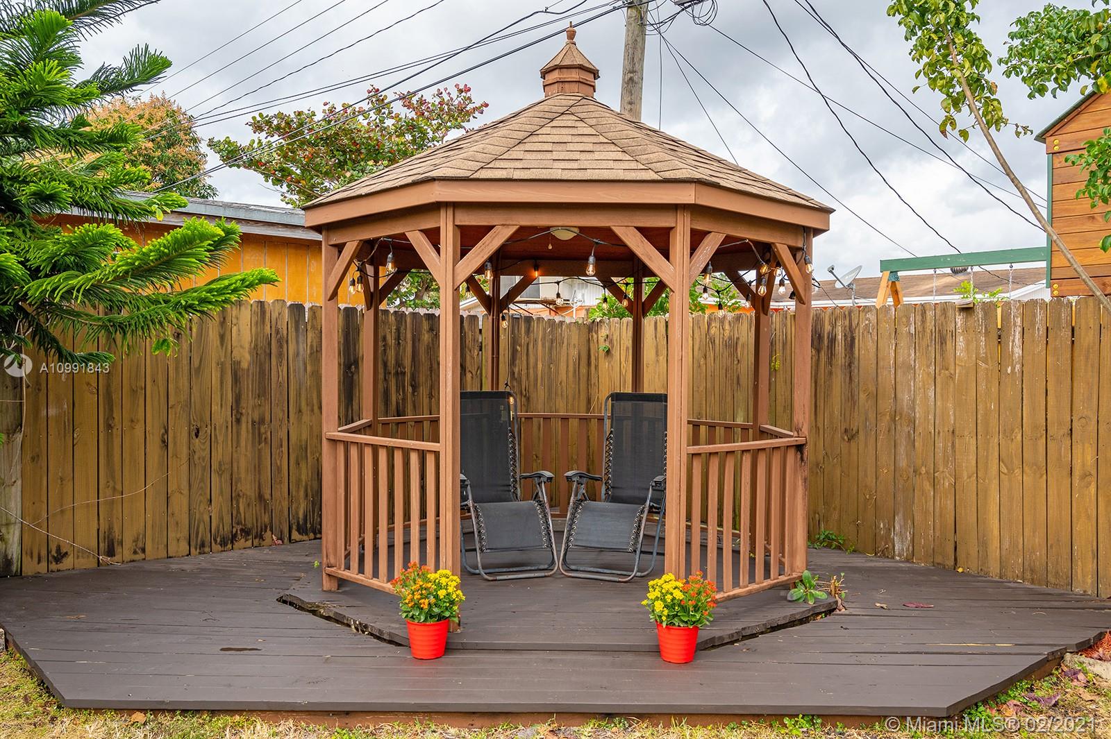 Welcome home to this charming single family with so many details to make anyone feel at home. Beautiful 24x24 tiles throughout the home with molding, nicely updated kitchen with modern stainless appliances, great family room and bedrooms to enjoy. Outdoor features a beautiful screened in patio which extends the living area to please. Backyard is great with a beautiful pavilion with electricity to enjoy listening to some music or cozying up to a good book. Great size shed stays and is great for storage, utility room which holds washer/dryer as well as water heater is great for storage as well. SOLAR PANELS on home are a great advantage. Average electric bill is $30/month and just imagine, having hurricanes come through and not worrying about losing electricity. Schedule a showing today!