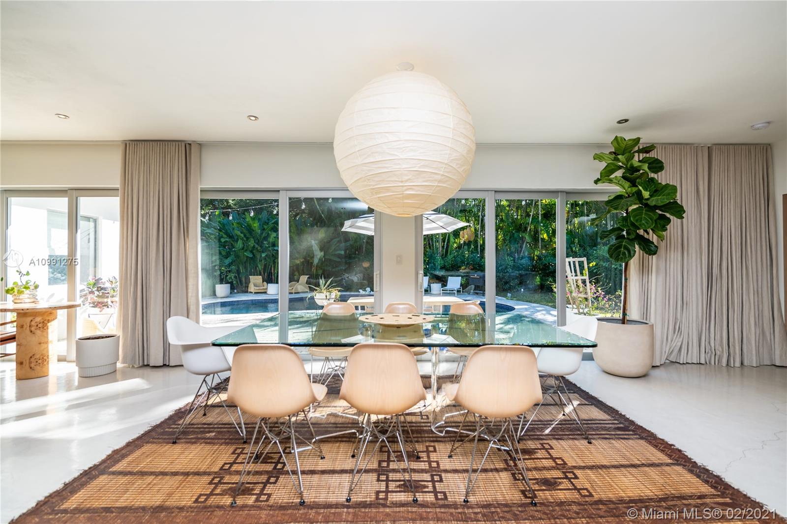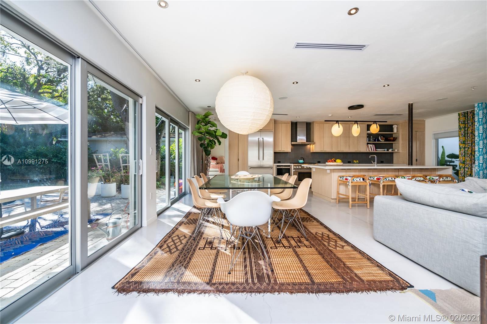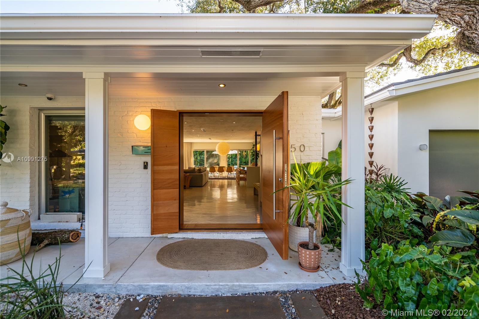 An Ode to Joy, Light & Artisanship. Pass thru the owner-designed redwood front doors of this Central Gables delight into a world of wholly original, globally handcrafted design wonders. Aficionados of luxury craftsmanship utilizing natural & honest materials, the current owners spared no expense or effort to create a home which faithfully conjures a mid-century aesthetic with a nod to the ease and comfort of California Modernism. The dining room chandelier designed by Japanese-American sculptor Isamu Noguchi; the entrance wallpaper that British designer Marthe Armitage screen-printed by hand; the lighting created by Italian designer Artemide; small-batch tiles fabricated by L.A. designer Tracey Reinberg - every room enchants, inspires, relaxes & comforts. Home is where the joy is.