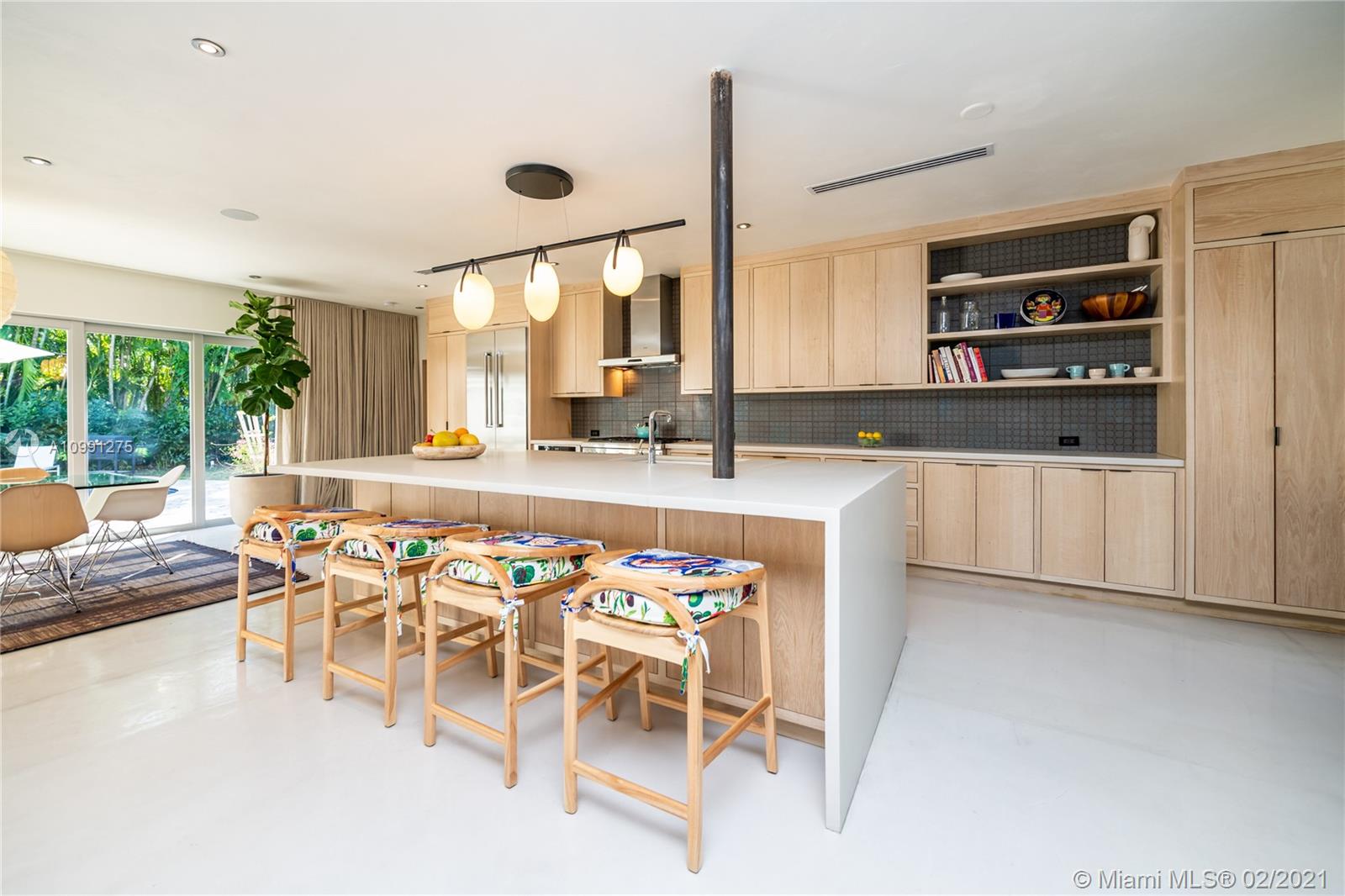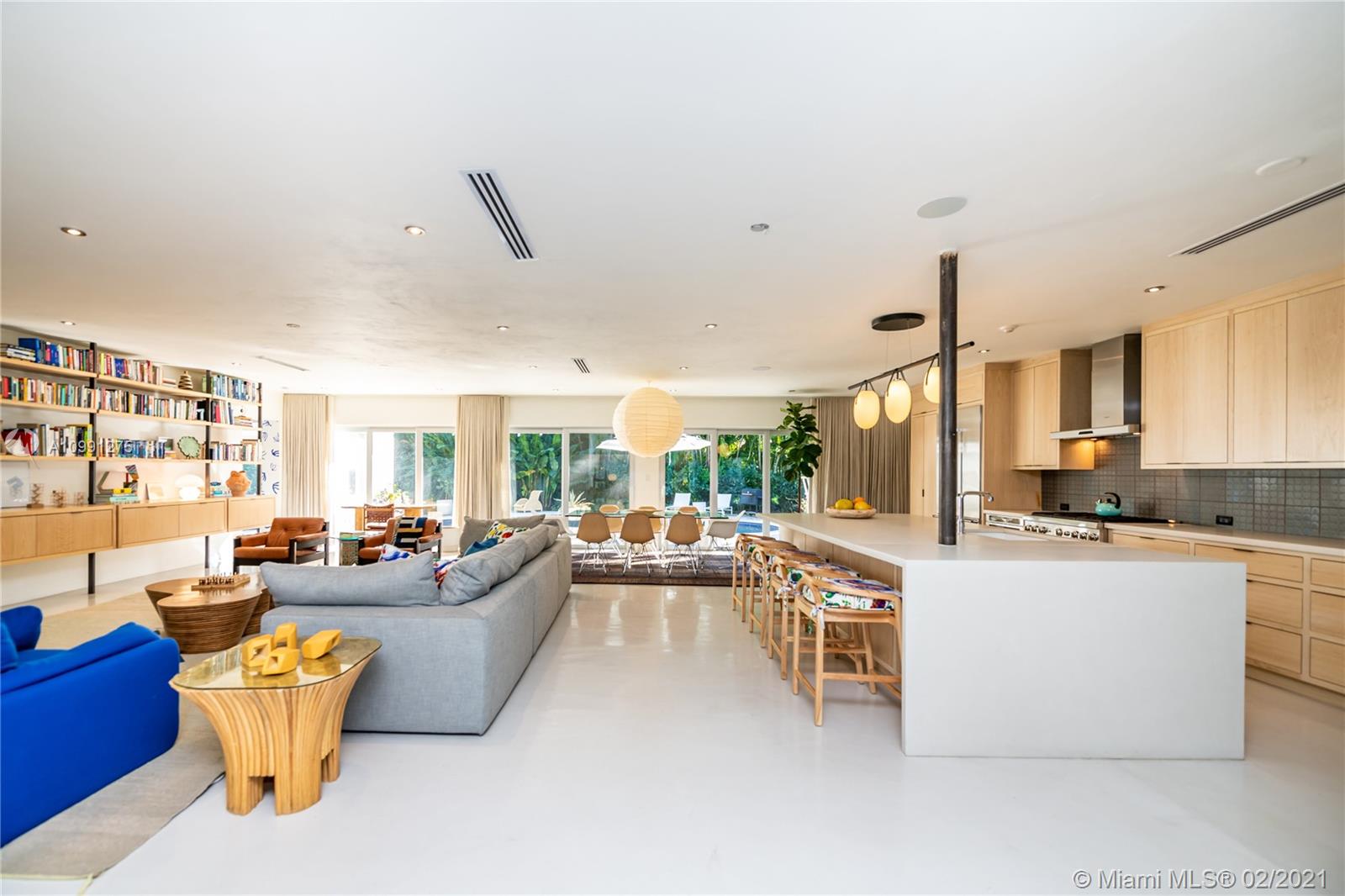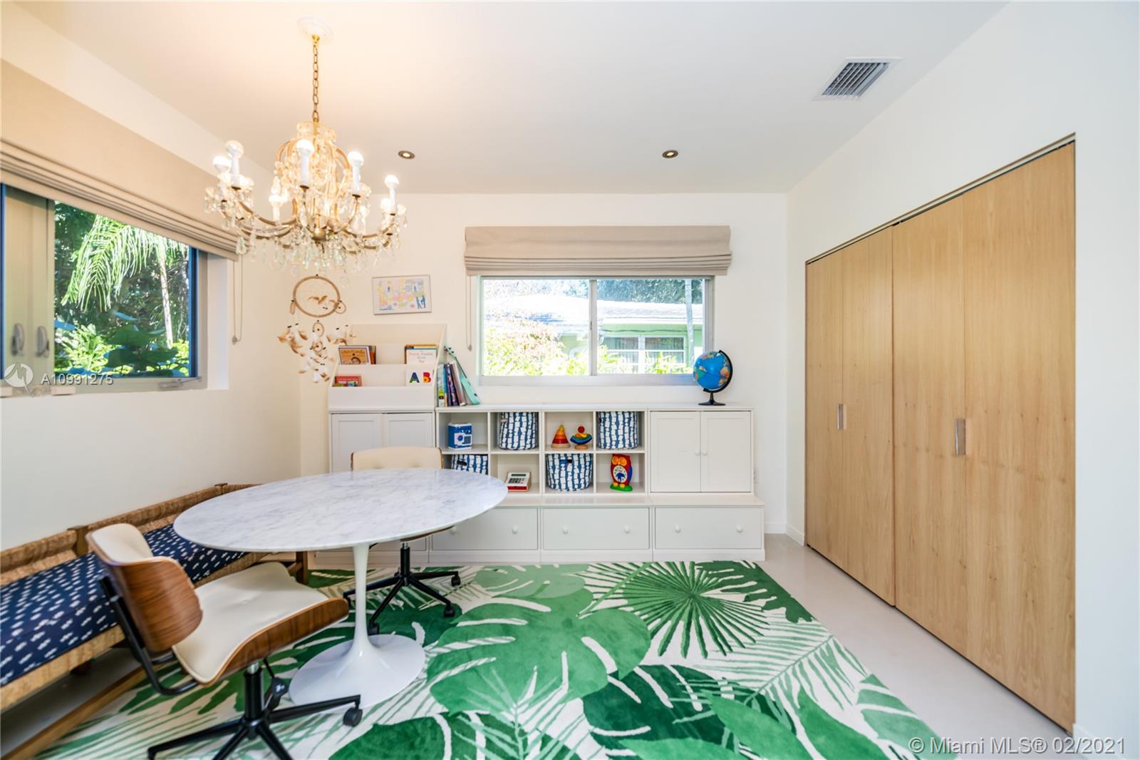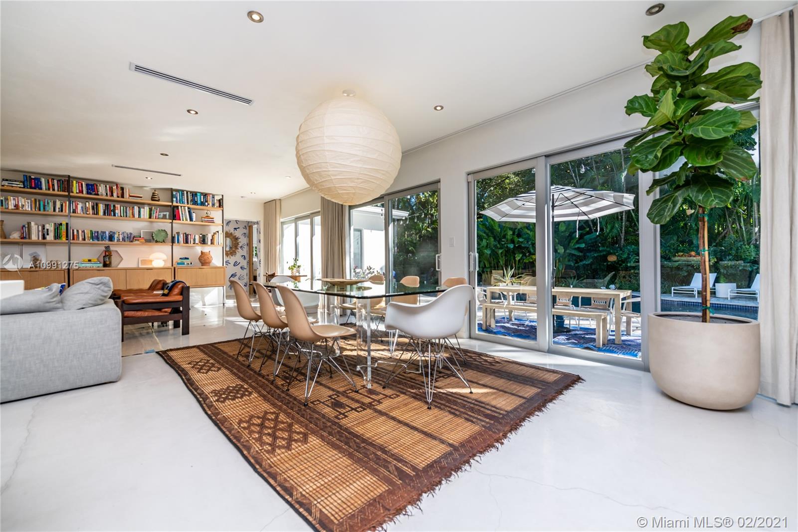An Ode to Joy, Light & Artisanship. Pass thru the owner-designed redwood front doors of this Central Gables delight into a world of wholly original, globally handcrafted design wonders. Aficionados of luxury craftsmanship utilizing natural & honest materials, the current owners spared no expense or effort to create a home which faithfully conjures a mid-century aesthetic with a nod to the ease and comfort of California Modernism. The dining room chandelier designed by Japanese-American sculptor Isamu Noguchi; the entrance wallpaper that British designer Marthe Armitage screen-printed by hand; the lighting created by Italian designer Artemide; small-batch tiles fabricated by L.A. designer Tracey Reinberg - every room enchants, inspires, relaxes & comforts. Home is where the joy is.