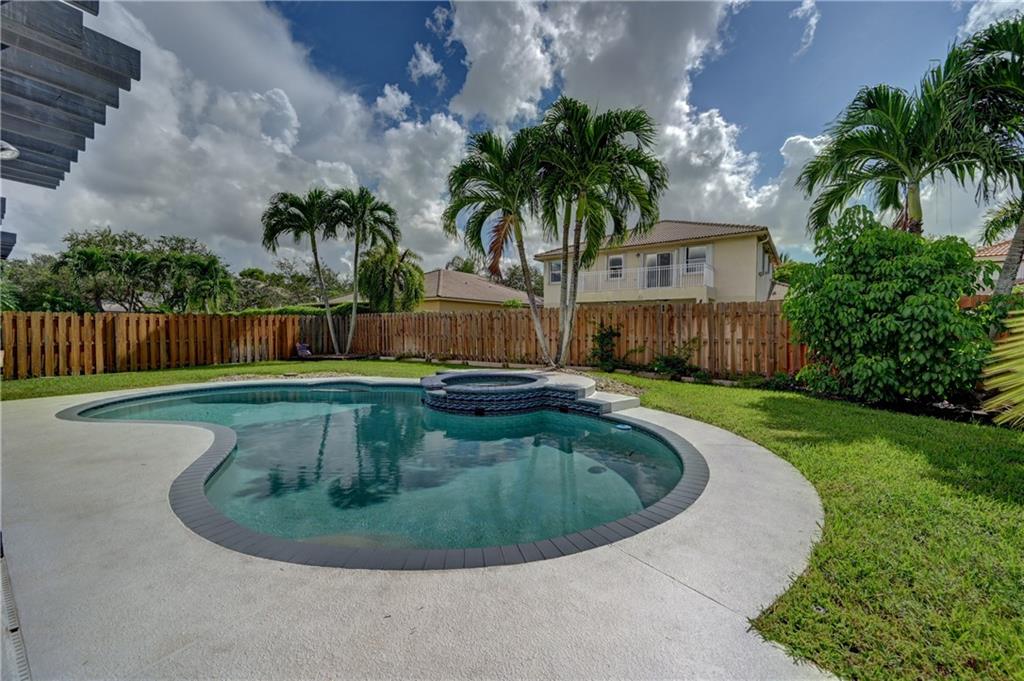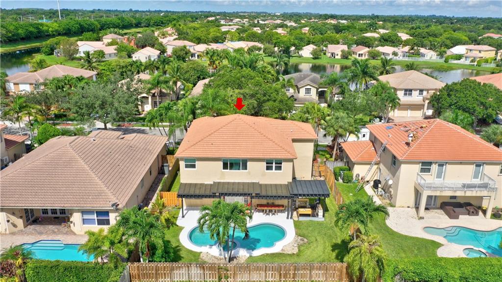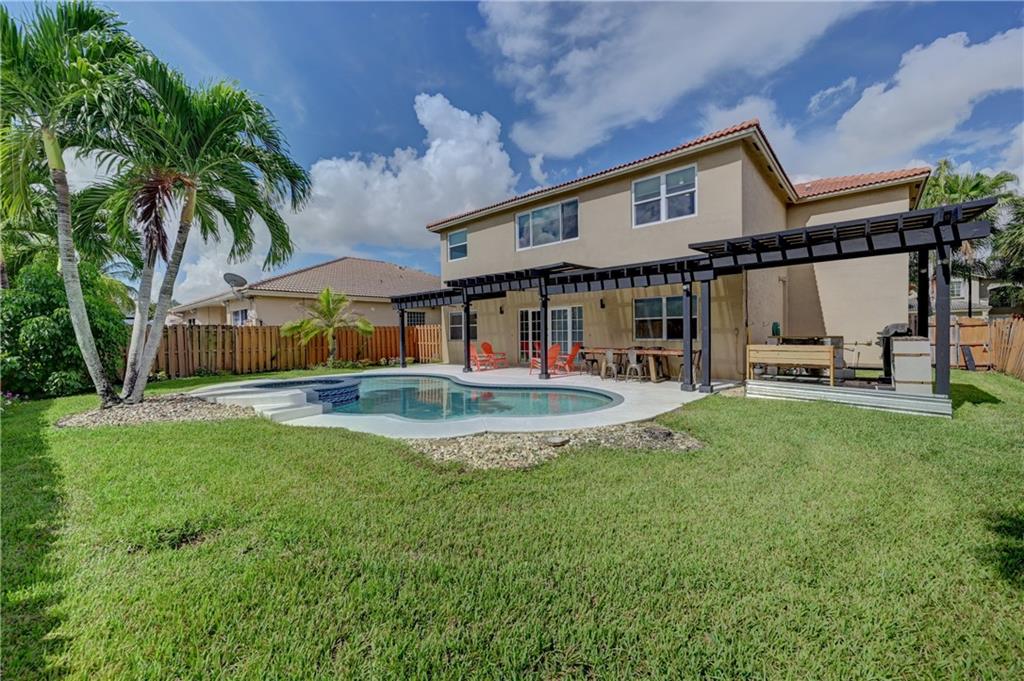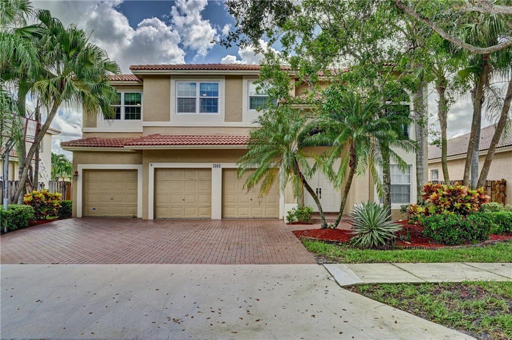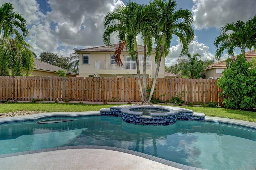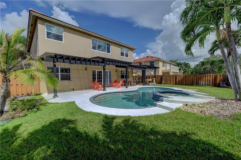 Enjoy the Weston lifestyle in this wonderful family home located in the gated community of Emerald Estates. 2 story 3100 SqFt with 5 bedrooms, 3 baths plus loft. Fully fenced yard and patio, pool and spa, Bar-B-Q area, excellent for entertainment. Master bedroom upstairs, one bedroom downstairs, ceramic flooring on the social areas, carpeted bedrooms, Granite kitchen counters, white wooden cabinets and stainless steel appliances. 3 car garage, IMPACT WINDOWS upstairs, HOA includes security, landscaping and irrigation, amenities, gated community, Guard at gate, community gym, common areas. Close to all A++ schools, shopping, restaurants and major highways.