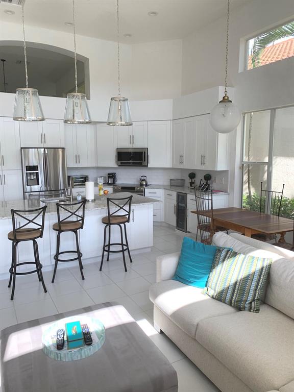 A rare single family 3 bedroom / 4 bath home with pool in Bay Pointe with unobstructed lake view. Bright and spacious. Freshly painted interior. Porcelain wood-like tile in master suite. Master closets have been fully outfitted. The kitchen has been redone with grey quartz counters and all new stainless steel appliances and lighting--even a wine cooler. New A/C, 8 year old roof, new hot water heater. The pool has been recently diamond brited. The required membership fees allow you to enjoy all the amentities at Broken Sound.