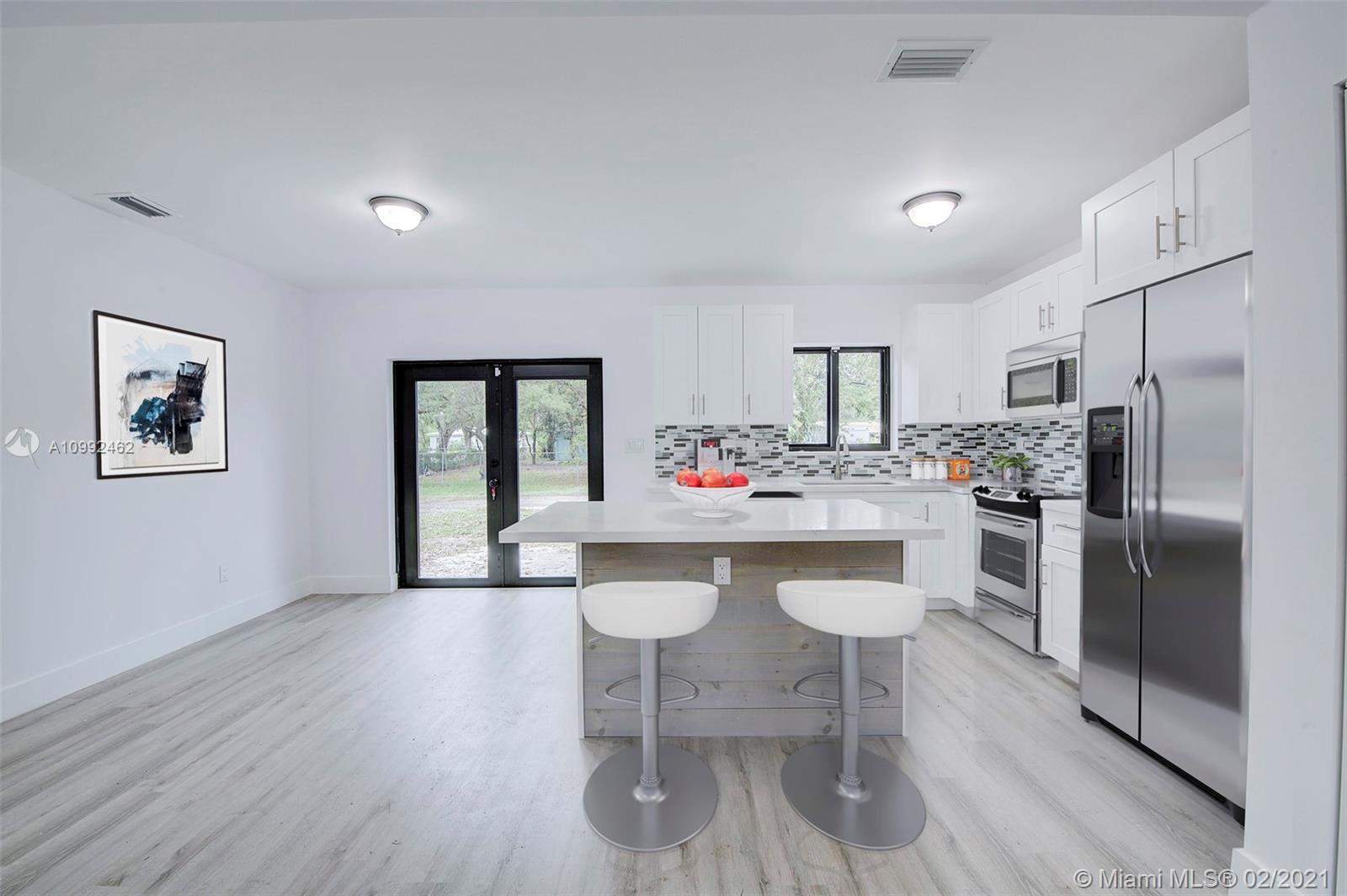Completely renovated 4BR 2 BATH 1400 SQ FT on large 10,350 SQ FT LOT on corner lot.. All renovations done with permits. New Dimensional shingle roof. All new impact windows and doors, New European Shaker cabinets with granite counter tops and Stainless steel appliances including Side By Side Refrigerator, Stove , Dishwasher and Microwave. Newly Remodeled bathrooms with all new fixtures. Waterproof wood vinyl floors throughout. All new interior doors and baseboards. All new plumbing and electrical. Central A/C throughout, New tankless water heater. Washer and Dryer.