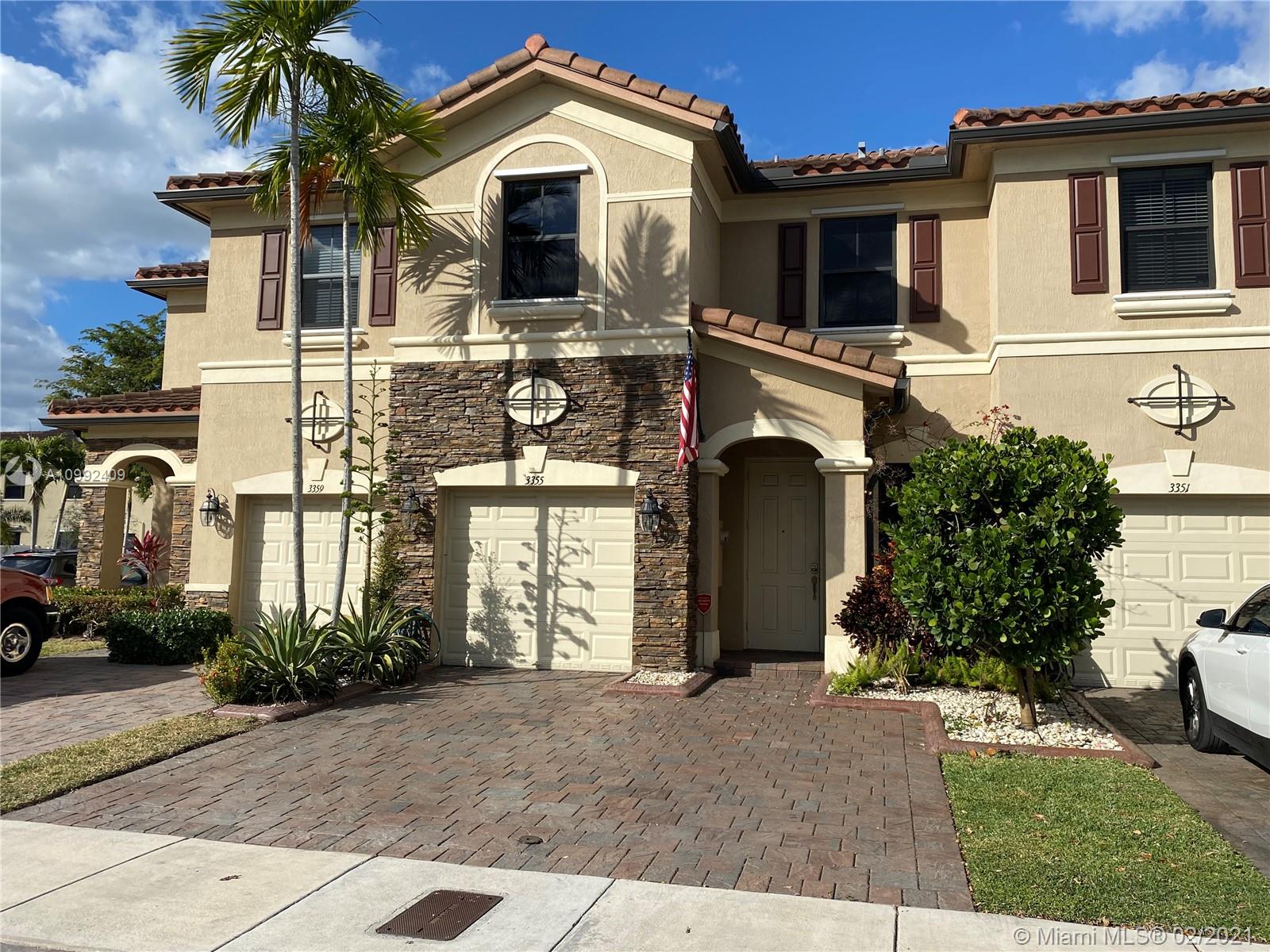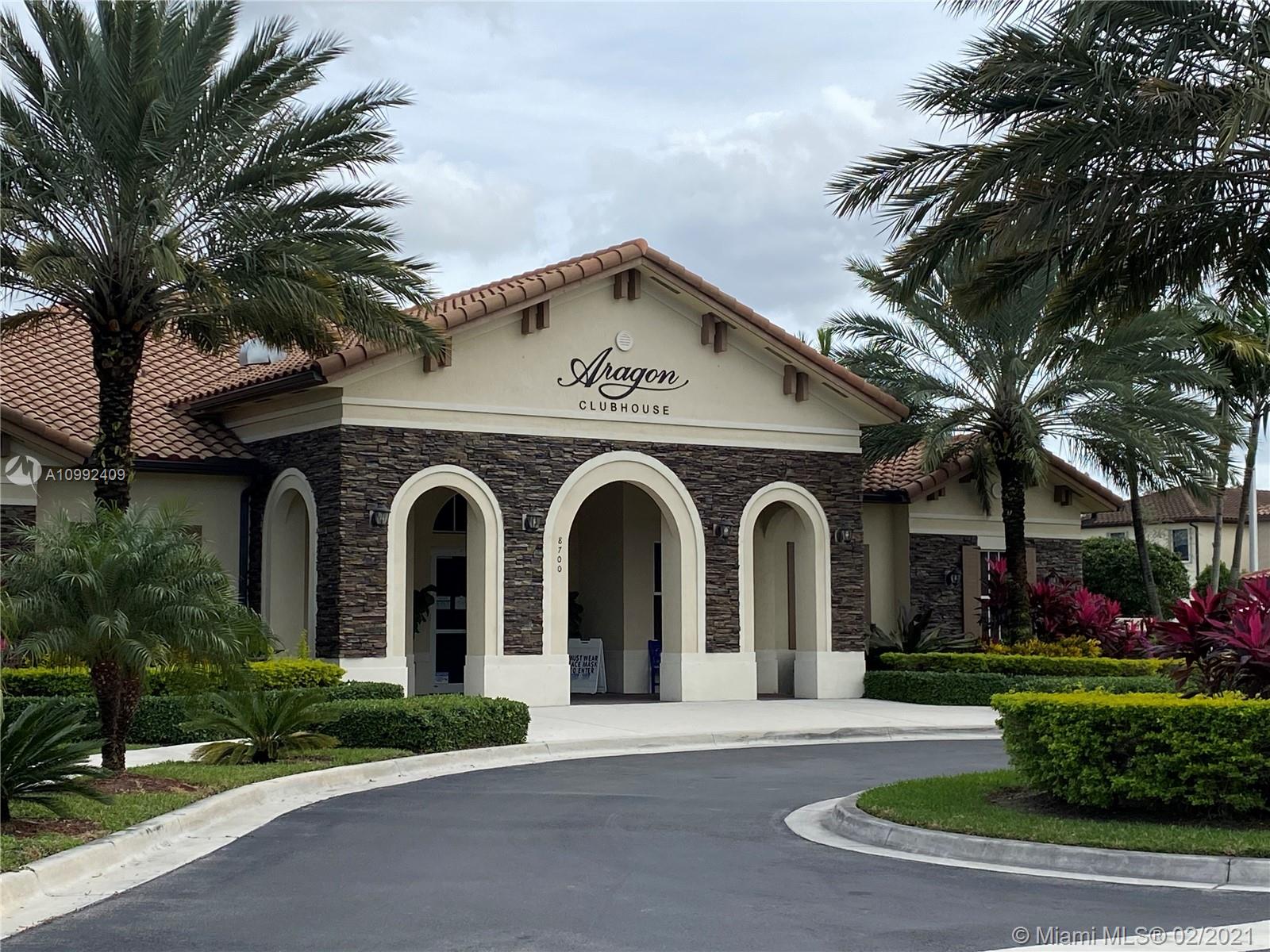 Beautiful modern Townhouse in the gated community of Aragon. Nestled off I-75 (exit 2) between Doral to the south and Miramar to the North. Four bedrooms and two and a half baths, large closets, 1 car garage, granite kitchen counters and snack bar, stainless steel appliances, large family room leading out to a large paved patio/yard. Tile on the 1st floor and dark rich wood on the second. Second floor laundry near the bedrooms for comfort. Master bathroom has Shower and Dual sinks. Gated and secure community with manned Gatehouse, clubhouse, pool, spa and kid's playground. FHA financing available. Shows great. Covid 19 guidelines strictly observed when showing. Strictly by appt. Must enter through Main Gatehouse visitor entrance. Call agent for further information.