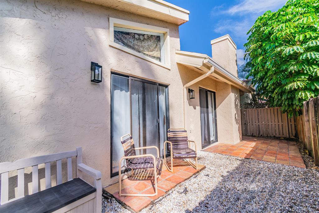 Tranquil Townhome in Boca Raton. Originally built in 1980, this 3BR/2.5BA home has been beautifully maintained and recently updated. Once inside, the interior has vaulted ceilings, an open floorplan, and sparkling natural light. The sizeable living room w/fireplace flows directly into the updated kitchen which has white shaker cabinetry, granite countertops w/matching backsplash, and stainless-steel appliances. Warm weather will beckon you to the fully fenced-in backyard which includes a private swimming pool, terracotta tile patio, gorgeous palm trees, and a covered sitting area. The master bedroom has a sizeable closet and an en suite. Other features: 2-car garage, laundry area, new roof, loft w/wood flooring, short walk to worship, close to shopping, and much more! Call now for a tour!