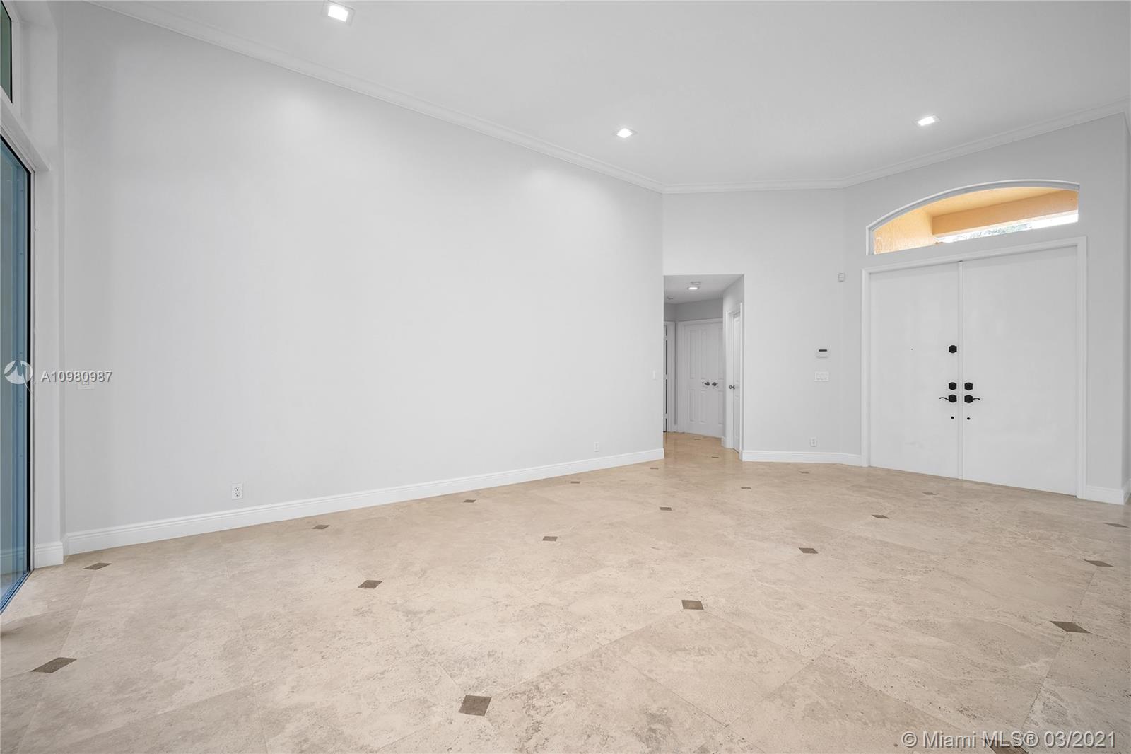 Gorgeous Weston Hills Country Club 5 bed 3.5 bath home. Enjoy the golf course views with space to build a pool! Spacious & bright 3 way split-floor plan w/ high ceilings. New modern european kitchen featuring stainless steel appliances. Upgraded bathrooms. Master Bath with separate dual sinks, walk-in shower and tub. Marble floors with engineered wood floors in the bedrooms. Accordion Shutters. 2 car garage. Furniture and pool virtually staged.