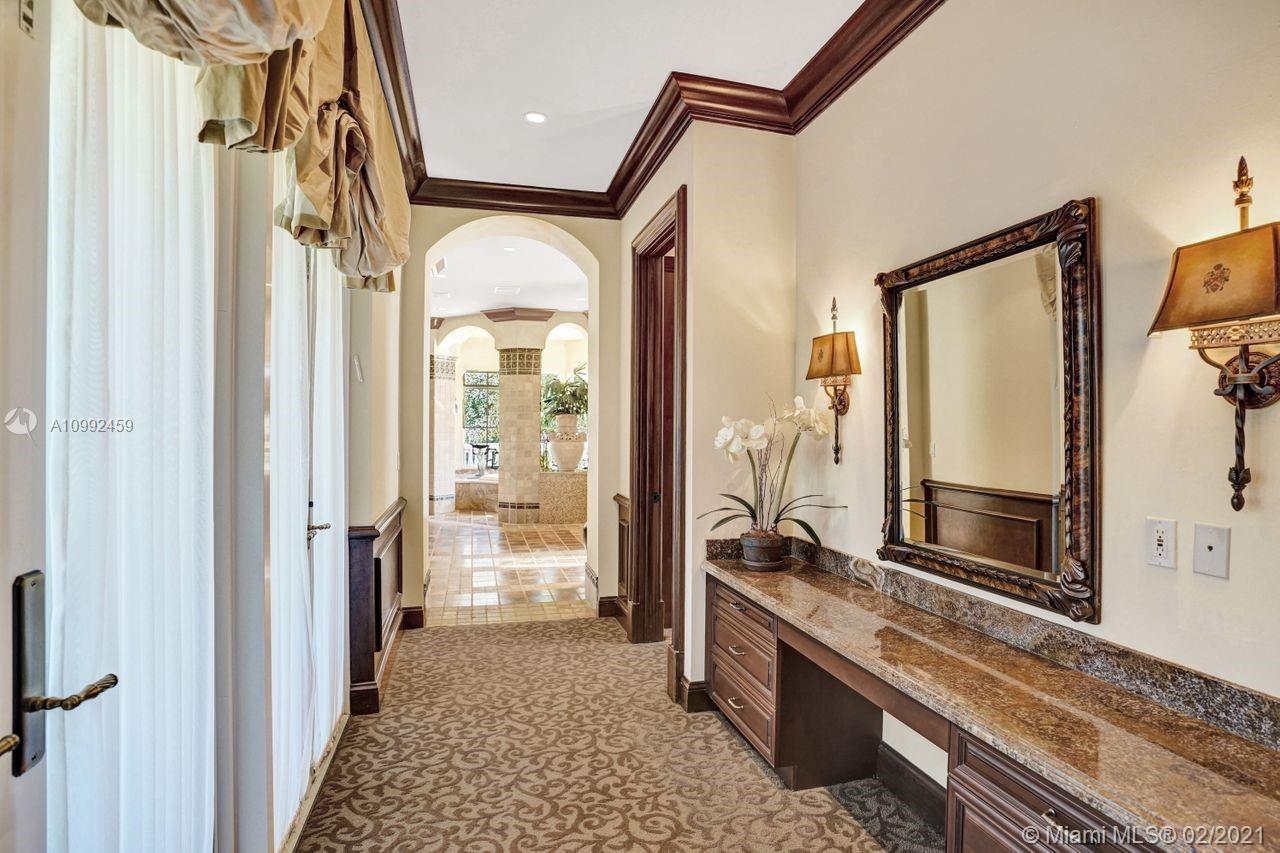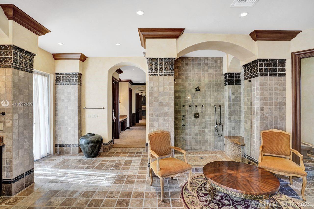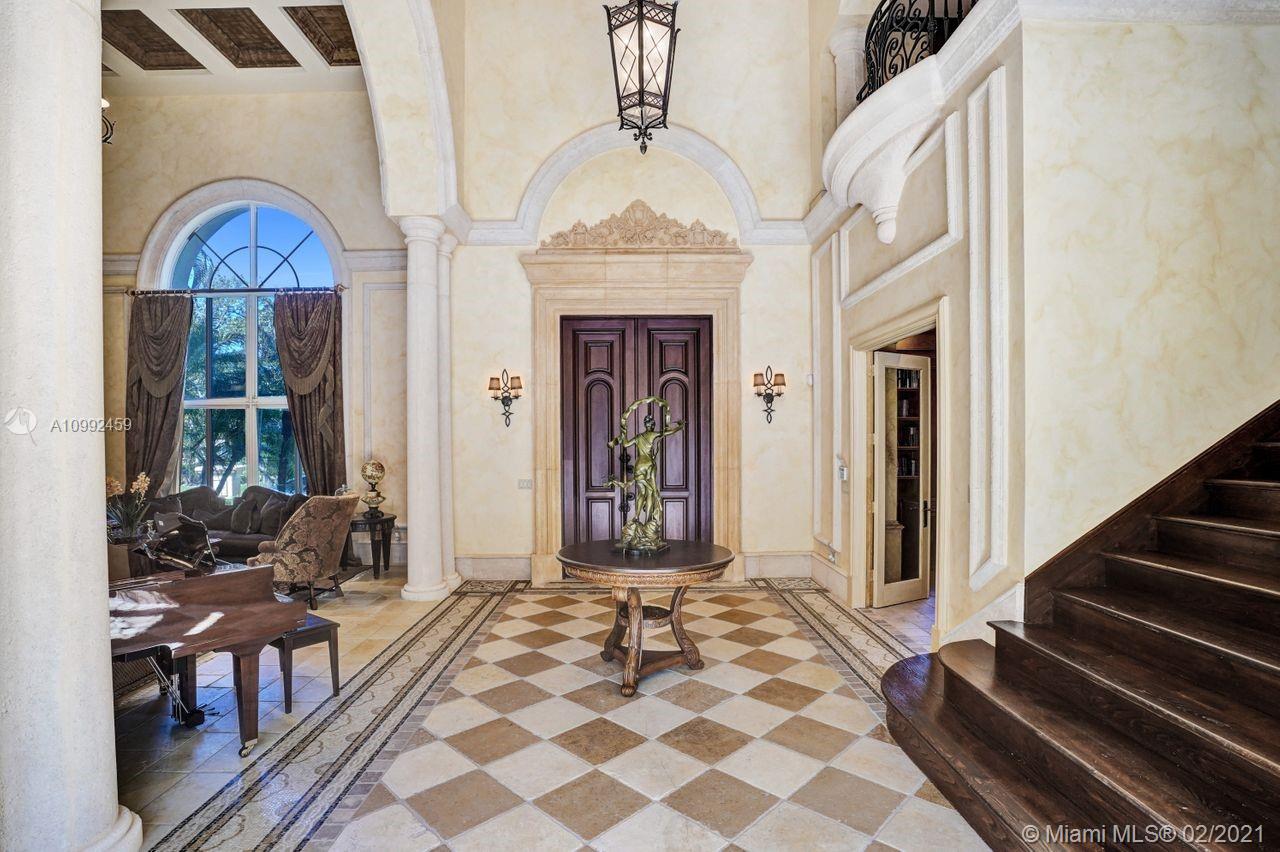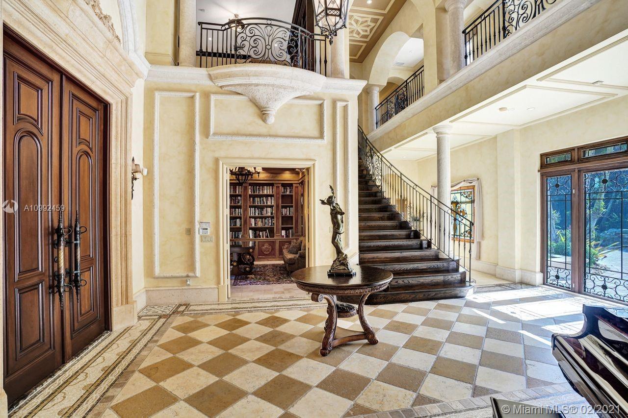 Absolutely MAGNIFICENT LAKEFRONT ESTATE on 2.03 Acres located in the most desirable section of the prestigious Windmill Ranch Estates! First time on the market this Gallagher custom built home has only the finest of details, finishes & craftsmanship. Features include: Grand circular driveway with porte cochere, vast amount of parking & 4 car garage with side entry, 6 bedrooms, 7 baths & 2 half baths, library/office, living rm with soaring ceilings & fireplace, family rm with gorgeous fish tank & built-ins, ultimate chef's kitchen with huge pantry, billiard rm with bar & fireplace, elevator, loft/2nd office, oversized master suite with fireplace & exercise room, guest house & so much more encompassed by stunning Vizcaya like gardens & grounds. Impact glass! Truly one-of-a-kind masterpiece!