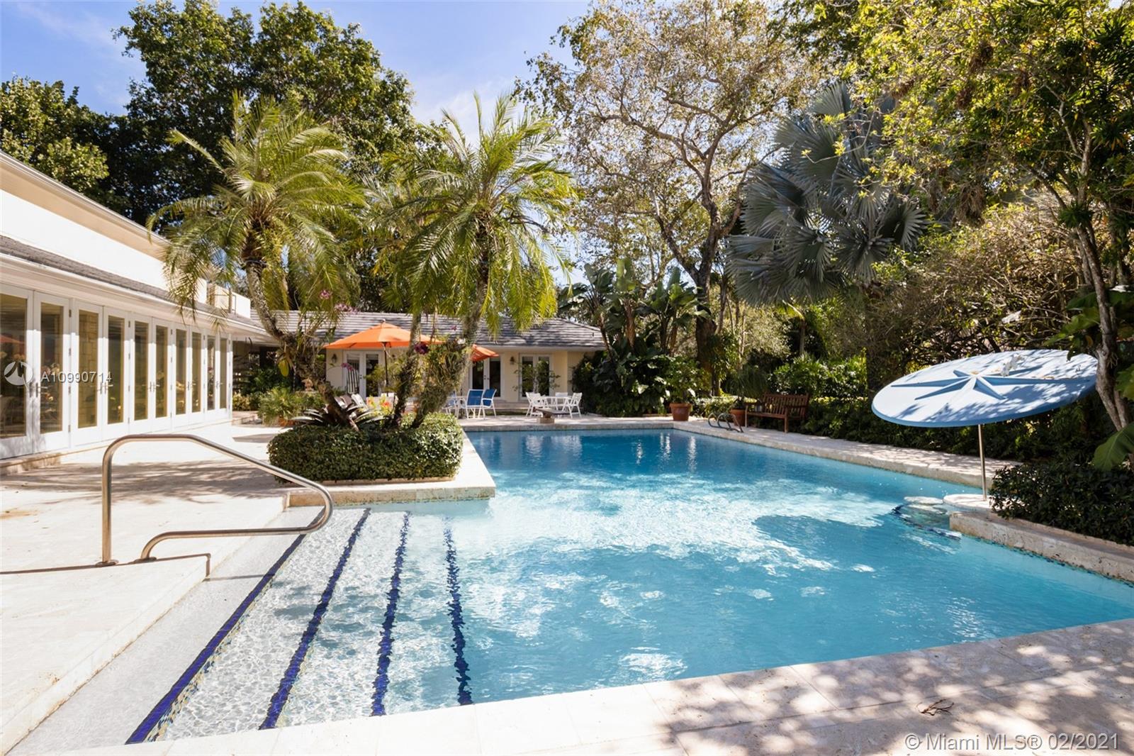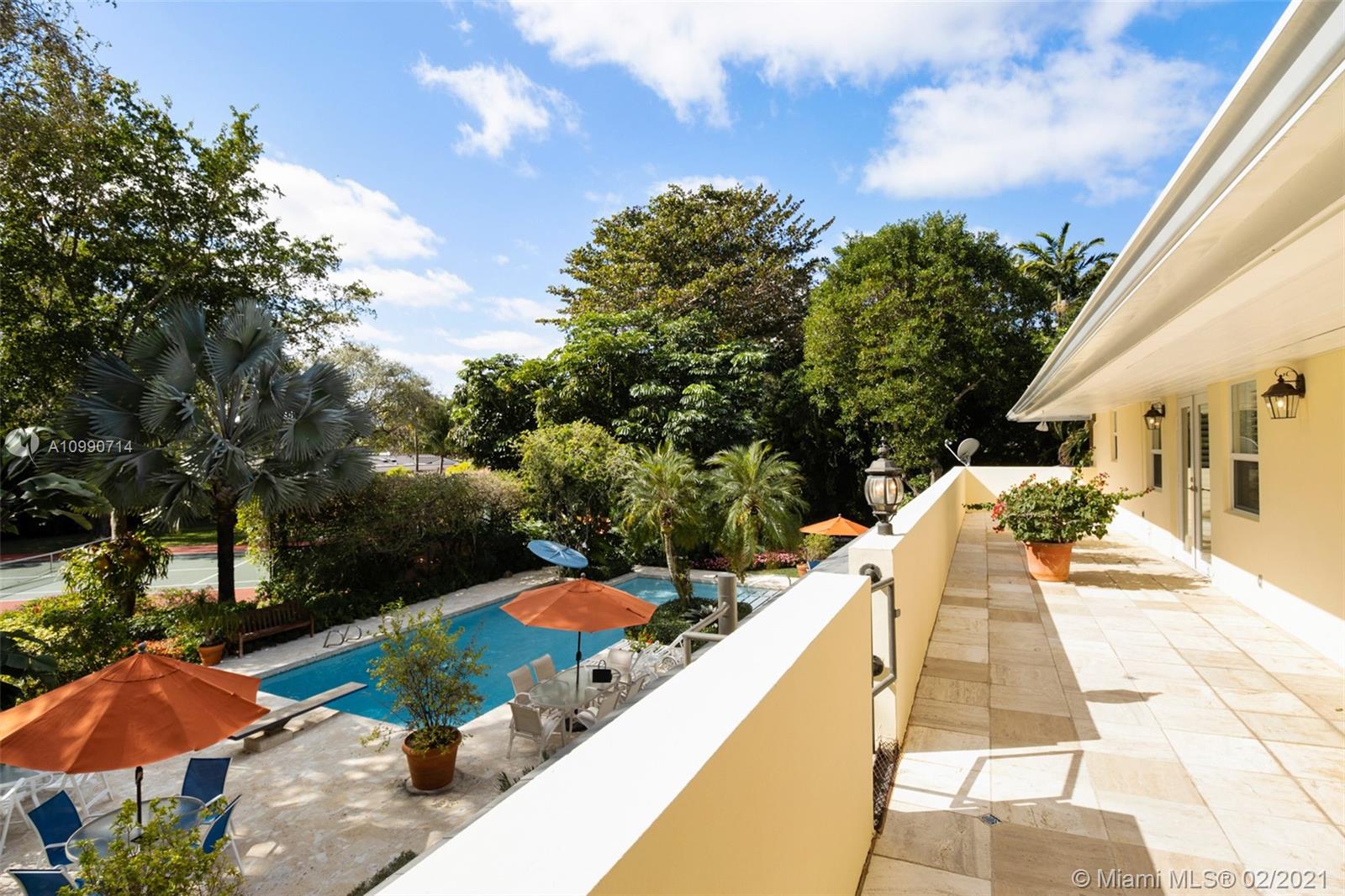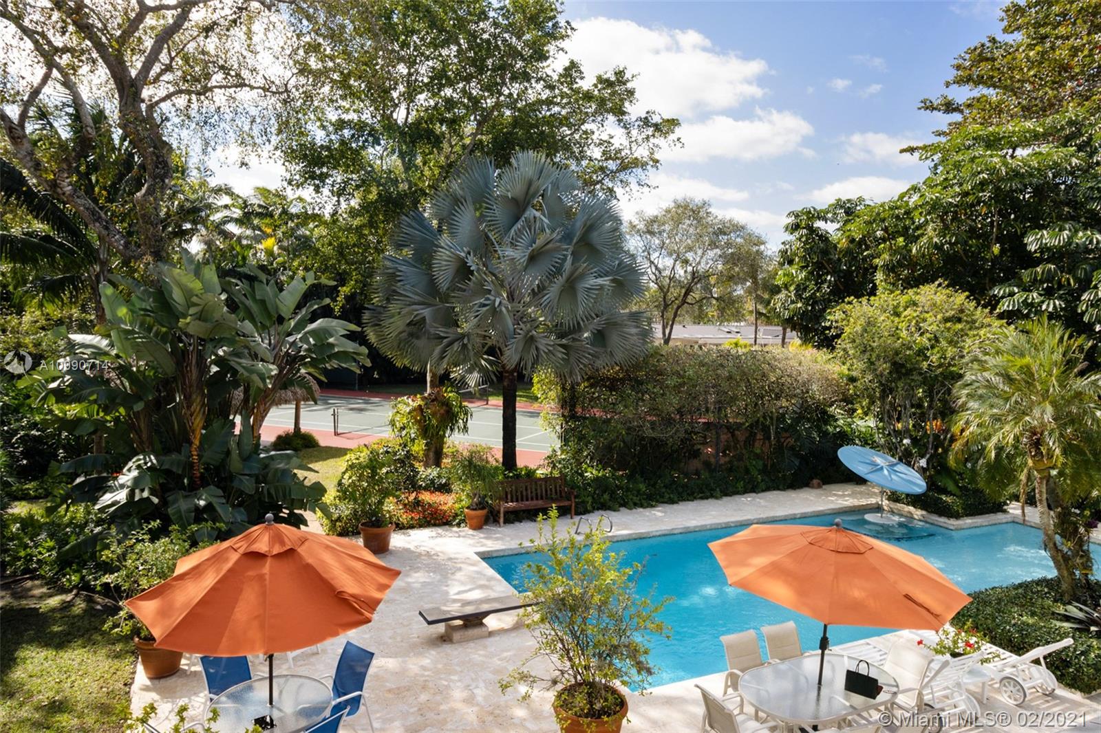 Elegance in Pinecrest. Large updated residence with separate guest house, heated pool and tennis court nestled in 49,222 sq. ft. of lush landscaping. Two story main house has 5 bedrooms, 5 bathrooms, two powder rooms, office, family room with wet bar, separate dining room, kitchen with island, adjoining breakfast room, laundry room and two car garage. Ideal happy home for a large family.