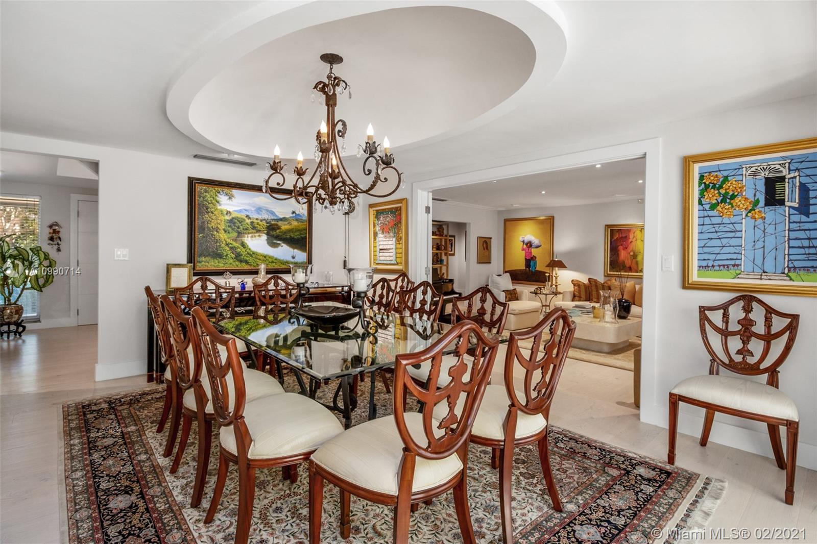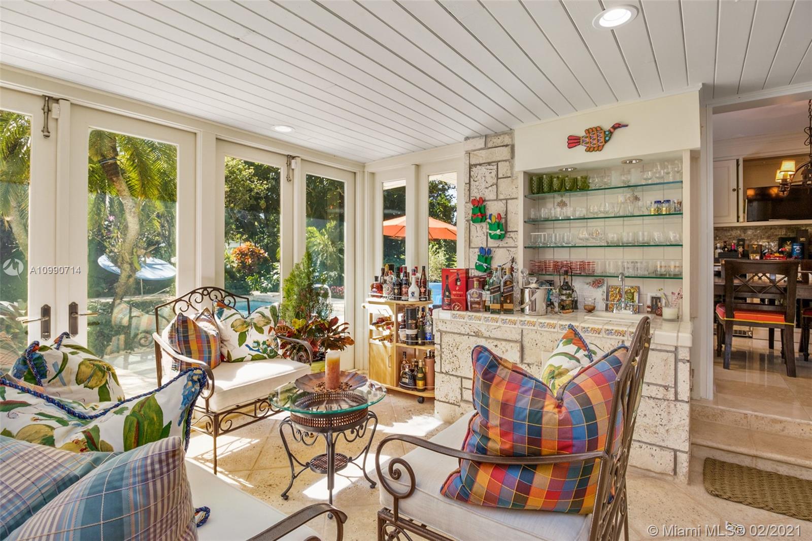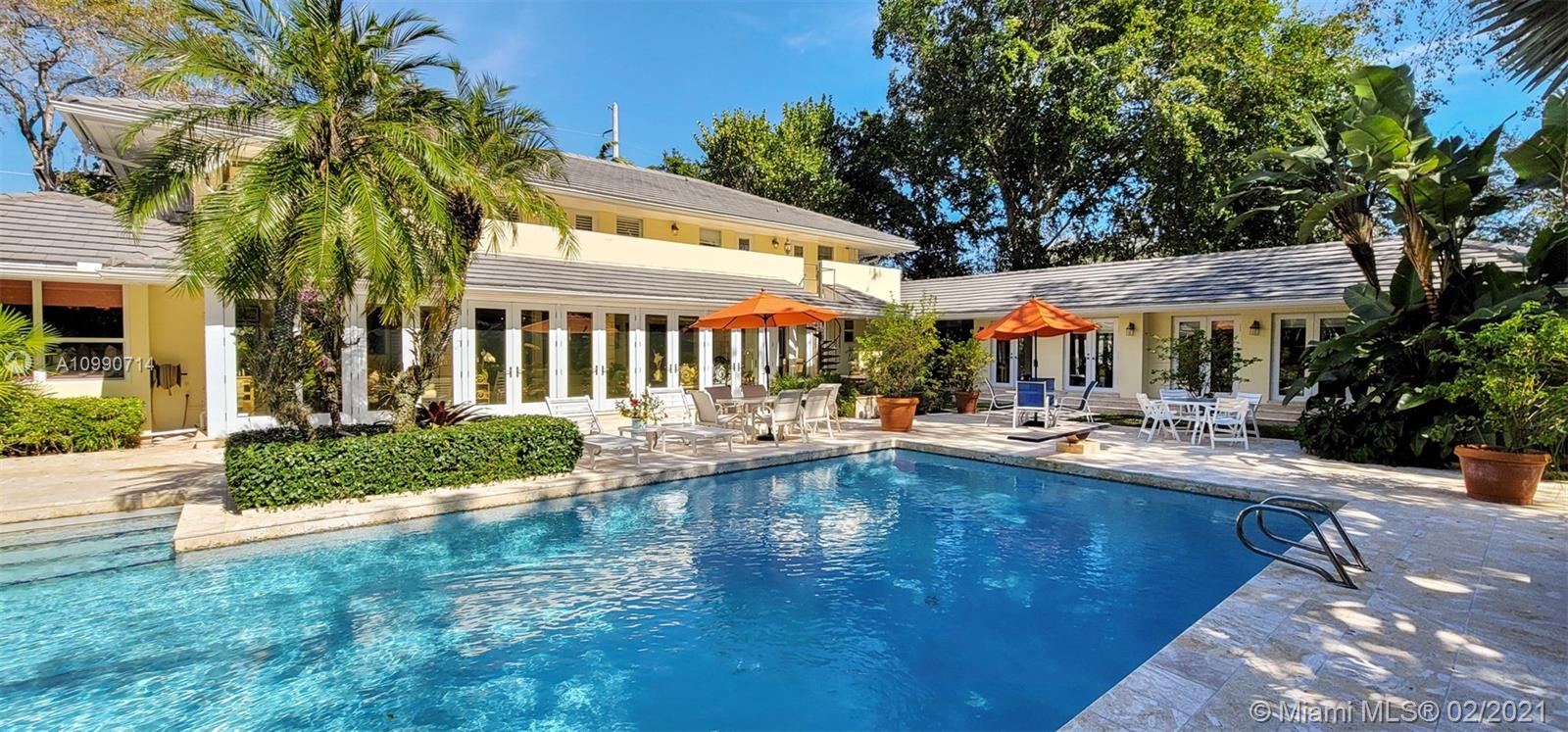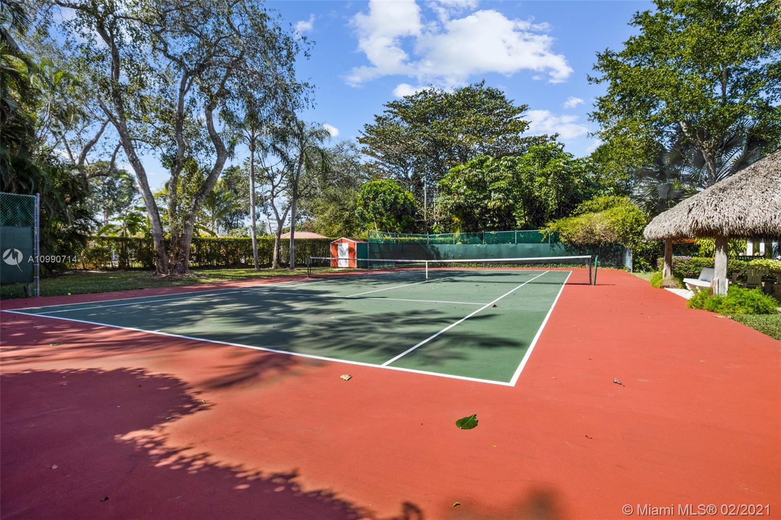 Elegance in Pinecrest. Large updated residence with separate guest house, heated pool and tennis court nestled in 49,222 sq. ft. of lush landscaping. Two story main house has 5 bedrooms, 5 bathrooms, two powder rooms, office, family room with wet bar, separate dining room, kitchen with island, adjoining breakfast room, laundry room and two car garage. Ideal happy home for a large family.