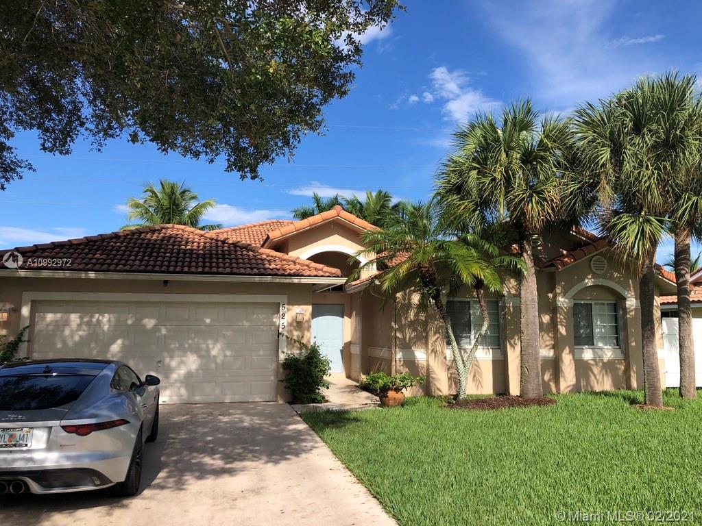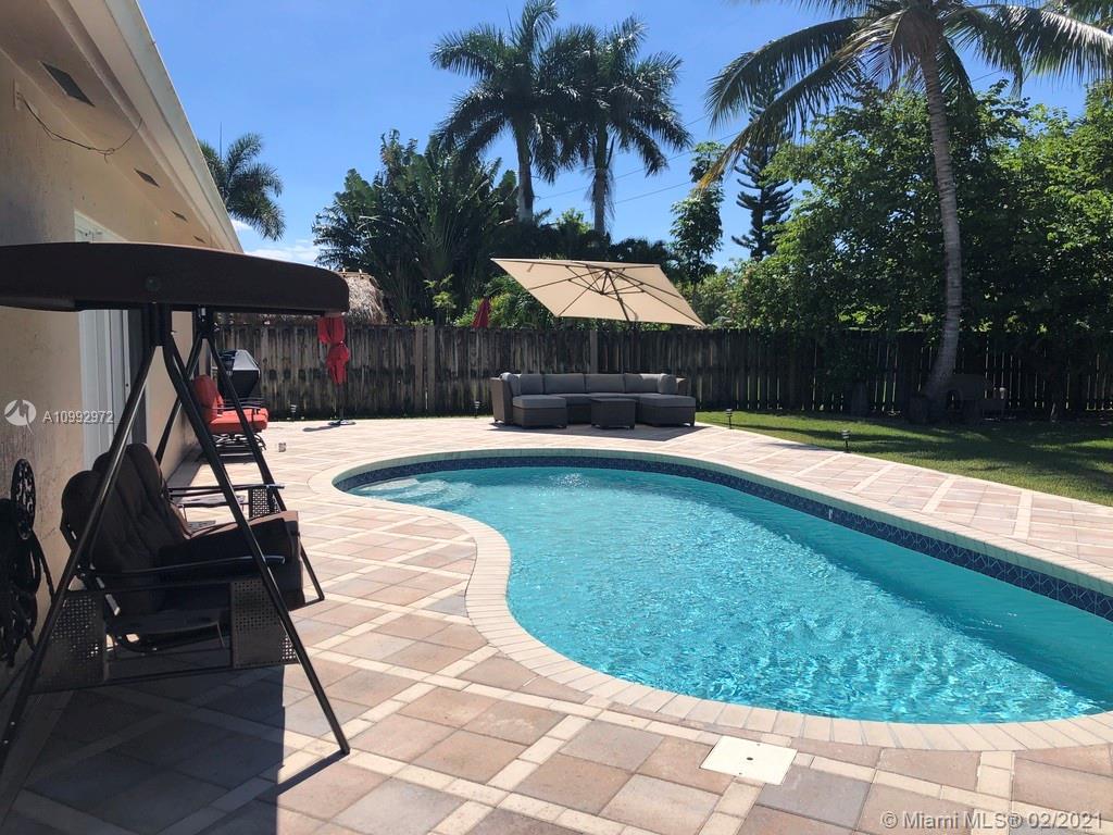 Stunning Property !! Huge lot with backyard bordering on 2 sides a canal. Very relaxing and spacious unscreened pool area and back garden that is fenced in with herb garden. Vaulted ceilings in the living and great rooms, master bed overlooking the pool area. Wonderful kitchen nook and island kitchen counter. 3 bedrooms on the opposite side to master for privacy. In 2017 the pool was resurfaced with Diamond Bright, new pool brick pavers and air conditioner. A + schools and a heavenly neighborhood to live in. Quiet and peaceful and walking distance to Publix, Starbucks, shops, Parks and schools. Plenty of coconut trees to enjoy.