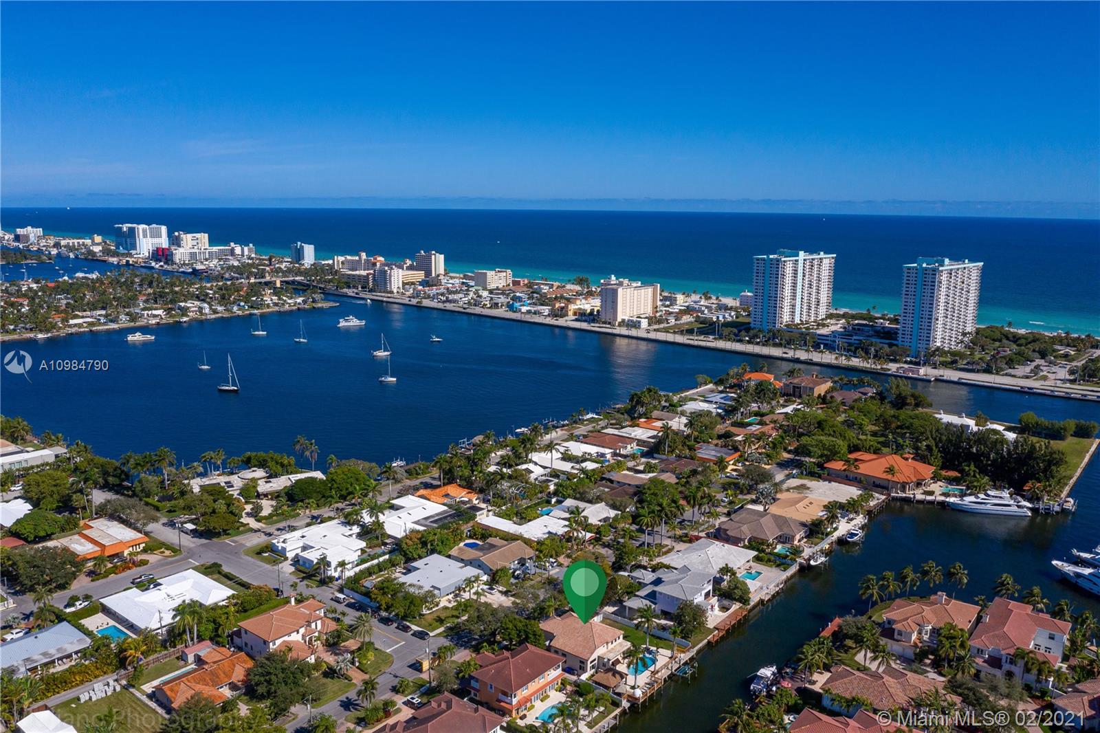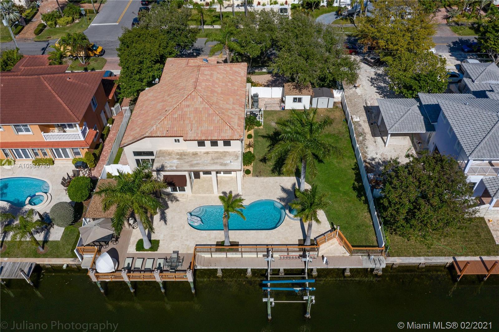 Beautiful upgraded waterfront home features 4bed/3.5bath + office and 2 car garage. Oversized lot 12,100 sq.ft. No fixed bridges, direct ocean access, private deck (100 foot dock & 25,000 lb. boat lift). Hurricane impact windows & doors. Fully equipped, open kitchen & family room. Vaulted ceilings. Formal dining room & breakfast area. Master suite with a walk-in closet & bathroom on a ground level. Two-car garage converted to a big kid's playroom/theater (can be easily converted back). Huge backyard with brand new pool deck, heated pool & jacuzzi. Cabana, built in grill, mancave with large screen TV and two sheds. Over $250K of interior & exterior upgrades! Located 5 min from the beach, grocery stores, schools & restaurants. All showings will start on Saturday 02/06: OPEN HOUSE 11AM-3PM.