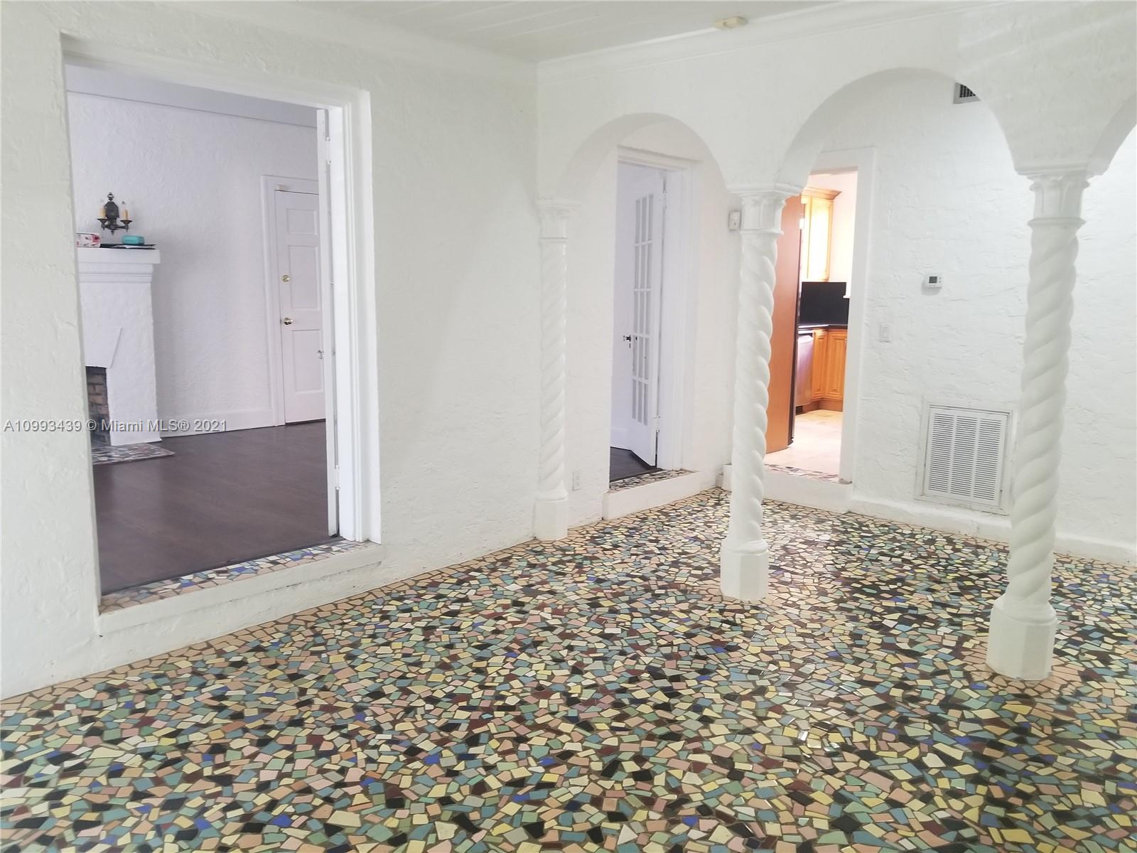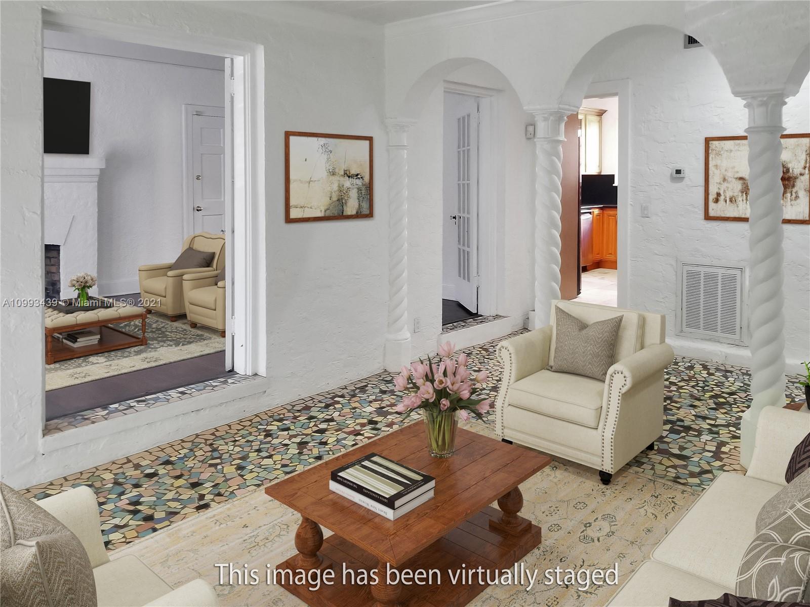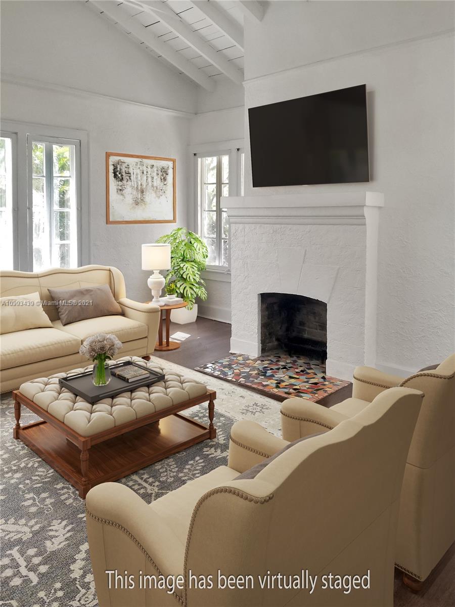 Impressive home located in the highly desirable North Gables neighborhood. French doors and an abundance of windows bring in lots of natural light to all the rooms. Cozy Florida room with original mosaic tile floors and fireplace in the living room only add to the character and charm of the home. Modern updates include a renovated kitchen with SS appliances, large master bedroom with private courtyard, spacious walk-in closet and generous master bath with a claw foot tub. Close proximity to all the shops & restaurants of downtown Coral Gables and only a few steps away from the Granada Golf Course.