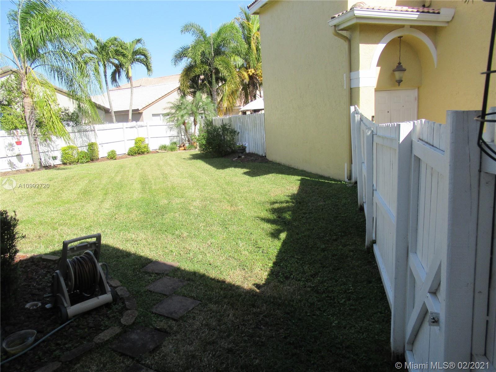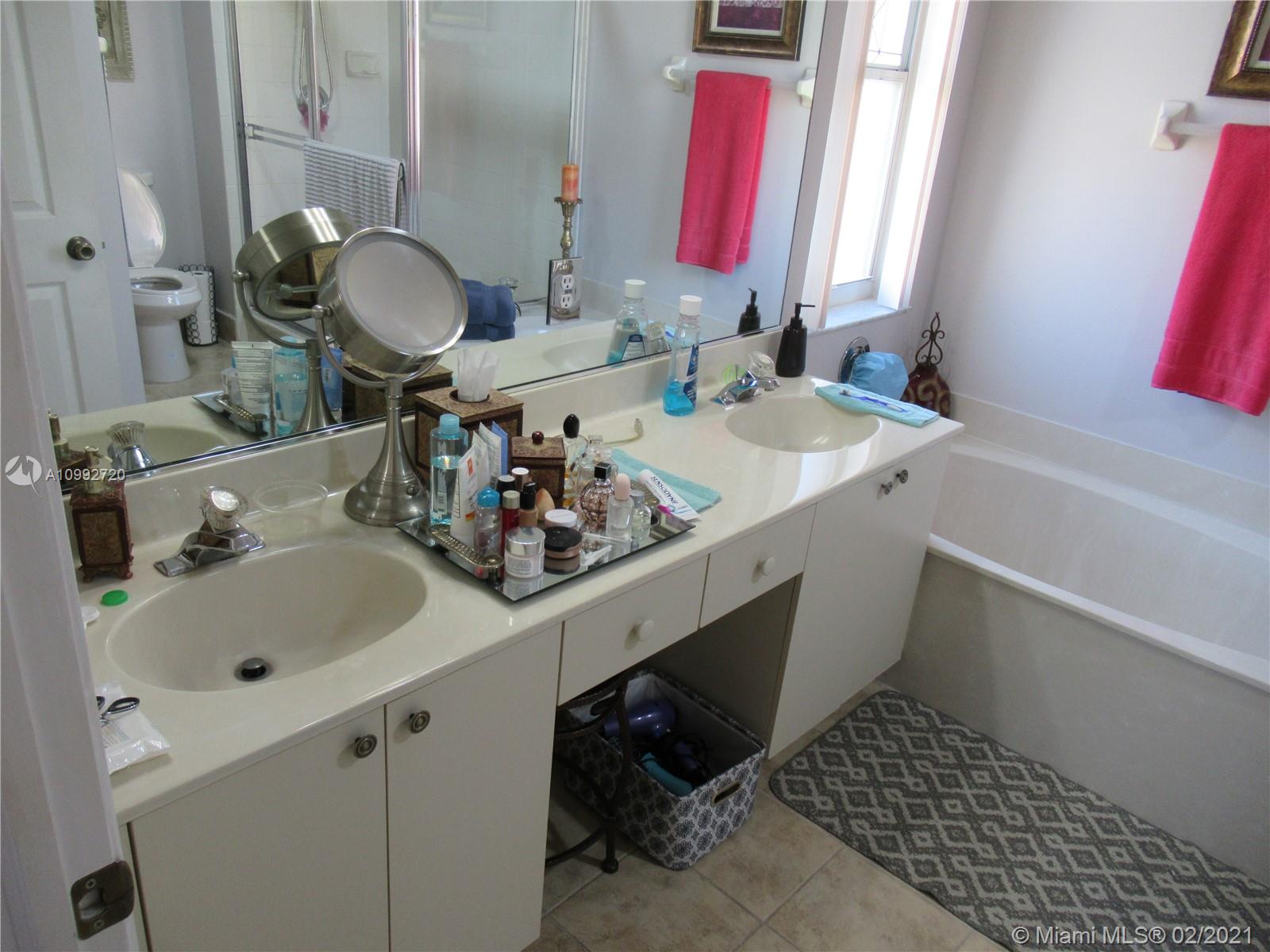 Extremely Gorgeous 5/3 1/2 home in a quite and safe cul-de-sac in neat condition, elegant driveway with stamped concrete and landscape, tile floors on first floor, laminated stairs and second floor, s/s appliances, A/C condensing unit less than one year old, extra lot, back yard with large entertainment area, laundry room with sink, two car garage, all accordion shutters, two master bedrooms. Great location to A+ schools, shopping centers, hospital, easy access to highways and around 23 miles from the two mayor airports.