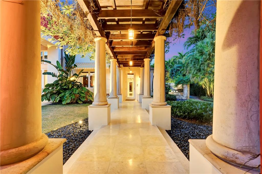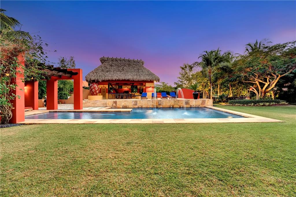 Impressive estate, featured on the cover of Florida Design's & in Florida Architecture, offers palatial outdoor living & entertaining space that won't disappoint. As you enter through the towering mahogany doors into a two-story foyer, you are graced with Jerusalem stone surfaces indoors w/ Turkish limestone outdoors. Crafted with the purpose of combing formality with whimsical charm, the main house is accompanied by a guest building with two bedrooms & a gym, an expansive courtyard and a palapa w/ loggia and pool area that is sure to be the center for entertainment! Chef's kitchen w/Wolf appliances, sub-zero refrig, etc. too many details to list. This stunning home offers gracious living on a 1.25 acre cul-de-sac lot w/lush tropical landscaping- a dream home for the most discerning buyer!