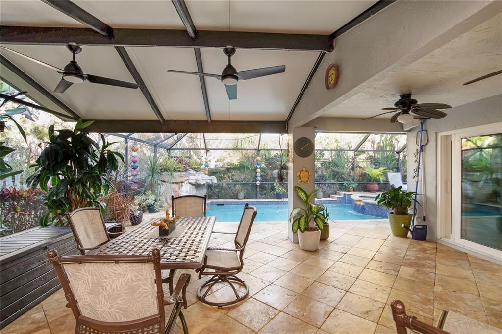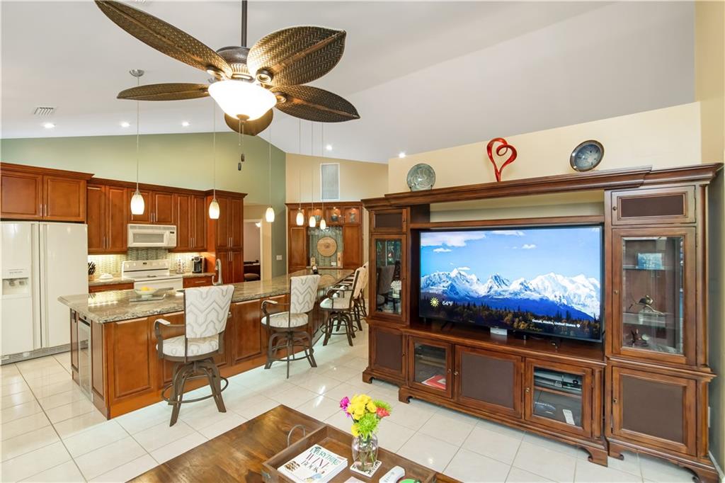 Fall in love w/this stunning 4/3 home. Beautifully remodeled kitchen w/huge granite island, under mounted & over cabinet lighting, dry bar, gorgeous pendant lighting & loads of cabinetry. Soaring ceilings. No popcorn. Split floor plan. Step outside to your private, fenced tropical backyard-Beautiful Palms, Bamboo, Plumeria, White Bird of Paradise, & more. Dome screen pool w/spill over spa. Travertine marble pool deck & walkways Fully automated pool & spa w/Aqua Link technology. New roof being installed 2021, new super gutter w/leaf guard. Garage door-2020 w/ My Q smart phone technology. W/D- 2020, Hot wtr htr-2020. High impact windows & doors, front door accordion. 6 zone auto sprinkler syst. This home has it all! NOTE: Taxes include non Ad Valorem tax $4,619.13 for GRC PACE GREEN CORRIDOR