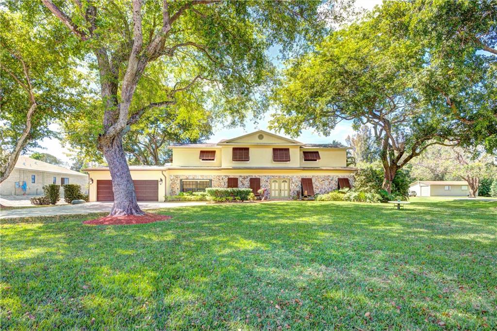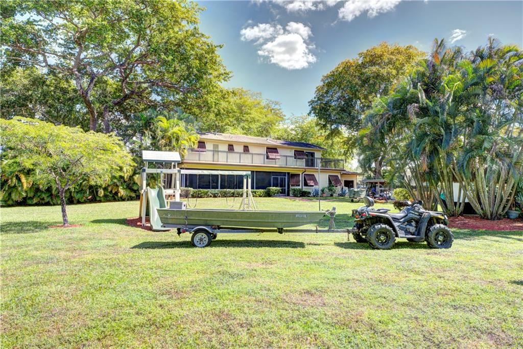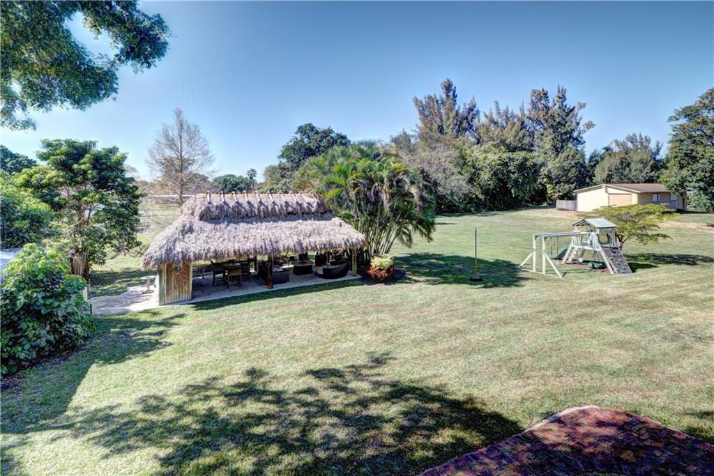 Rarely available LARGE 3700+ square foot home in Southwest Ranches! This 6 BEDROOM home is on over 1 acre! Main house has 5 bedrooms 2.5 baths. Guest house has 1 bedroom, full kitchen, large living room & 1 full bathroom. The main house has custom wood kitchen cabinets, pella doors in family room & kitchen, accordion shutters surrounding entire HUGE screened patio, bahama shutters on other windows, 2 laundry rooms (main & guest), HUGE 30x17 Tiki Hut (electric, fridge, freezer, water, fans & tv), reverse osmosis system, Xlarge stove, SS appliances, chicago brick pavers pathways outside of home, mango tree & more! Main house & guest house are connected by amazing screened in back patio! Sundeck on 2nd floor! Shed 11'6" w/electric, lights & garage door. Shed 8x8 w/lights & electric tool shed.