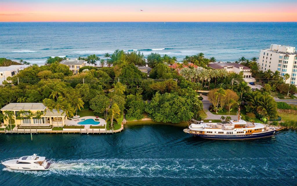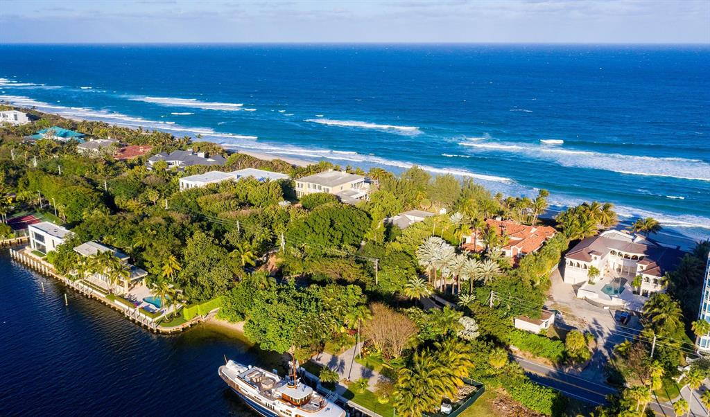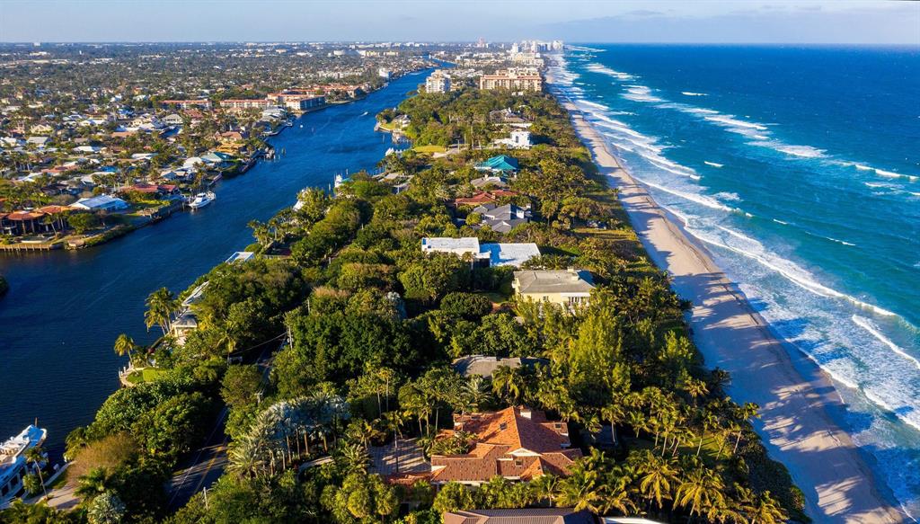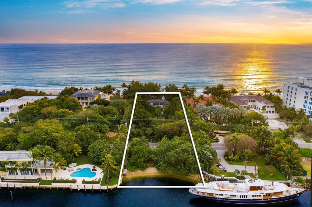 Take advantage of an incredible opportunity on famed Hillsboro Mile, known for having the most exclusive properties in all of Broward County. On this 1.23 acre/53,544 square feet property you can enjoy the best of both worlds, with your very own 115 feet wide beach front facing the Atlantic Ocean, and then another 115 feet of deep-water/no wake dockage facing the Intracoastal. The property is among one of the deepest lots with a depth of 460 feet, which gives you more privacy. Located on very desirable high elevation, you will enjoy the sunrise over the ocean and the sunset over the intracoastal! This property with its natural landscaping and many trees will make you feel at home and at peace, also knowing that The Town of Hillsboro has its very own police that patrols the roughly 3-mile