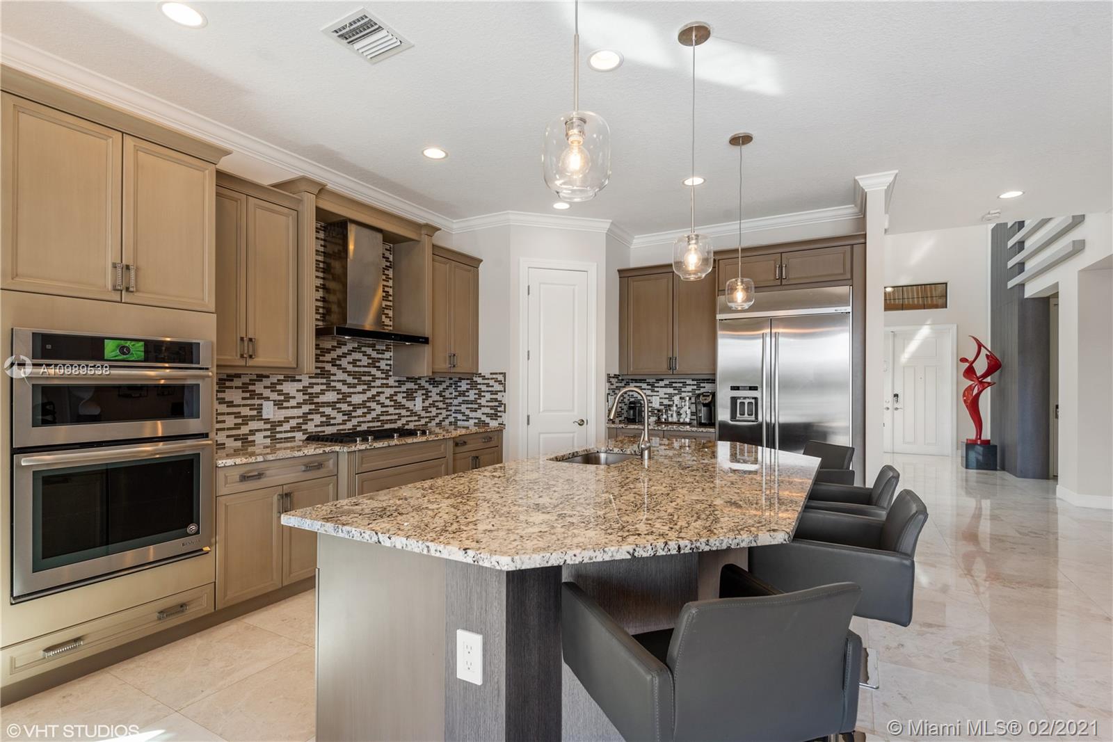 MEDITERRANEAN LIVING IN BRAZILIAN MID-CENTURY INSPIRED LAKEFRONT HOME IN HERON BAY! Extraordinary 5 beds + 5.5 baths nearly 6,000 SQFT on extra wide waterfront lot. Polished Marble Floors & 22' Ceiling in Living Rm Jewel Box Powder Rm w/Wood Pedestal Sink Custom Built-In Architectural Designs adorn Living & Family Room Jenn-Air Stainless & Natural Gas Cooktop 42" Cabinets & Quartz Countertops in Kitchen Full Pool Bath & 5th Bed outfitted as Home Office w/Built-In Desk Wet-Bar and Ensuite. Upstairs Owner's Retreat w/Tray Ceiling Custom Closet Water Views & Spa-Like Bath. Loft w/Hardwood Additional Guest Bed w/Ensuite and 2 Guest Beds & Guest Bath. Summer Kitchen & Wrap-Around Pergola Privacy Screens & Outdoor Shower by Elementar Outdoor Living. 32' Palladian Style Pool & Spa & more!