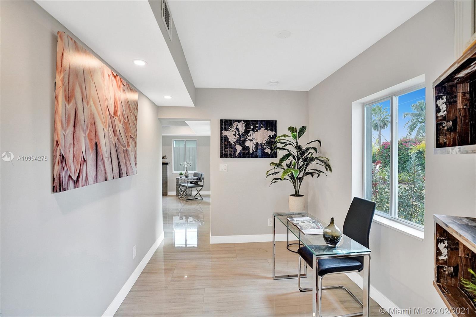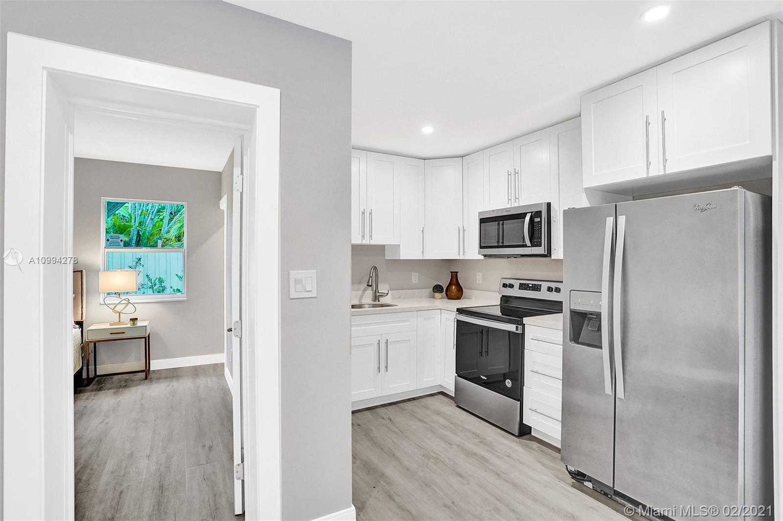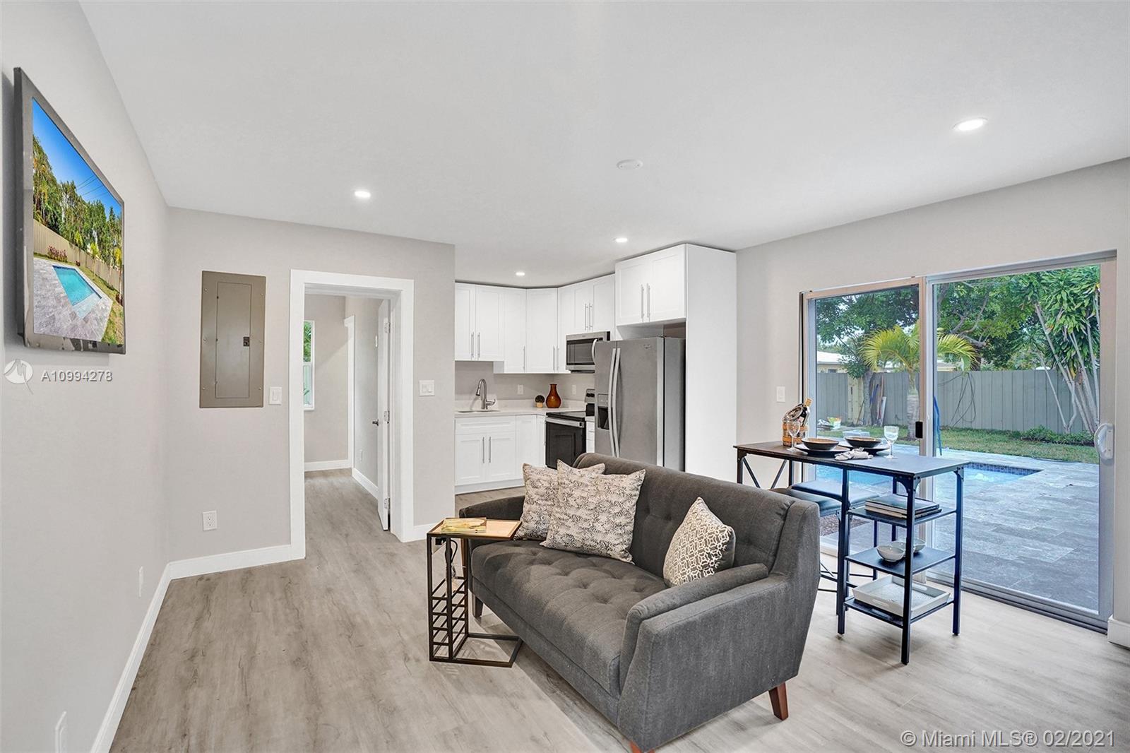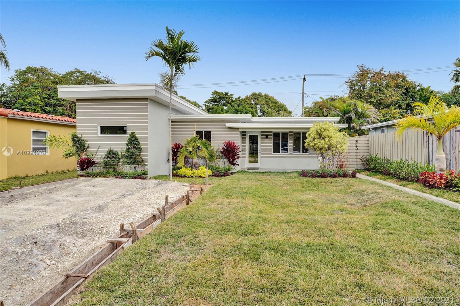 "Mid-Century Modern Duplex" consisting of a 2/2 & 1/1 has been re-designed & re-inspired to the present, by “Griffin Designs of Ft. Laud”. Enter the 2/2 with a New Custom Kitchen w/Quartz countertops. Top of the line S/S Appliances & a Skylight that radiates natural sunlight into the home. New fireplace in the living room. New Master Suite w/ 14 foot hi volume ceilings, Dual custom vanities, & an oversized shower plus 2 closet. Your master suite invites you to a private tropically landscaped backyard & newly fenced Plus a New resort styled pool.The1/1 is just as fabulous as the 2/2! Great investment for Air B & B," snowbird retreat" Professionally Staged By: Florida Stage Hands & Design's Of Wilton Manors.