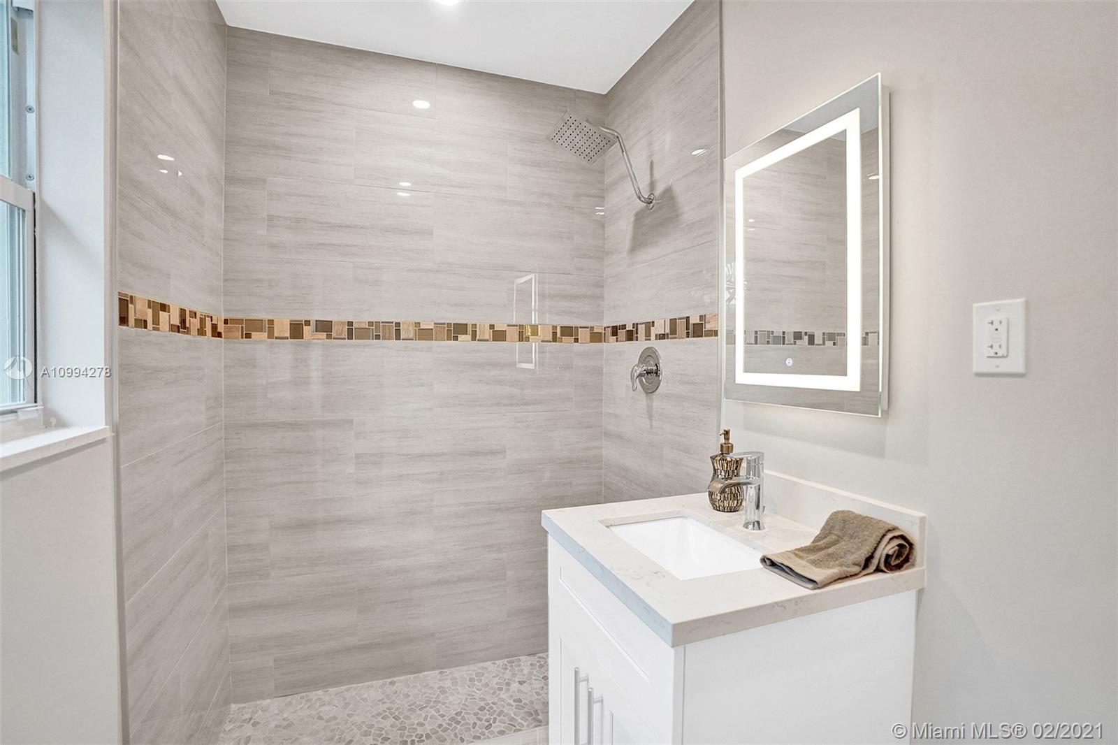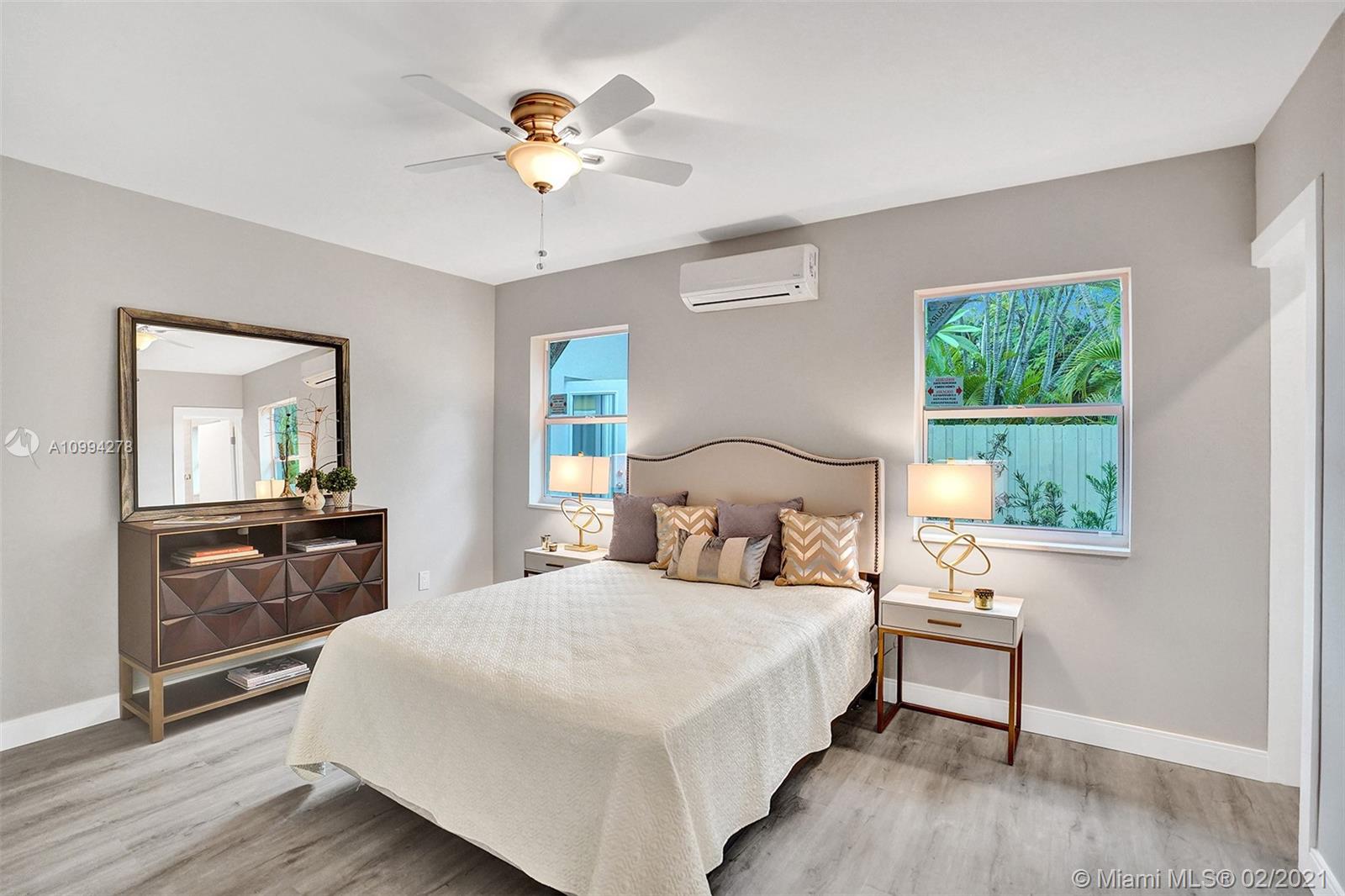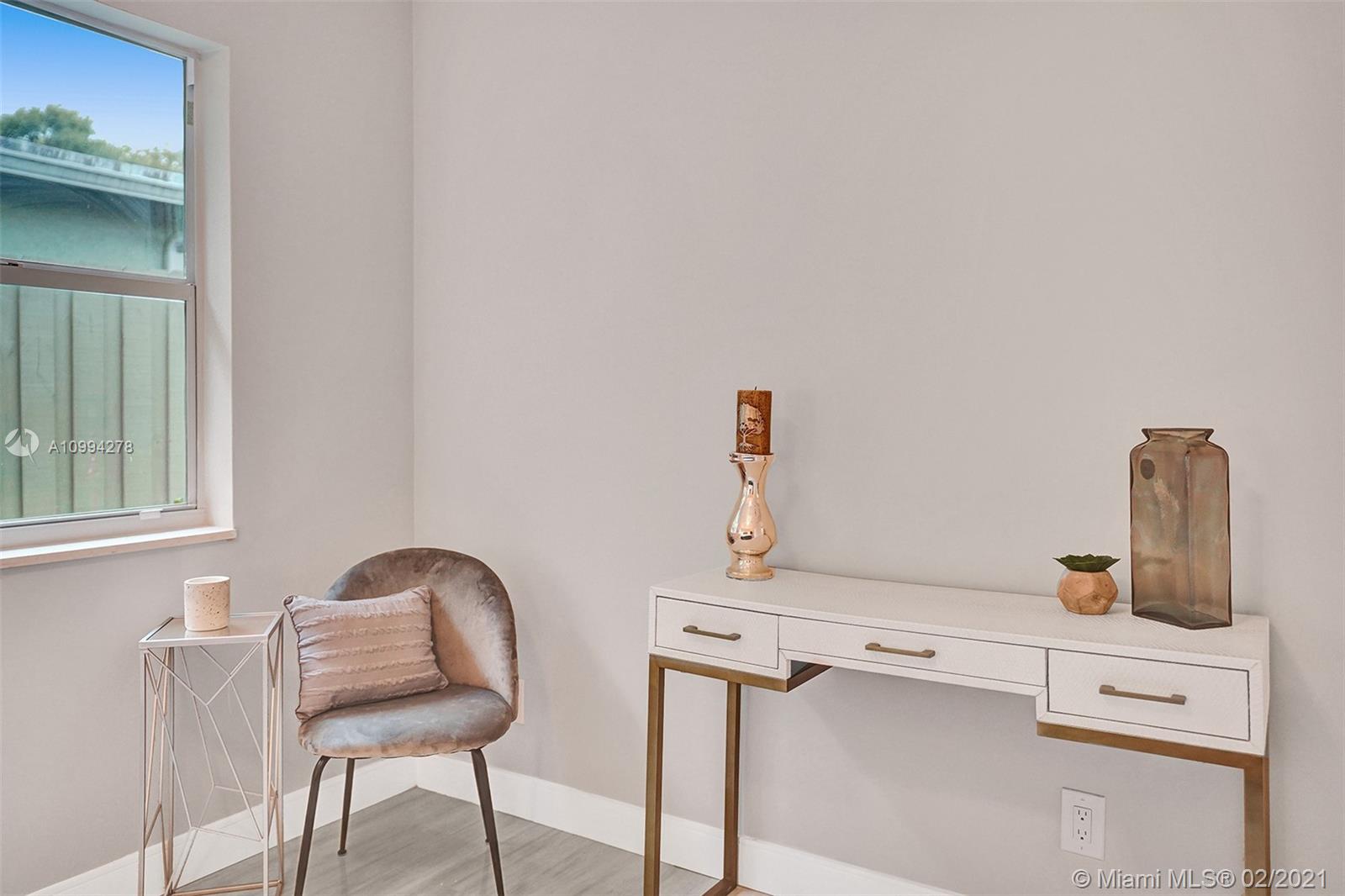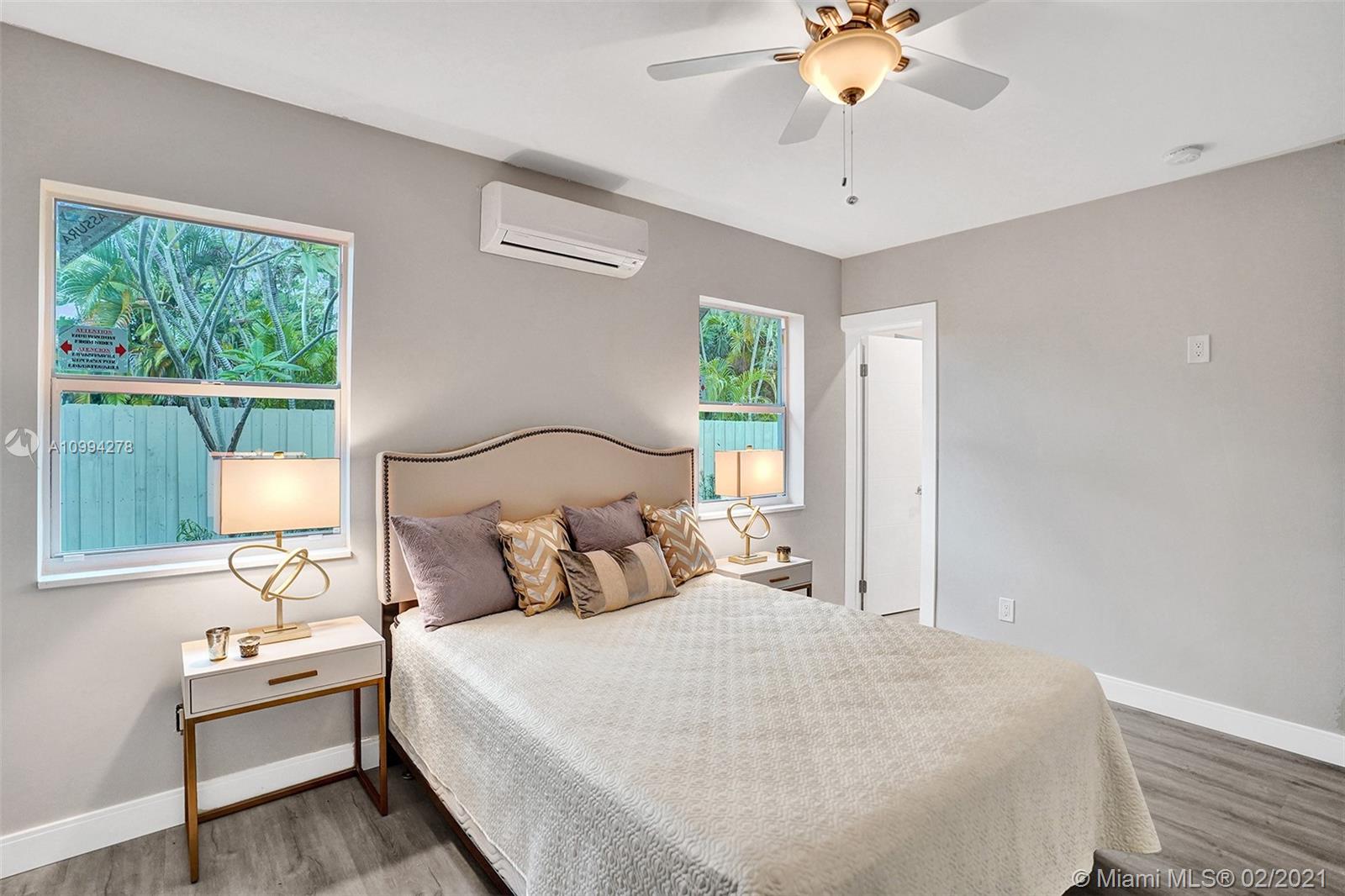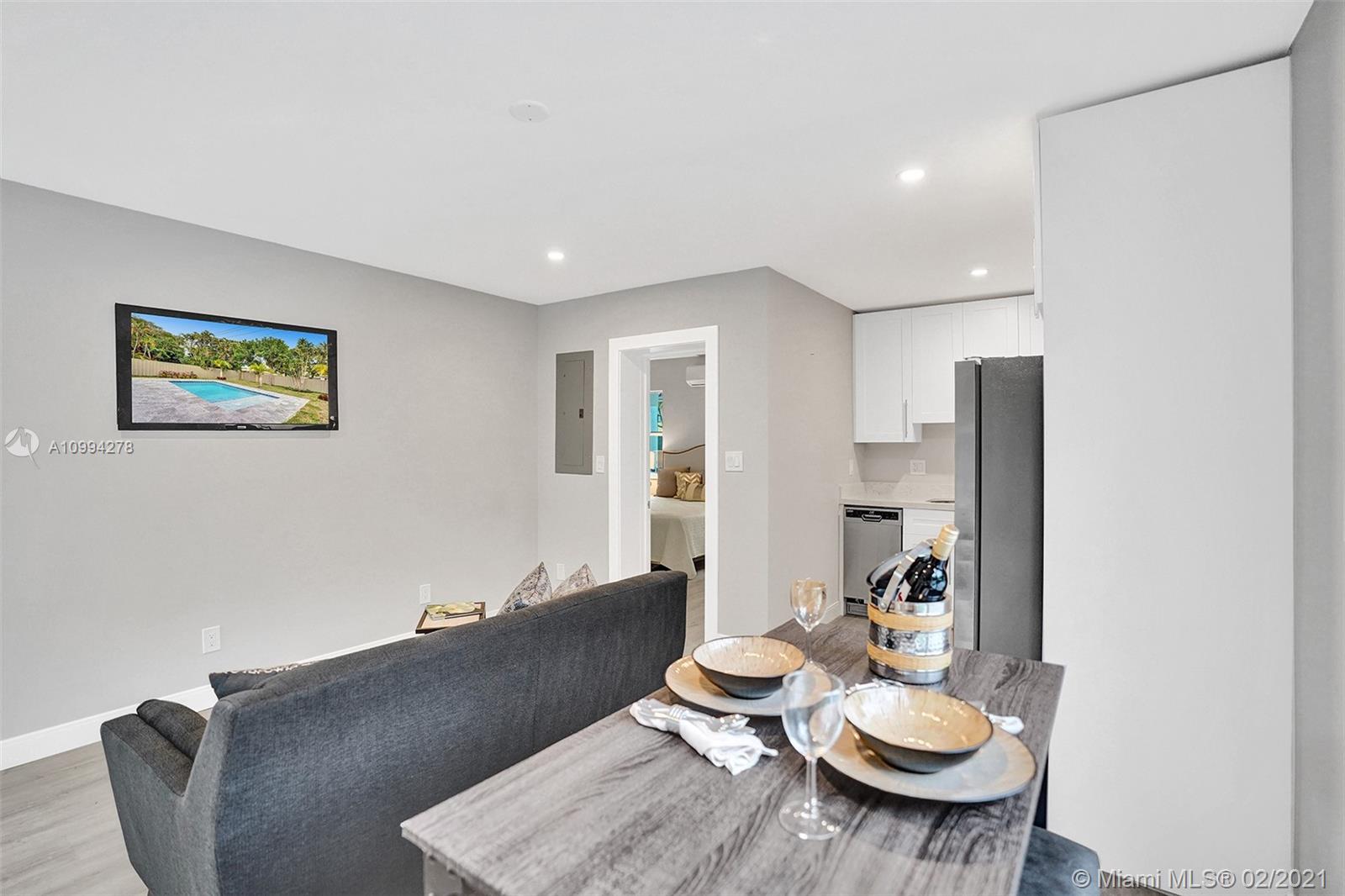 "Mid-Century Modern Duplex" consisting of a 2/2 & 1/1 has been re-designed & re-inspired to the present, by “Griffin Designs of Ft. Laud”. Enter the 2/2 with a New Custom Kitchen w/Quartz countertops. Top of the line S/S Appliances & a Skylight that radiates natural sunlight into the home. New fireplace in the living room. New Master Suite w/ 14 foot hi volume ceilings, Dual custom vanities, & an oversized shower plus 2 closet. Your master suite invites you to a private tropically landscaped backyard & newly fenced Plus a New resort styled pool.The1/1 is just as fabulous as the 2/2! Great investment for Air B & B," snowbird retreat" Professionally Staged By: Florida Stage Hands & Design's Of Wilton Manors.