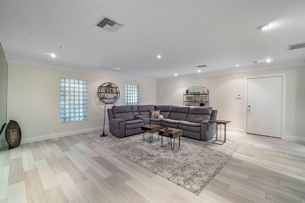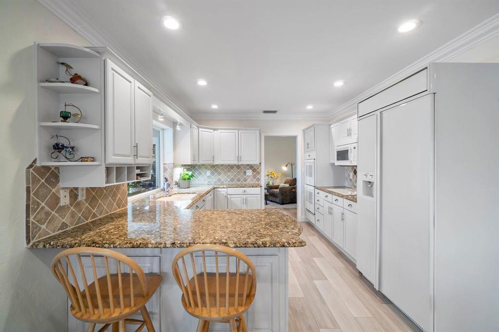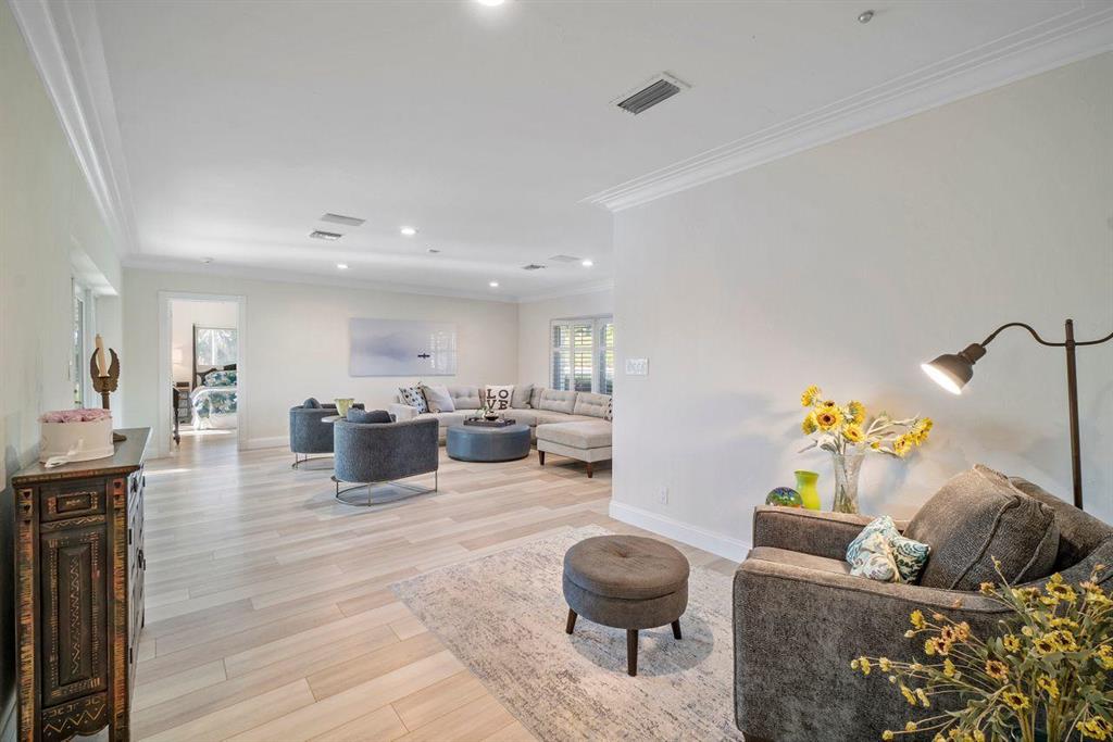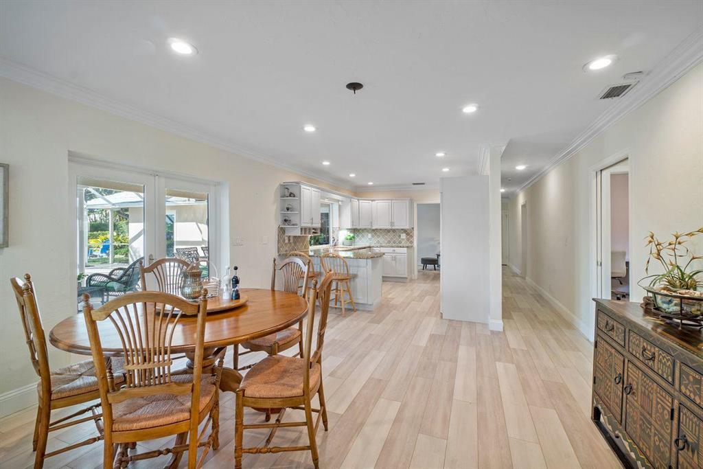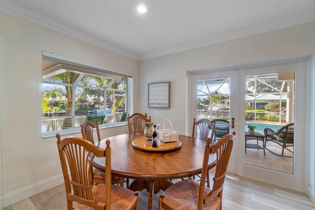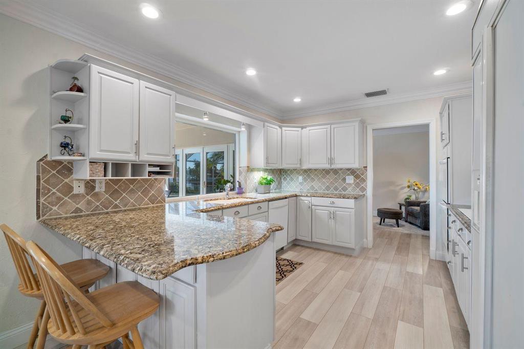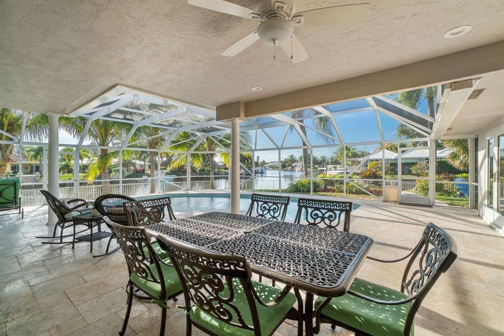 Situated on an oversized point lot with 246' of seawall on the El Rio Canal (widest canal with intracoastal and ocean access), this home offers breathtaking water views. The beauty of this backyard is unmatched, featuring a recently upgraded heated pool with salt chlorinator, travertine patio and a serene koi pond overlooking the canal. The home's interior includes 3 bedrooms, 3.1 baths and an oversized bonus room with beautiful vinyl wood plank flooring throughout. Additional upgrades include a whole house generator (2020), full hurricane protection, newer AC (2019) with Remi Halo air purifier and UV light, new duct work (2020), Tesla charger, replaced roof (2014), steam shower in the master bathroom, and LED lights throughout. With two docks, you can enjoy fun in the sun with boat