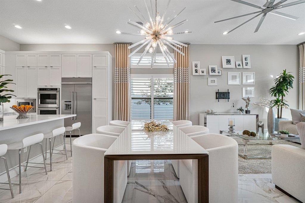 READY FOR IMMEDIATE MOVE IN WITH DESIGNER FURNISHINGS IN BOCA BRIDGES. Contemporary Adriana with modern finishes, designer accents, POOL and SOUTH-facing backyard! This exquisite home features an open floorplan, gourmet kitchen with huge center island, first floor master suite, 3-car garage and beautiful custom window treatments and designer fixtures. Enjoy all Boca Bridges has to offer with a 27,000 sqft clubhouse complex that includes a restaurant with full service pool bar, game room, fitness center, tennis courts, pickleball, main pool, kids splash park and more!