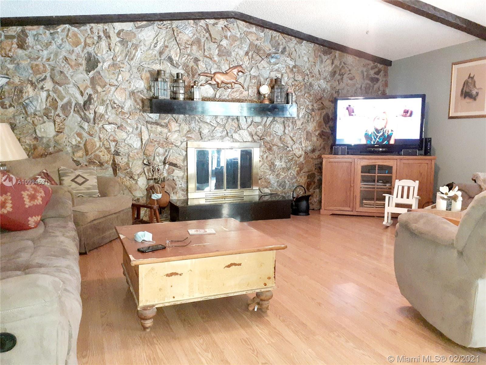 THIS GREAT EQUESTRIAN POOL HOME FEATURES 3 BEDROOMS, 2 BATHS, LARGE LIVING ROOM, FAMILY ROOM WITH FIREPLACE, DINING ROOM AND A SPACIOUS EAT IN BREAKFAST AREA, NEW FULLY FENCED BACK YARD WITH 20X20 GATE FOR ACCESS, HURRICANE IMPACT WINDOWS, NEW 90 FT. WELL, WATER HEATER 1YR, ROOF LESS THAN 5 YRS, 7 STALLS AND STORAGE SHED. POOL HAS CHILD SAFTY FENCE NOT SHOWN IN PICTURES. MUST SEE!