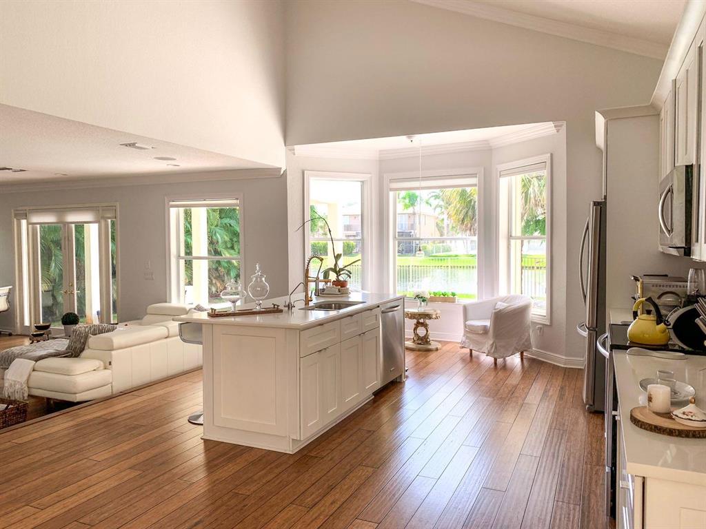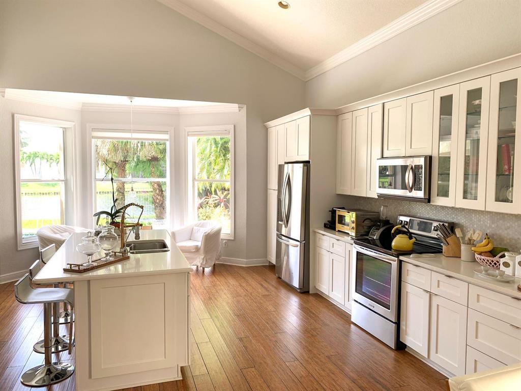 Masterfully remodeled 4 Bedrooms 4 Baths 2 Car Garage Pool home located in the sought-after community of Saturnia. Light, Bright and Expansive this Single-Family Residence is truly a spectacular home which boasts a total of 3,487 SF. Tile and Bamboo Wood Floors throughout, Extra Large Gourmet Kitchen with Quartz Countertops and Soft Close Cabinets. Formal Dining Room, Living Room & Den with Crown Molding. A luxury 24/7 manned gated community in Boca Raton. Entertain Guests outside on the Covered Patio with views of the Lake perfect for Entertaining. Additional upgrades include accordion hurricane shutters throughout 2nd Floor A/C replaced 2 years ago and a large custom inground pool. A+ rated schools! Cable and internet included in HOA.