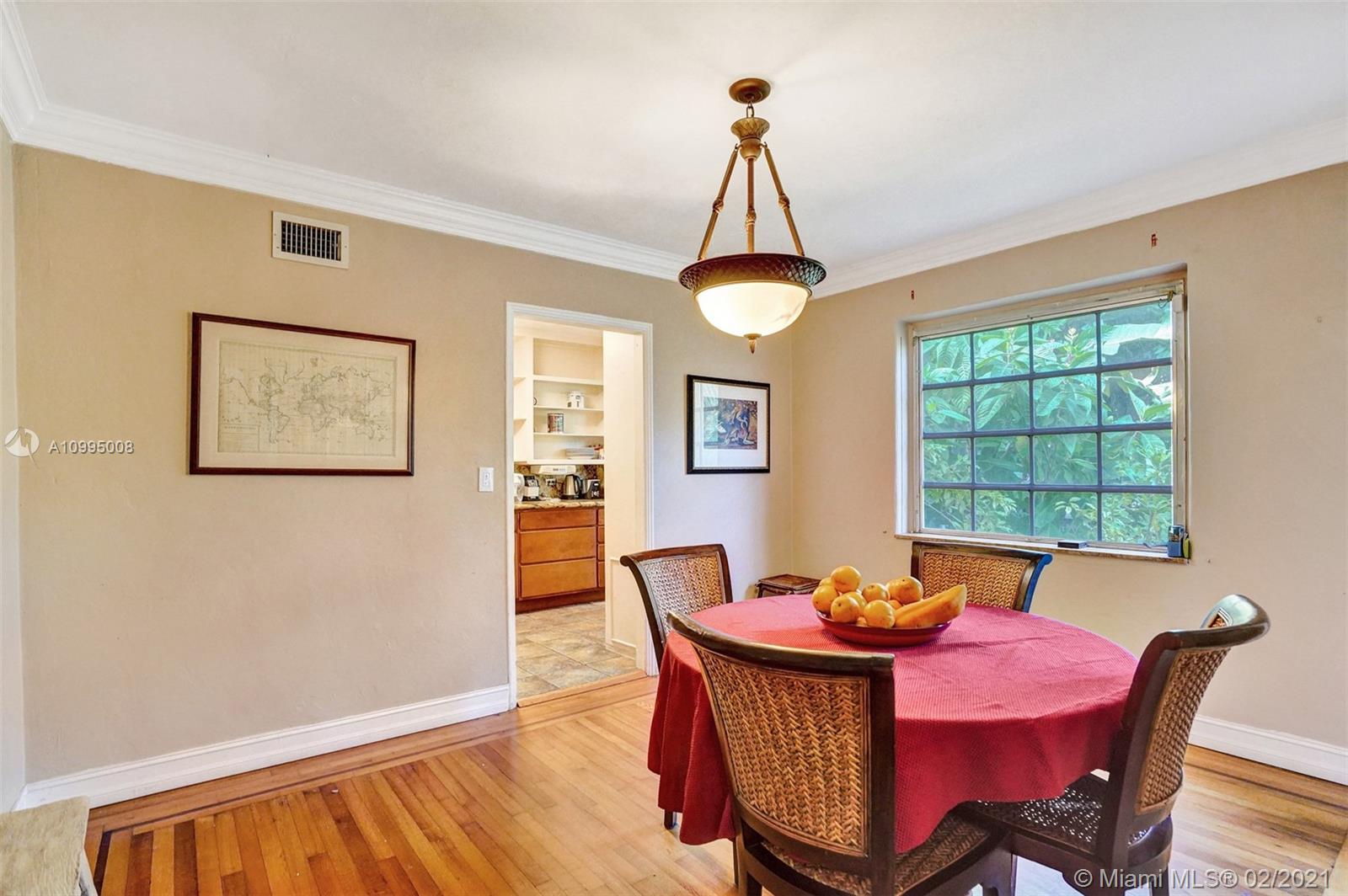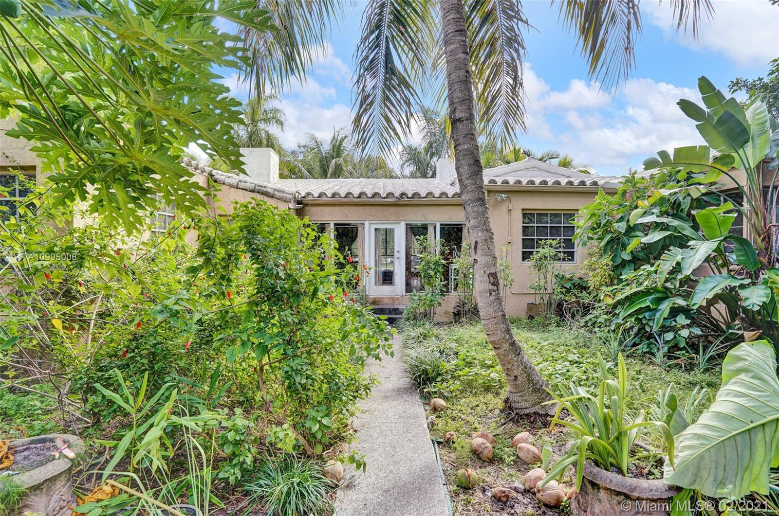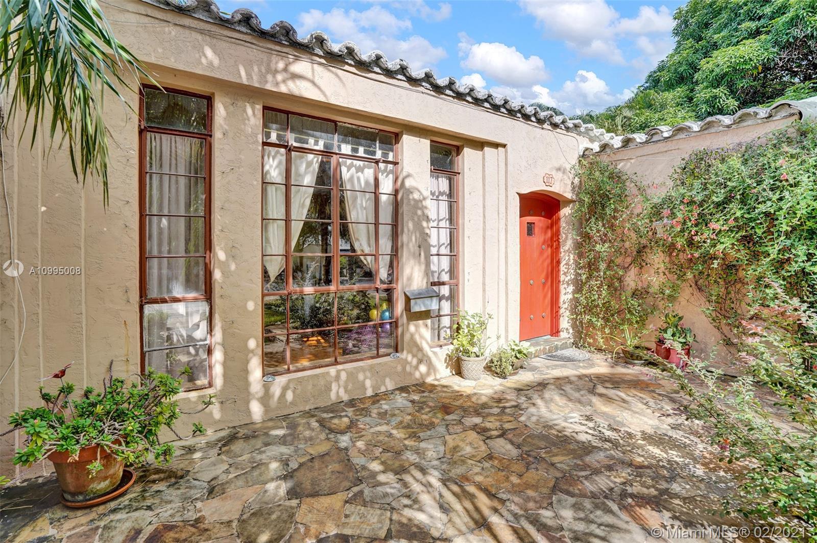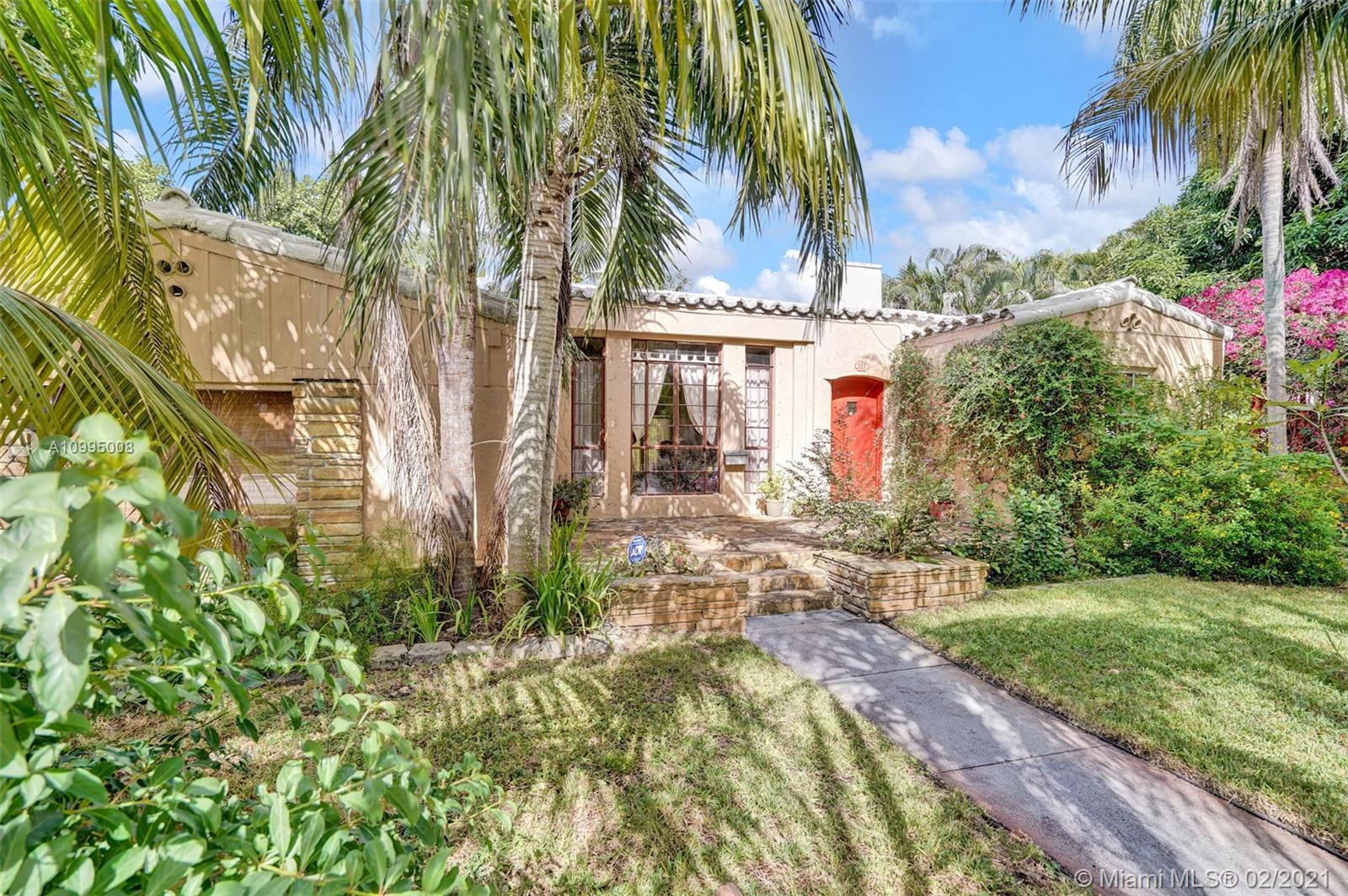 Extraordinary 1930's home with tons of beauty, sitting on an oversized lot of 14,300 sq ft. Located in the very desirable Miami Shores, this home features 3 bedrooms and 2 bathrooms in the main house, and a separate 1/1 living Guest House that is detached, and filled with charm. The main house offers original oak floors, spacious floor plan with a large family room and sun room, volume ceilings, wood burning fireplace, and much more. Very ideal detached guest house, with a 2 car garage on the first floor and a very comfortable 1/1 on the second floor, with an office. Guest house is currently vacant. Fenced yard with an abundance of trees, flowers and butterfly garden. Fruit trees include:avocado, mango, lychee, papaya, mamey and banana trees. Update plumbing and Electrical.